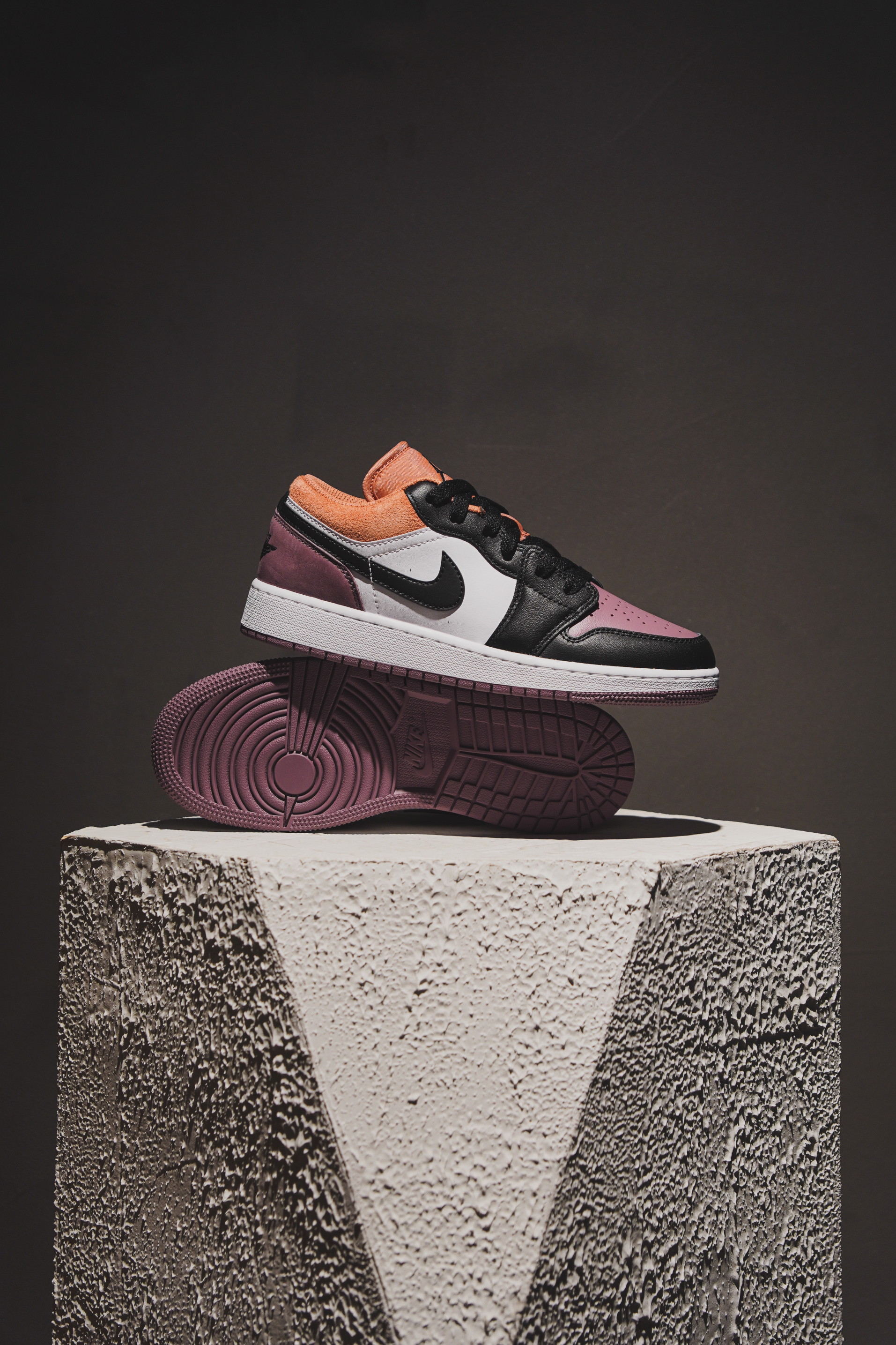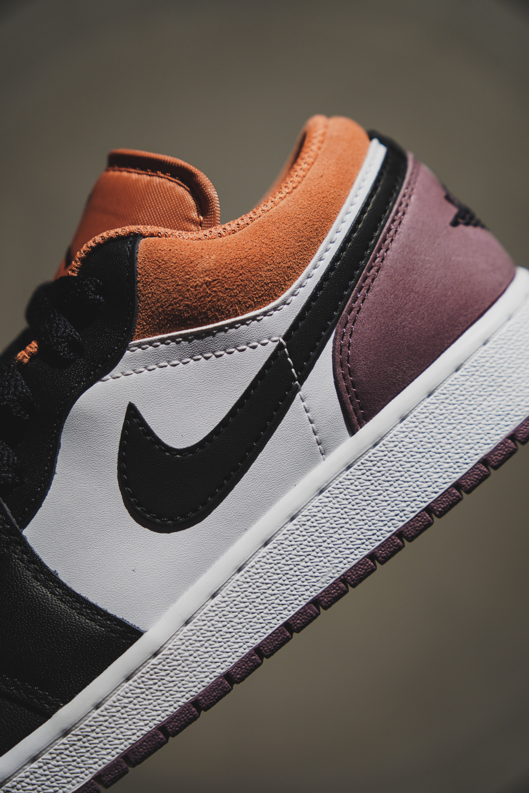 WMNS AIR JORDAN 1 LOW 「Red Bean」白褐紫的设计非常简约大方,没有过多的繁琐装饰,但却非常具有时尚感。整体选用暖色系搭配白色示人,并选用皮革材质呈现运动时尚风格。鞋面以及后跟处用到紫色,鞋舌鞋口处用到褐色搭配,整体暖色系很适合日常的搭配!