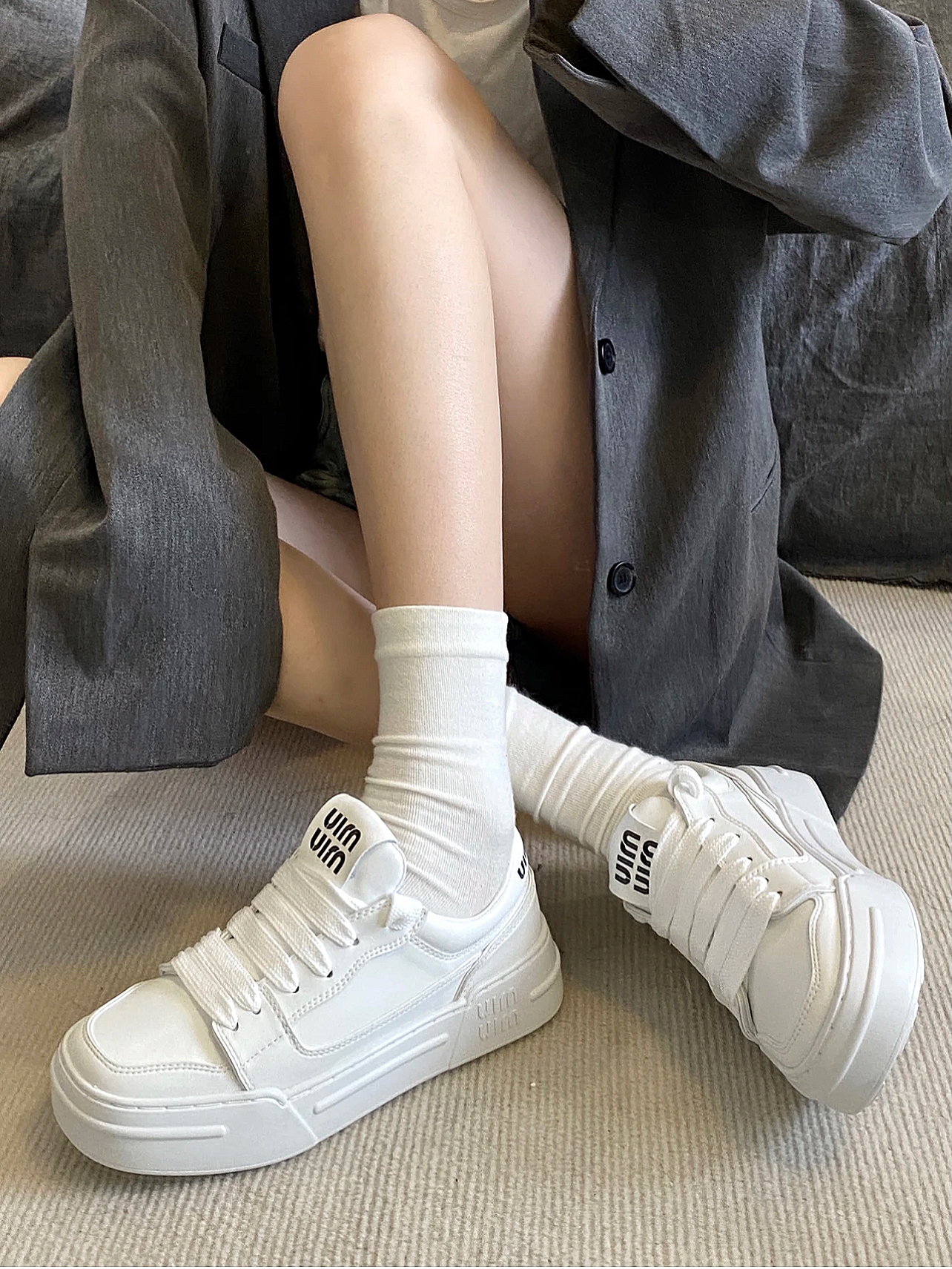 方头设计真的显高级诶! 这双小白鞋绝了!搭配百褶裙简直不要太好看! 后面英文点缀又不显单调 安利了!!
