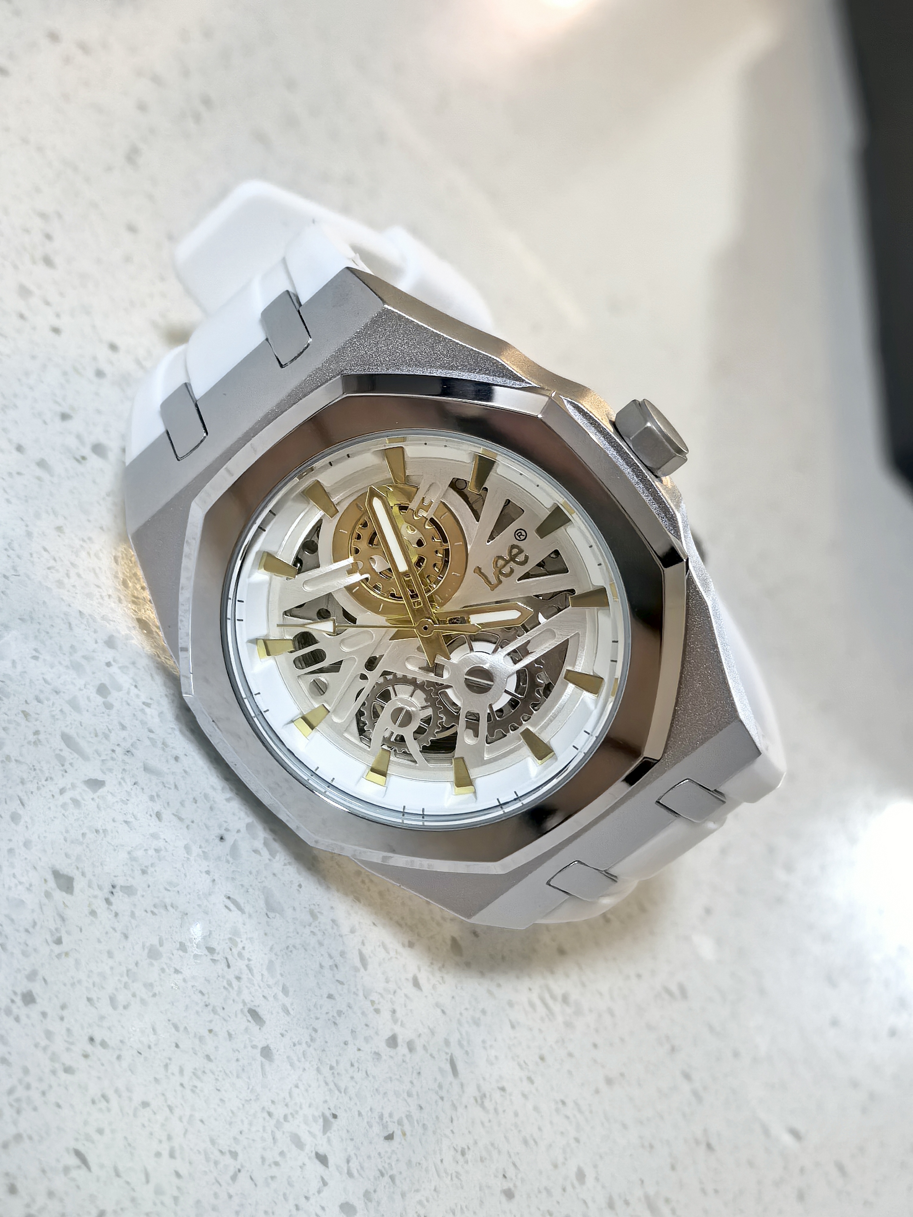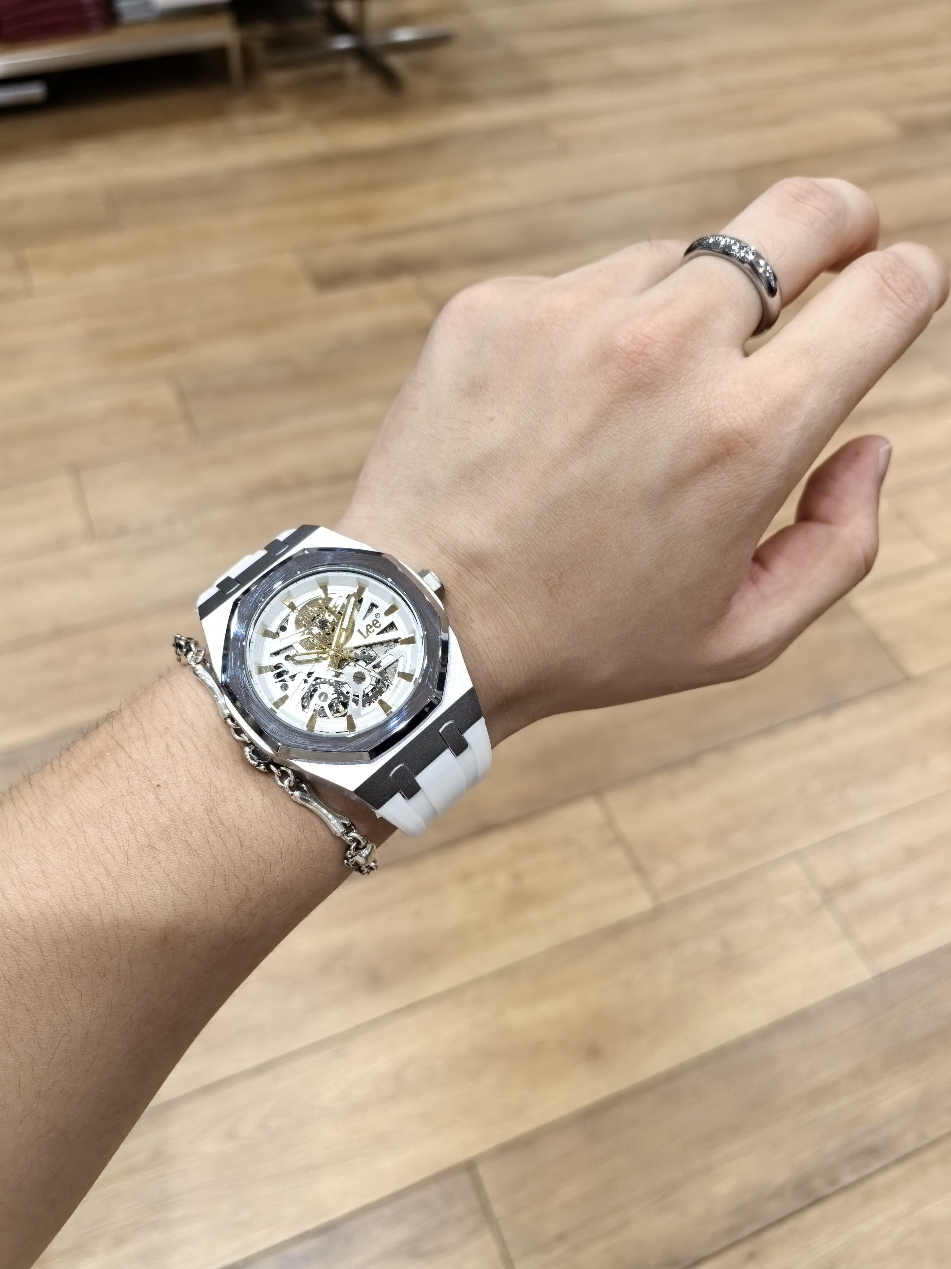 女友知道我喜欢手表 这不最近收到#Lee 陀飞轮腕表 颜值这块真是送到心坎里😍😍 表体是经典的八边造型,摸起来高级感满满 表盘是最令我惊艳的 3D镂空盘面,机械运动之美一目了然 透过表底也能清晰看到机芯的运转👻👻 朋友看了都说水平很高😆😆 亲肤的硅胶表带 即使戴了一整天也没有不适的感觉 并且硅胶材质更易清洗,佩戴起来无压力 最重要的是腕表的搭配 职场商务或是日常休闲,都能轻松适配