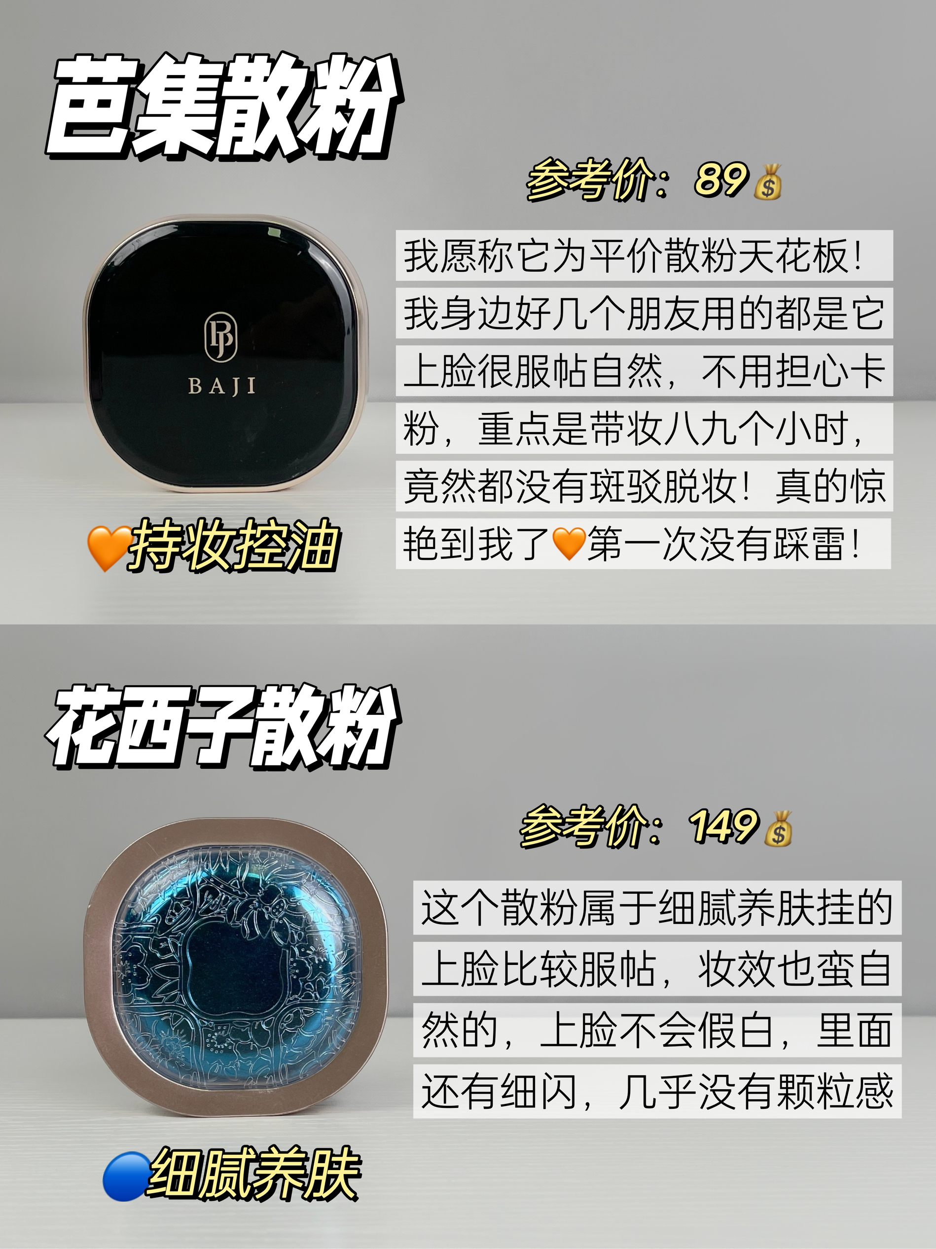国货之光!用了不踩雷的热门新品定妆散粉! #散粉推荐#油皮散粉#平价散粉#混油皮散粉#油痘肌 真的服了,有些热门散粉真的不能跟风乱入 买错花钱又难用,不仅不持妆,还斑驳卡粉 直接给我卡成“老树皮”,根本不想再用第二次! 所以选散粉前还是得多做点功课!选对就是在省钱! 这些我用过的散粉尊嘟还不赖,分享给大家~ 1.芭集散粉 持妆非常出色的一个散粉,日常带妆一整天,雾面哑光肌妆感高级又自然!粉质很...
