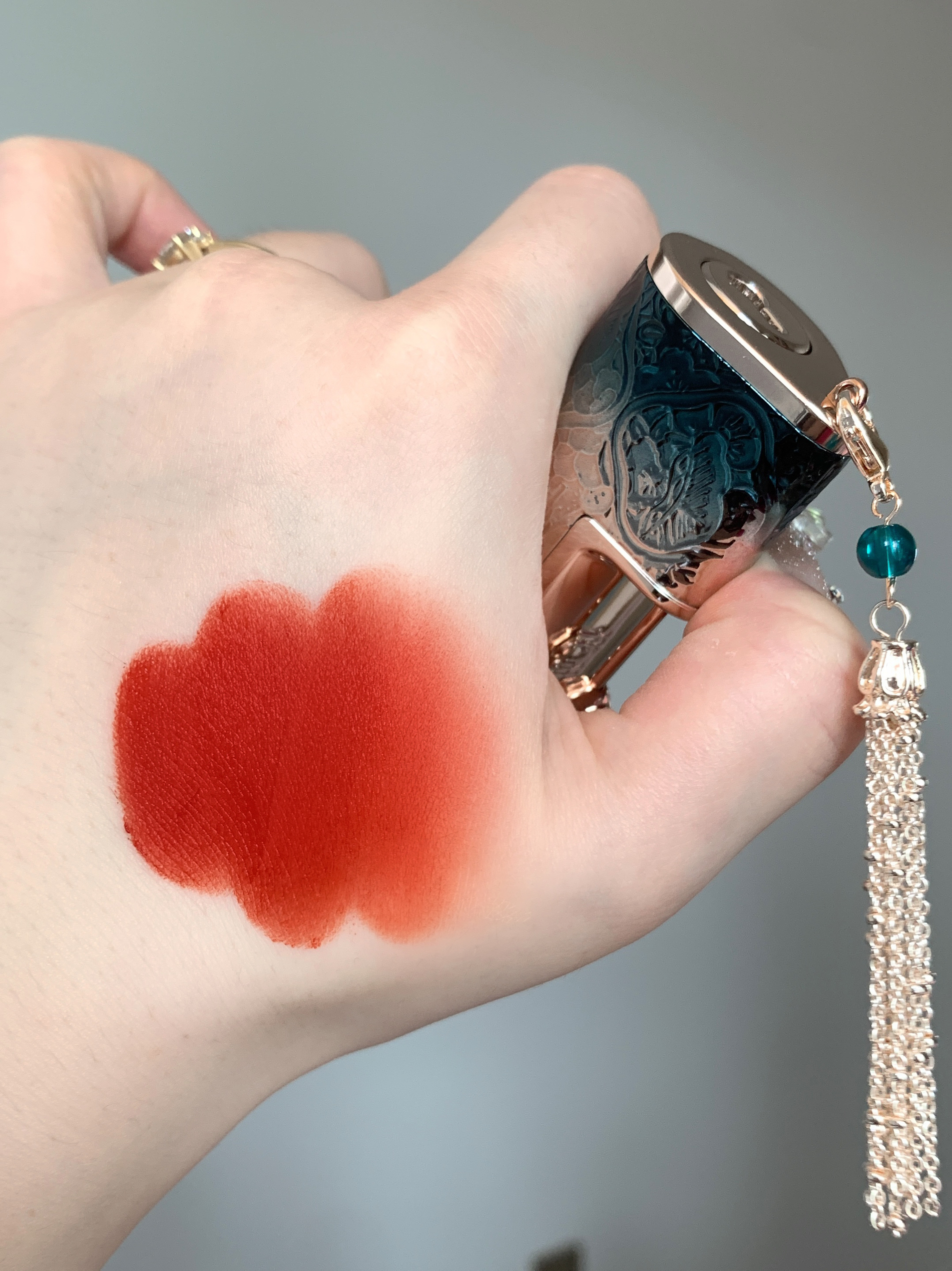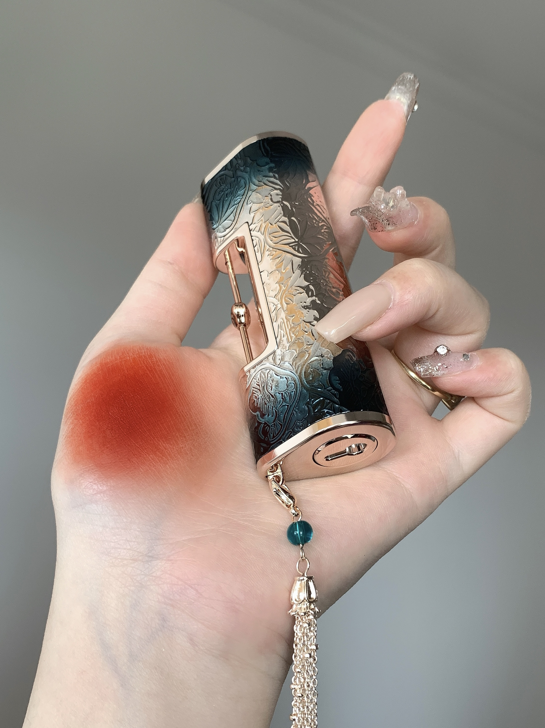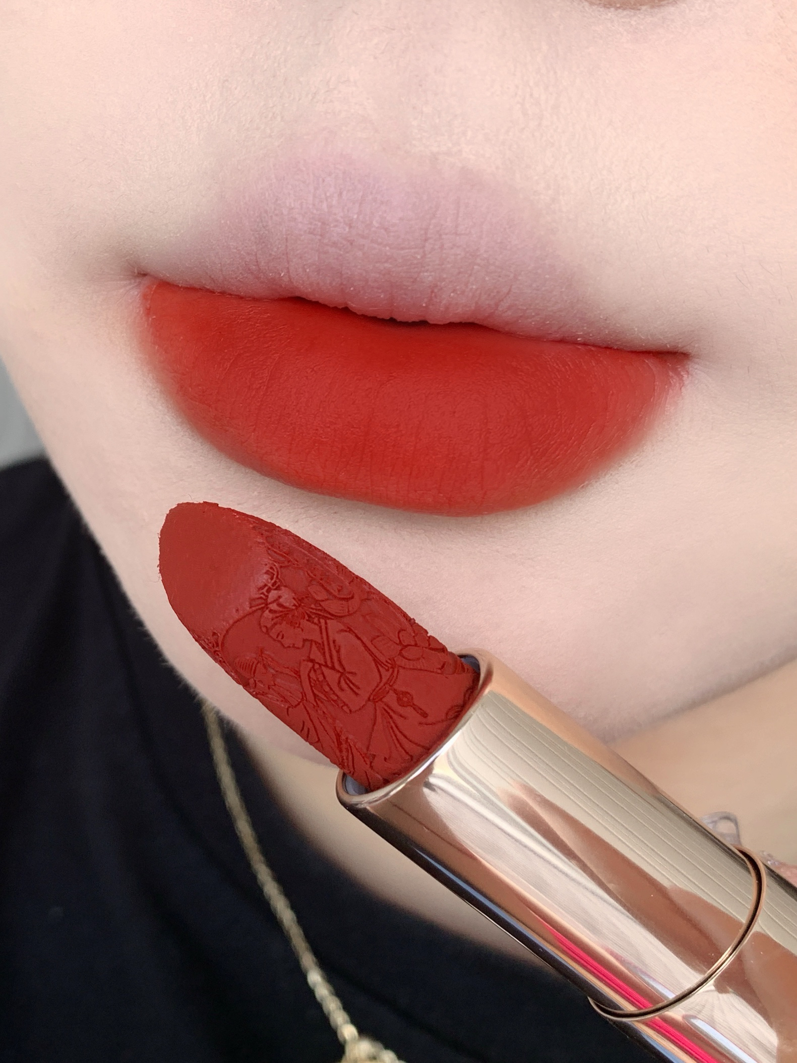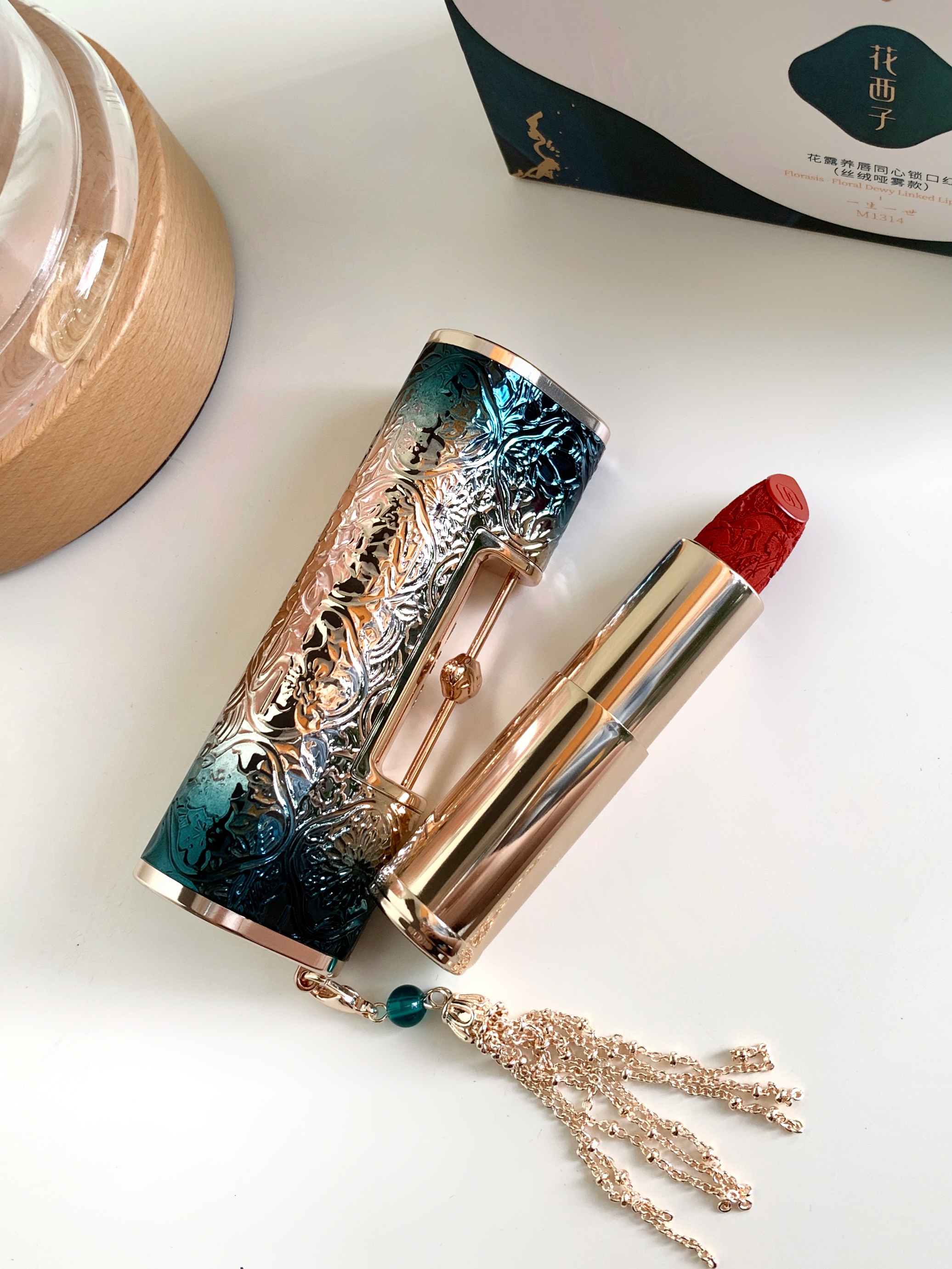 # M1314一生一世 这色号好浪漫!! 是hin显白的橘调正红 薄涂是元气的甜柿子色 厚涂是气质的红枫柿子色 💕 花西子是懂中式浪漫的!! 敲有质感的同心锁外壳 加上巨精细的雕花简直可以收藏了! 好适合七夕送礼物!