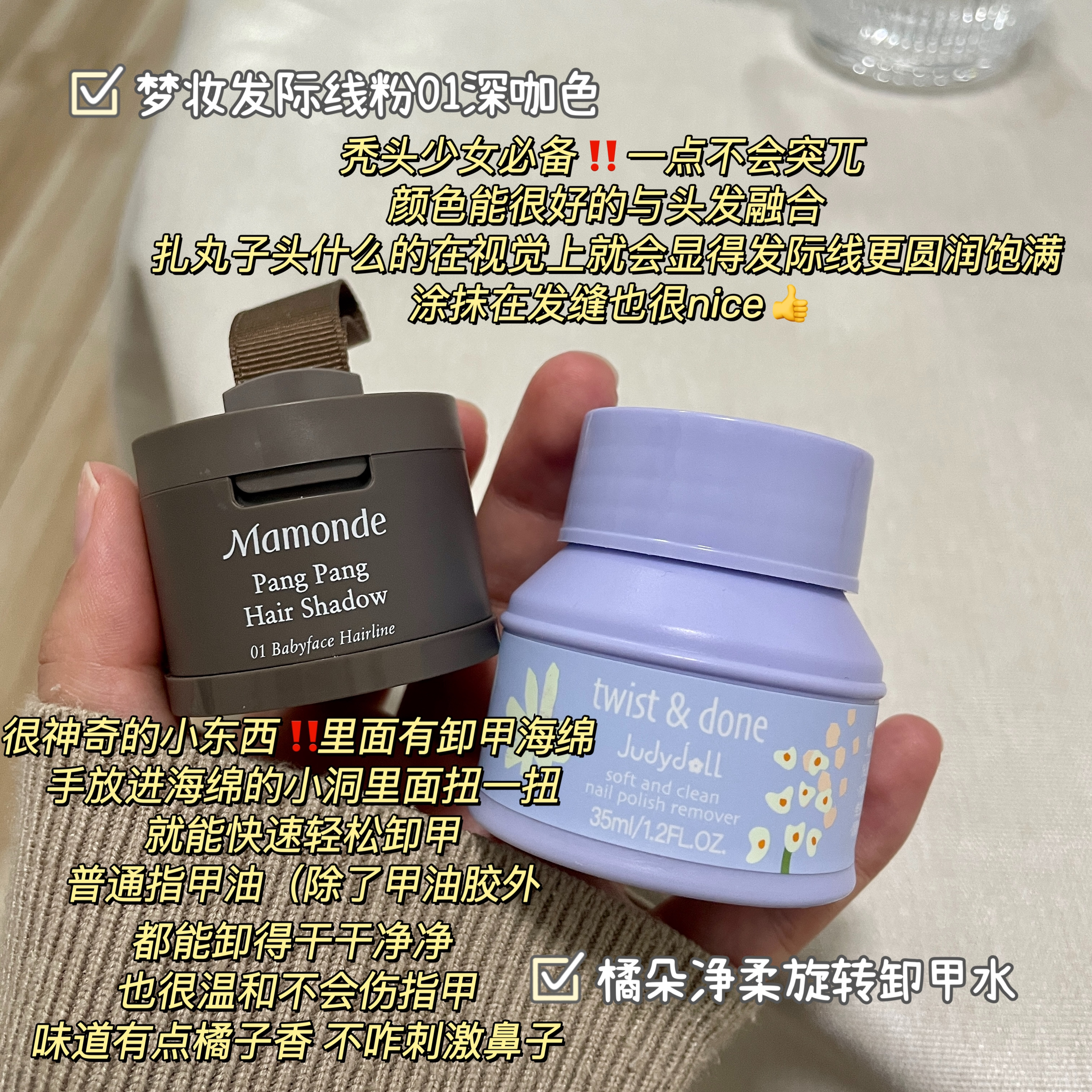 本篇笔记关联了橘朵 指甲油 净柔旋转卸甲水、Mamonde/梦妆 花运扑扑发际线粉一体盘高光鼻影粉 填充补发秃头修饰侧影 01棕黑色、蜂花 檀香迷你香皂 深层清洁等商品,为用户提供真实的使用体验和购买参考。