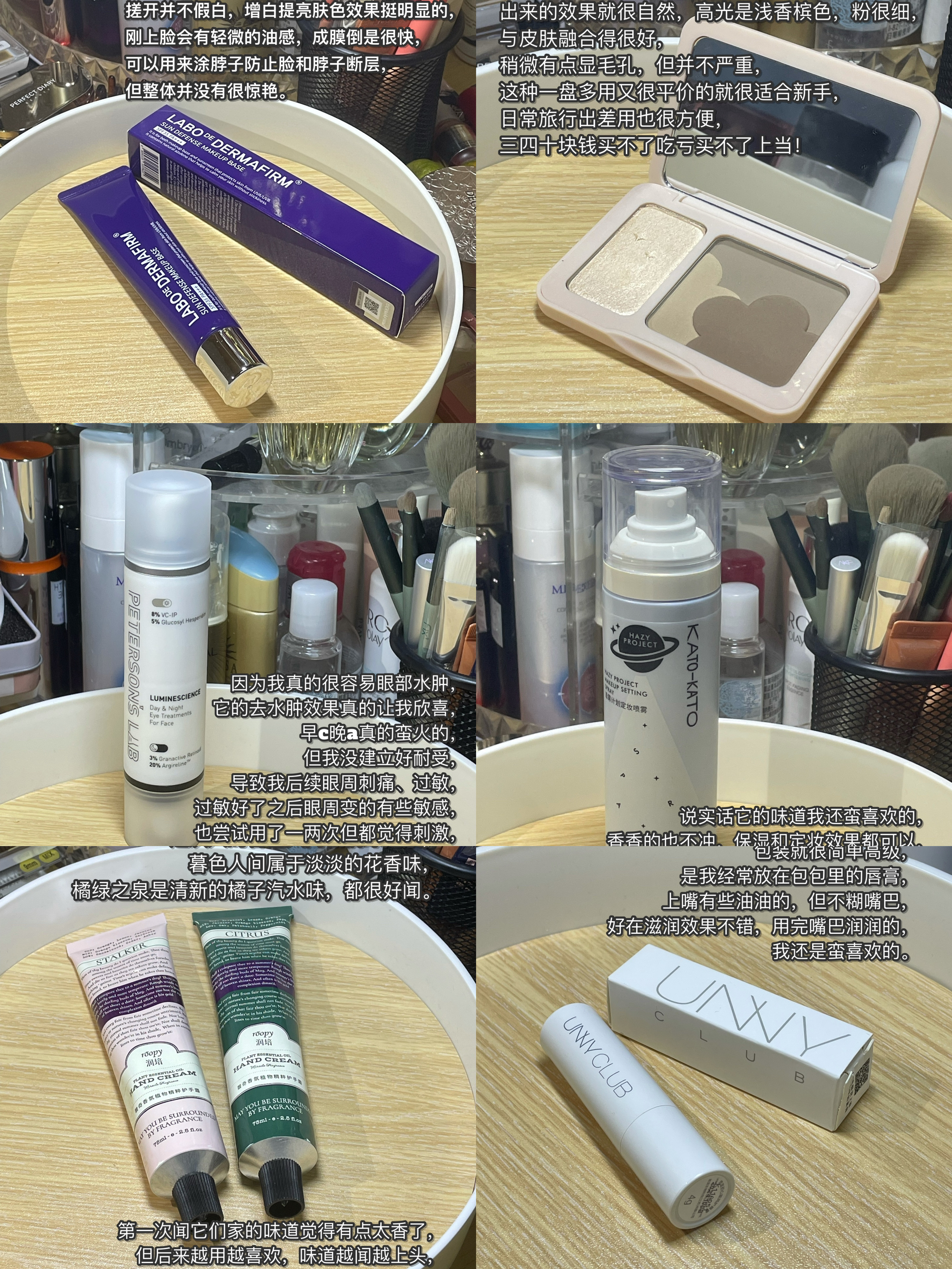 都是些实打实能提升幸福感的小登西! 1️⃣时生棉花粉扑 2️⃣梦妆发际线粉 橘朵净柔旋转卸甲水 3️⃣纳米棉签棒 LUCKYTRENDY双眼皮贴 4️⃣化妆刷洗刷垫 蜂花檀香皂 美瞳清洗器 5️⃣触屏笔 带灯挖耳勺 三凤海棠粉 6️⃣开奕刮毛刀