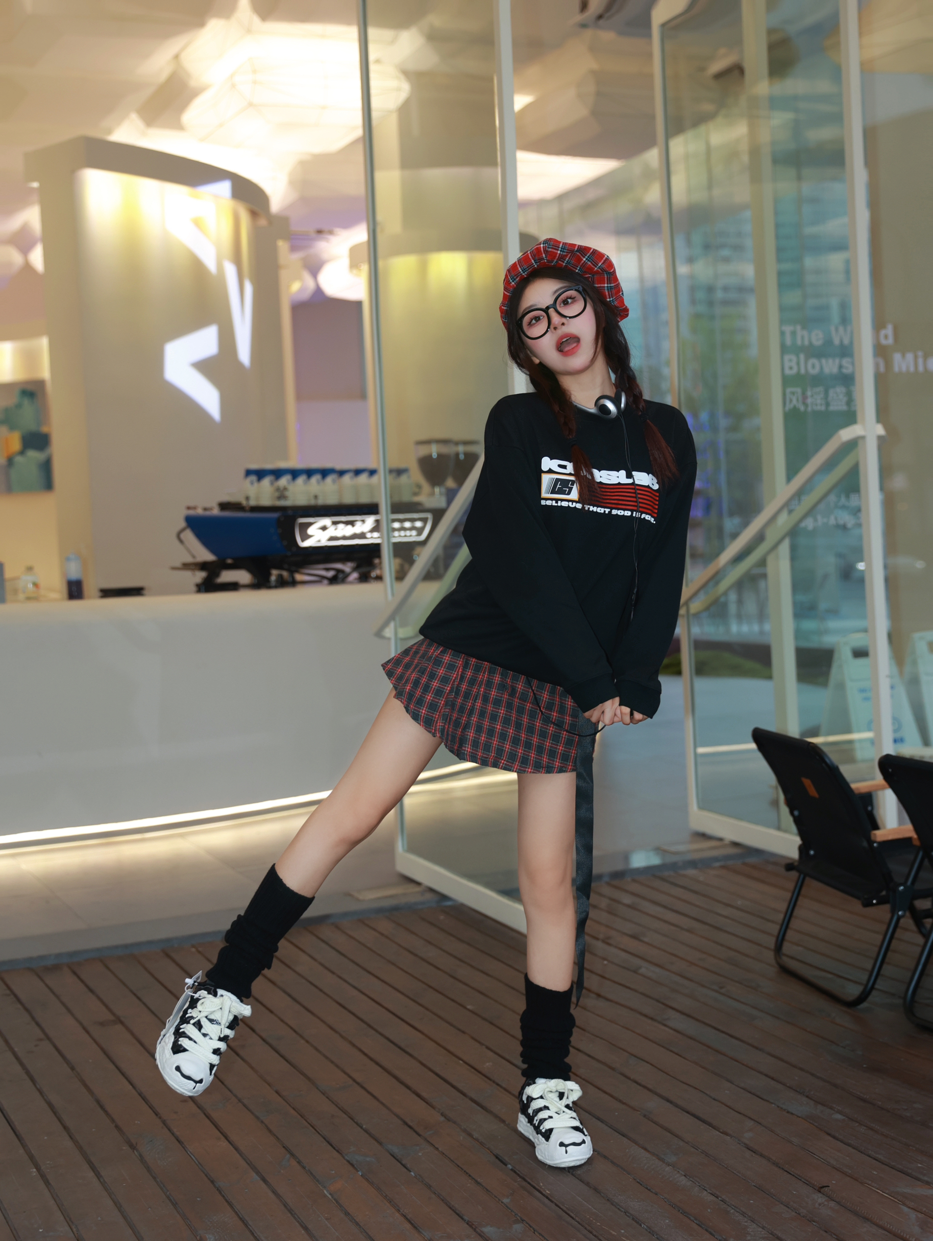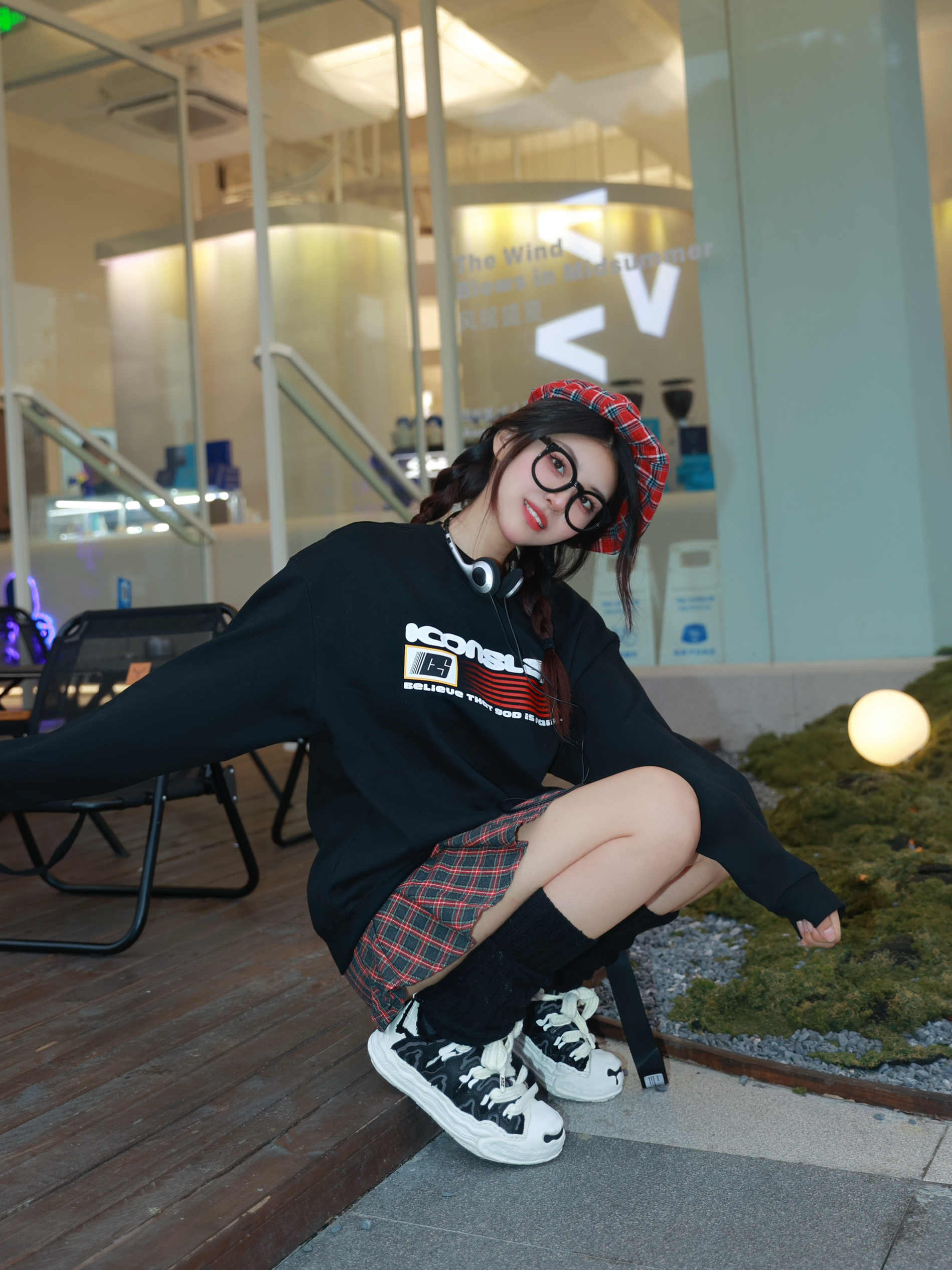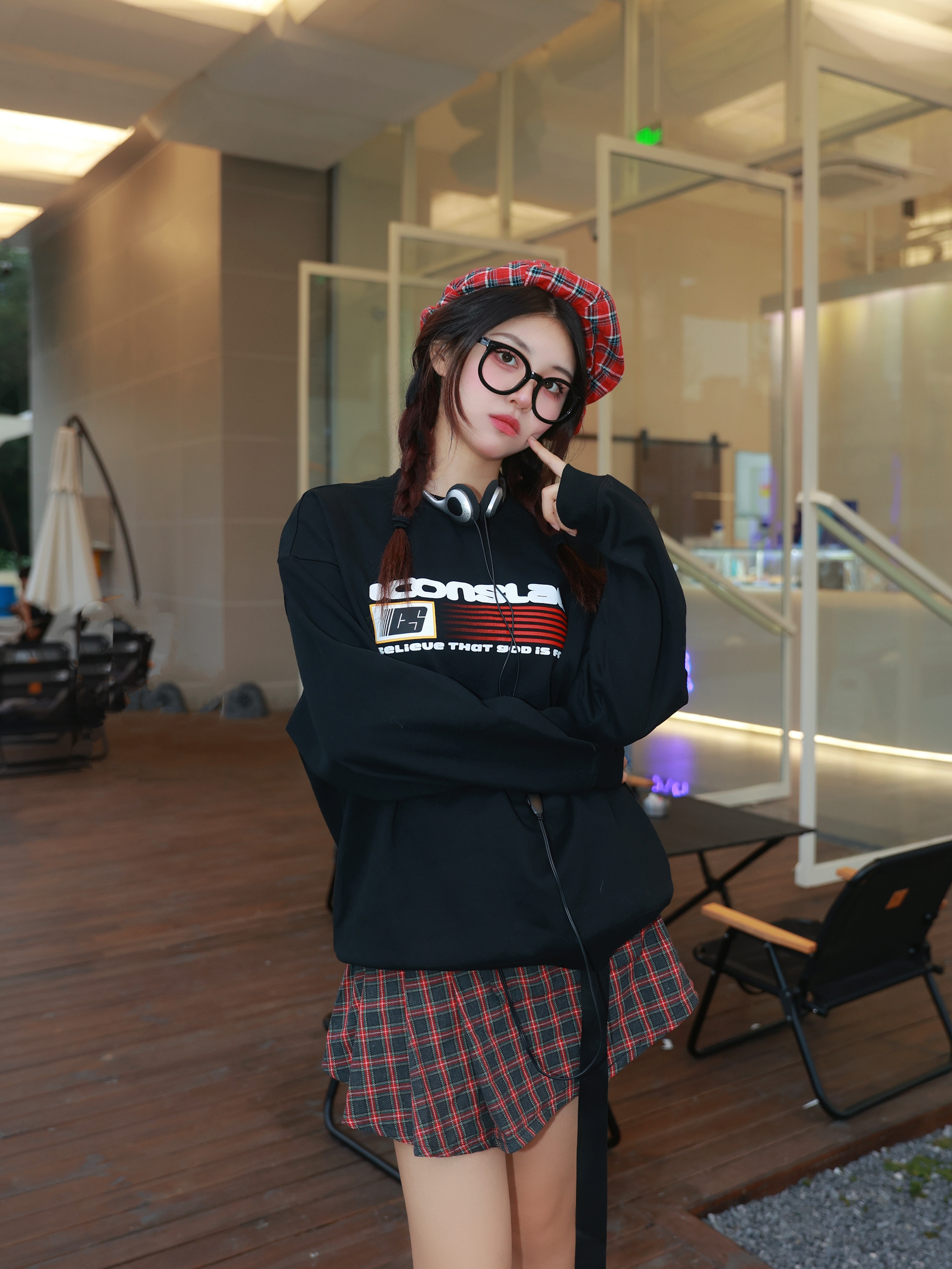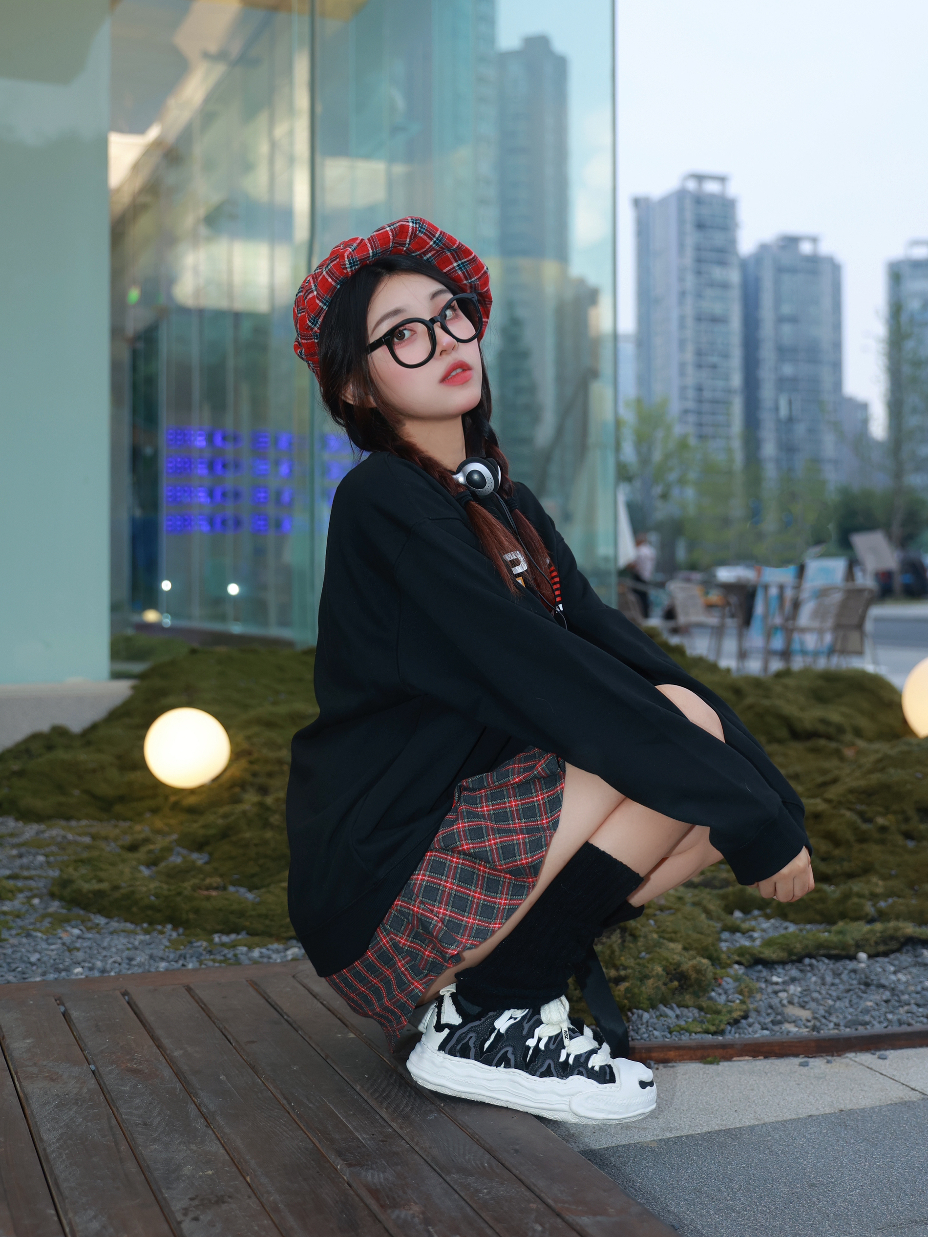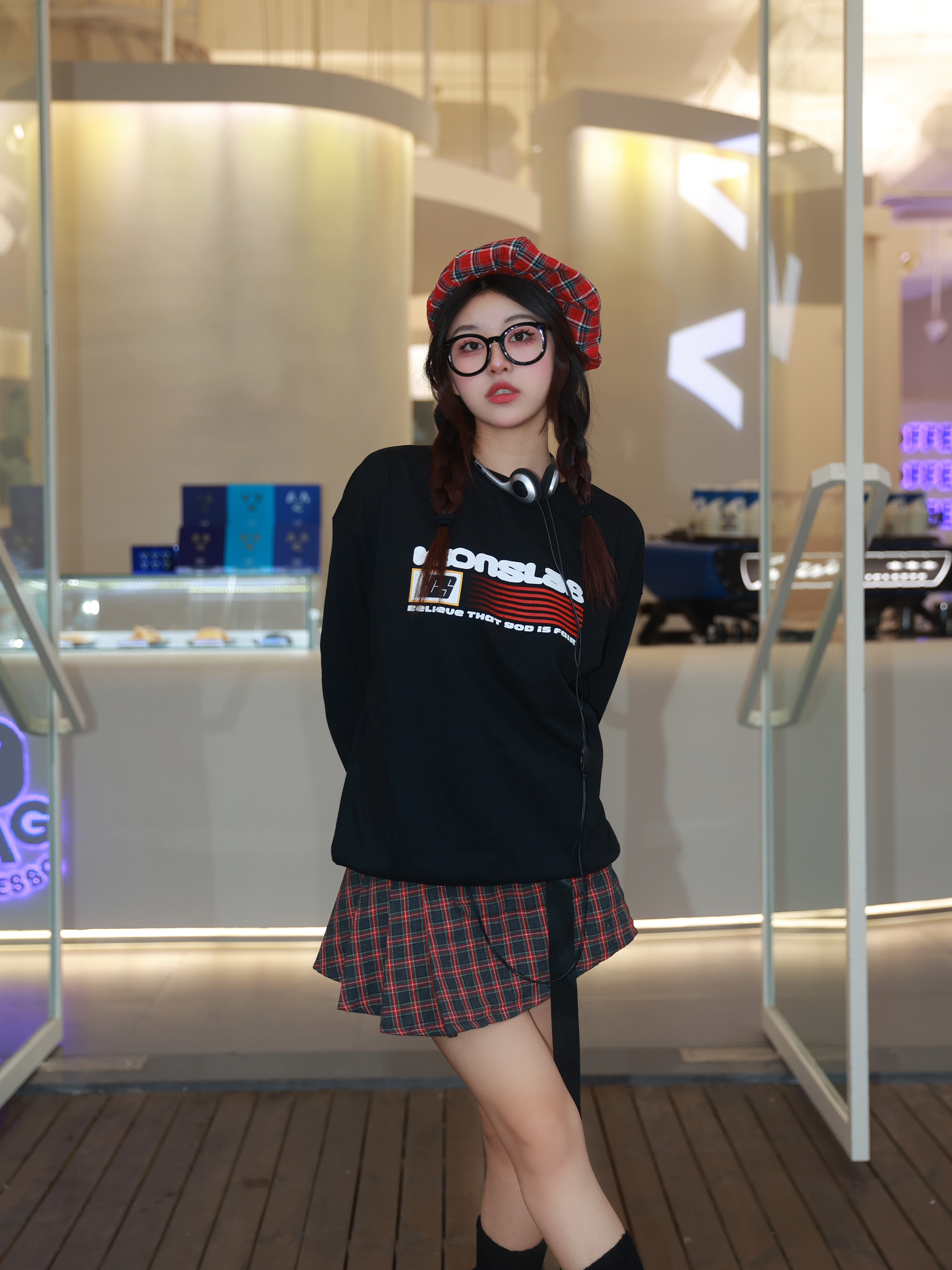 今年已经是大三的学姐啦 但是女生怎么能拒绝品小的装扮呢? 今天这身搭配能以为我是大一新生吗? 颜色搭配我是选的黑红经典配色 耐看又百搭 卫衣可以不再只搭配牛仔裤 搭配这种格子裙也很好看 而旦黑色这种圆领卫衣就很百搭 现在可以单穿 再冷一点就可以当内搭 鞋子也是要搭配一双可可爱爱的 这双是有点奶油蛋糕的感觉 不规则的波浪形+做旧设计 特别又可爱 再搭配麻花辫+呆萌的圆圆眼镜 扮新生成功
