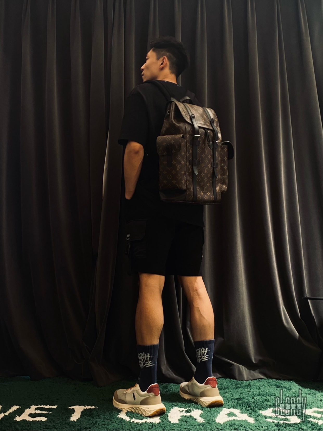 ✨旅游ootd✨ 👕:中国李宁黑色T恤 🩳:peacebird工装短裤 👟:歌涵休闲鞋 🎒:LOUIS VUITTON Christopher经典老花双肩包 ✨今天的风格,偏向于工装风,选择宽大黑色上衣,较为个性的工装裤,上身以黑色为主,配以图案,配件等小细节。 🌟鞋子选择这双COLE HAAN休闲鞋,也是近期,上脚最多的一双鞋了,主要是颜值在线,百搭随性、最重要的是超级好穿。卡其色、...