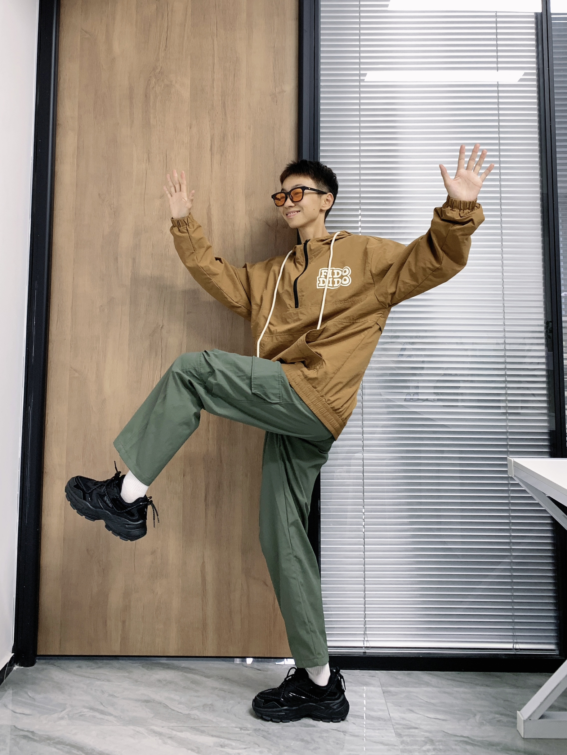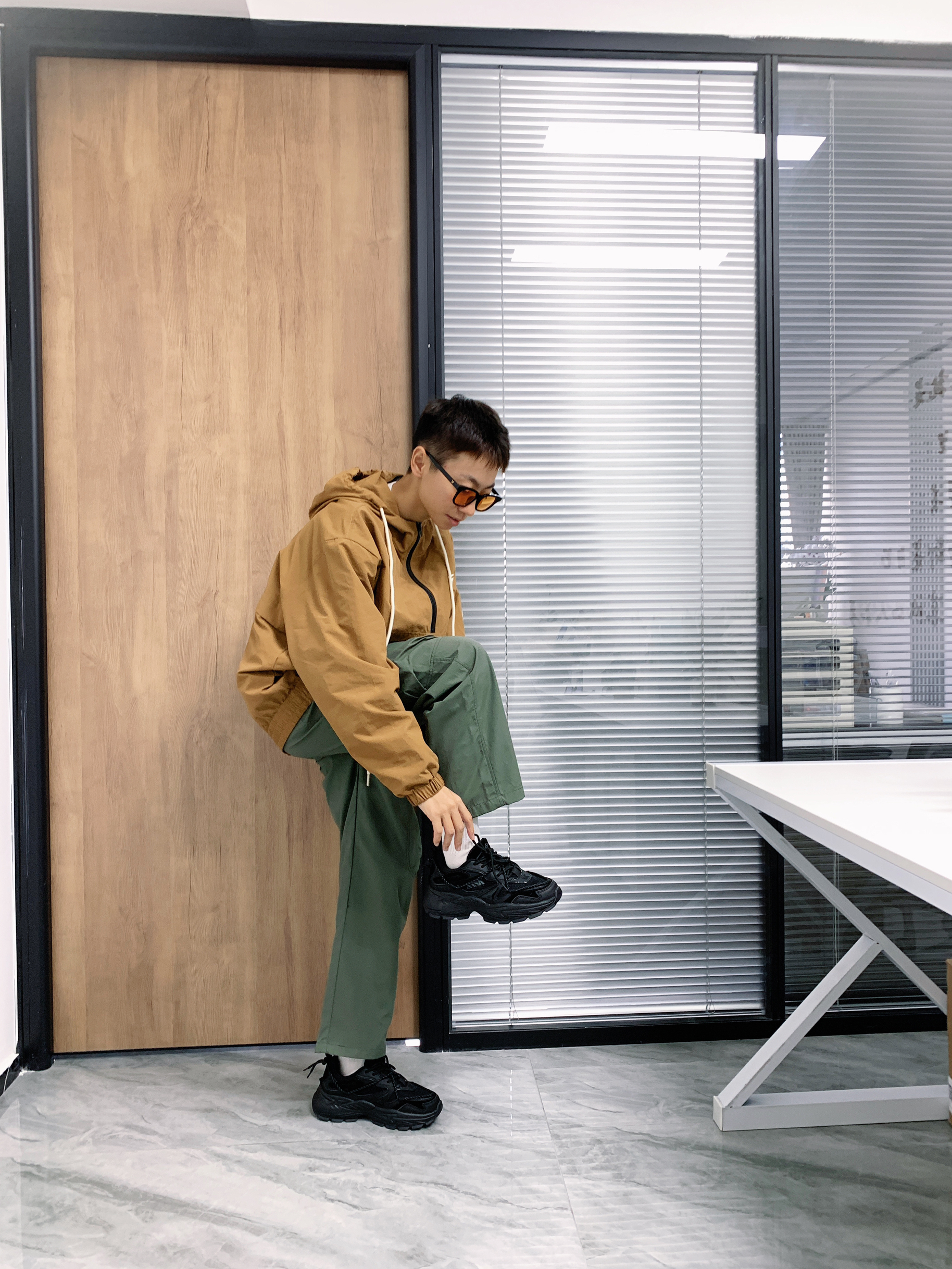168CM|45KG|👔:M|👟:39码 5G入秋啦🍂,卡其色一件式套头夹克简单方便,也特别好搭配! 绿色工装裤版型我是特别喜欢的! SNSK黑色老爹鞋👟已经成为我秋天必穿的一双鞋!每次出门都会被问🔗 去户外这么穿,真的好好看咯!