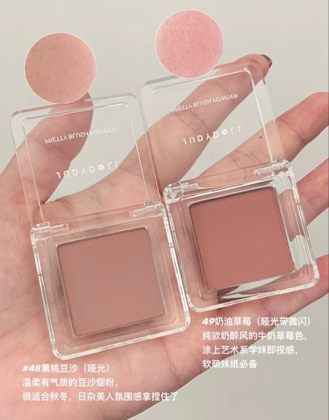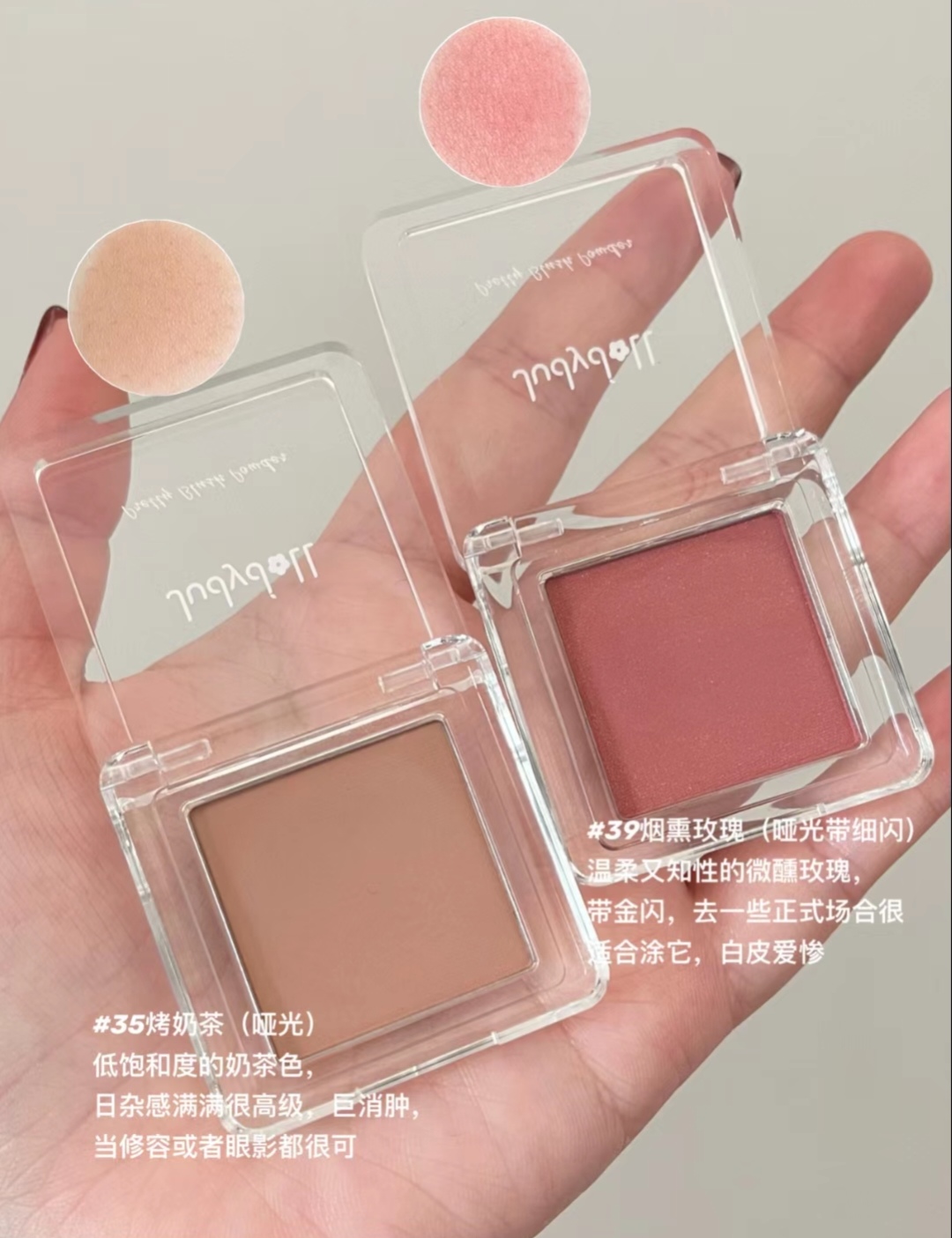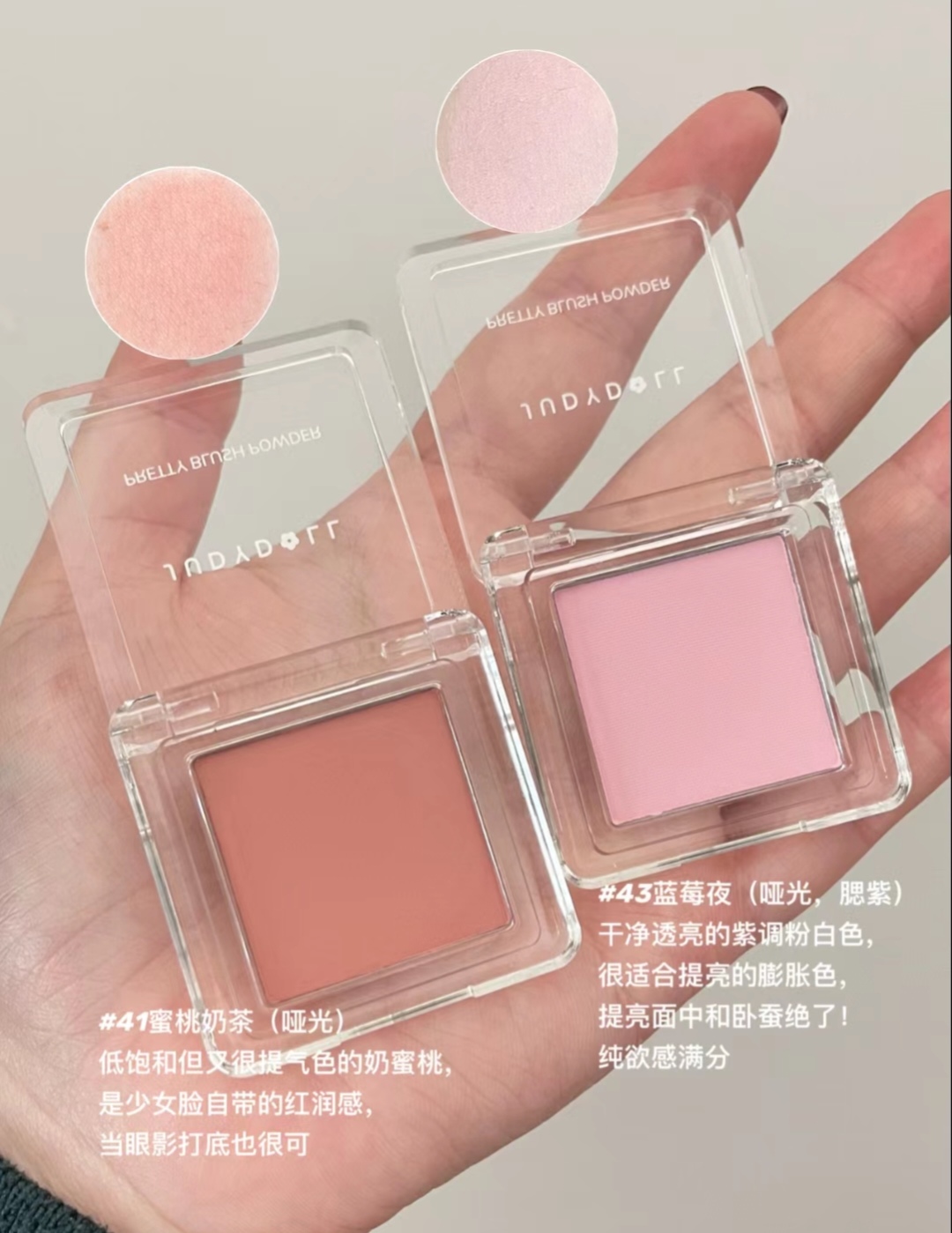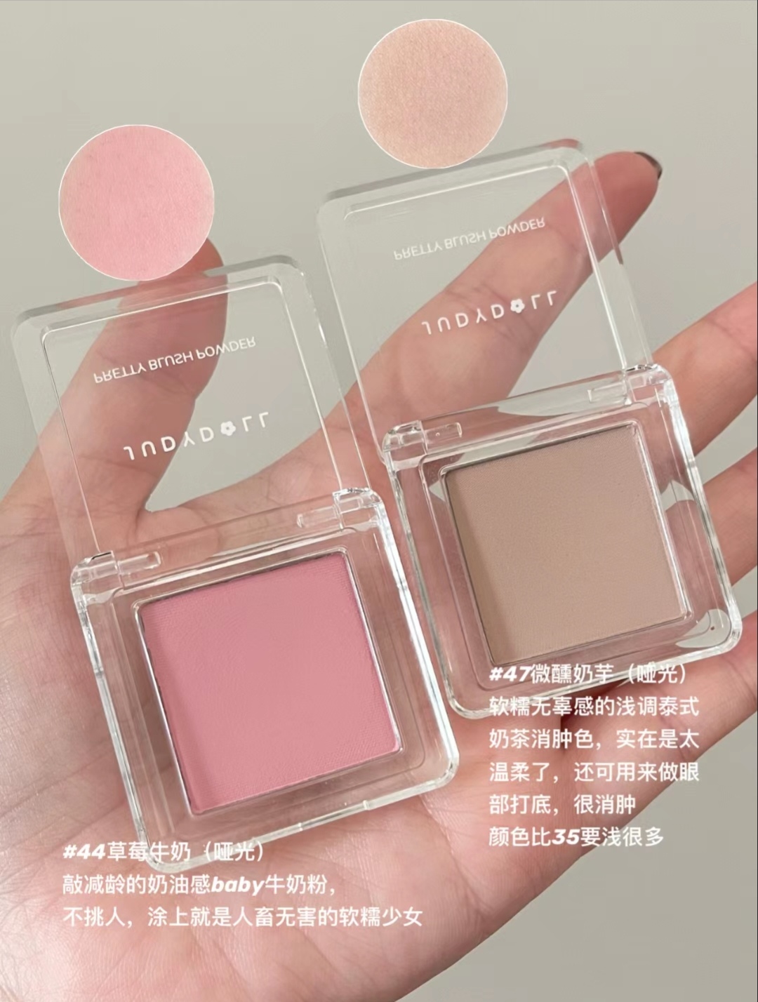 断断续续攒了两年,橘朵单色腮红好看又日常的颜色我是基本集齐了! 02枯玫瑰,饱和度比较高的日杂红棕调玫瑰06杏子色,敲显嫩的奶杏蜜桃,带微闪 35烤奶茶,消肿奶茶色,当修容或眼影都很可39烟熏玫瑰,高级知性的微醺玫瑰,带金闪41蜜桃奶茶,低饱和奶蜜桃,少女脸自带的红润感 43蓝莓夜,纯欲感拉满的腮紫 44草莓牛奶,敲减龄的奶油感 baby 牛奶粉 47微醺奶芋,软糯无辜感的浅调泰式奶茶消肿色48薰...