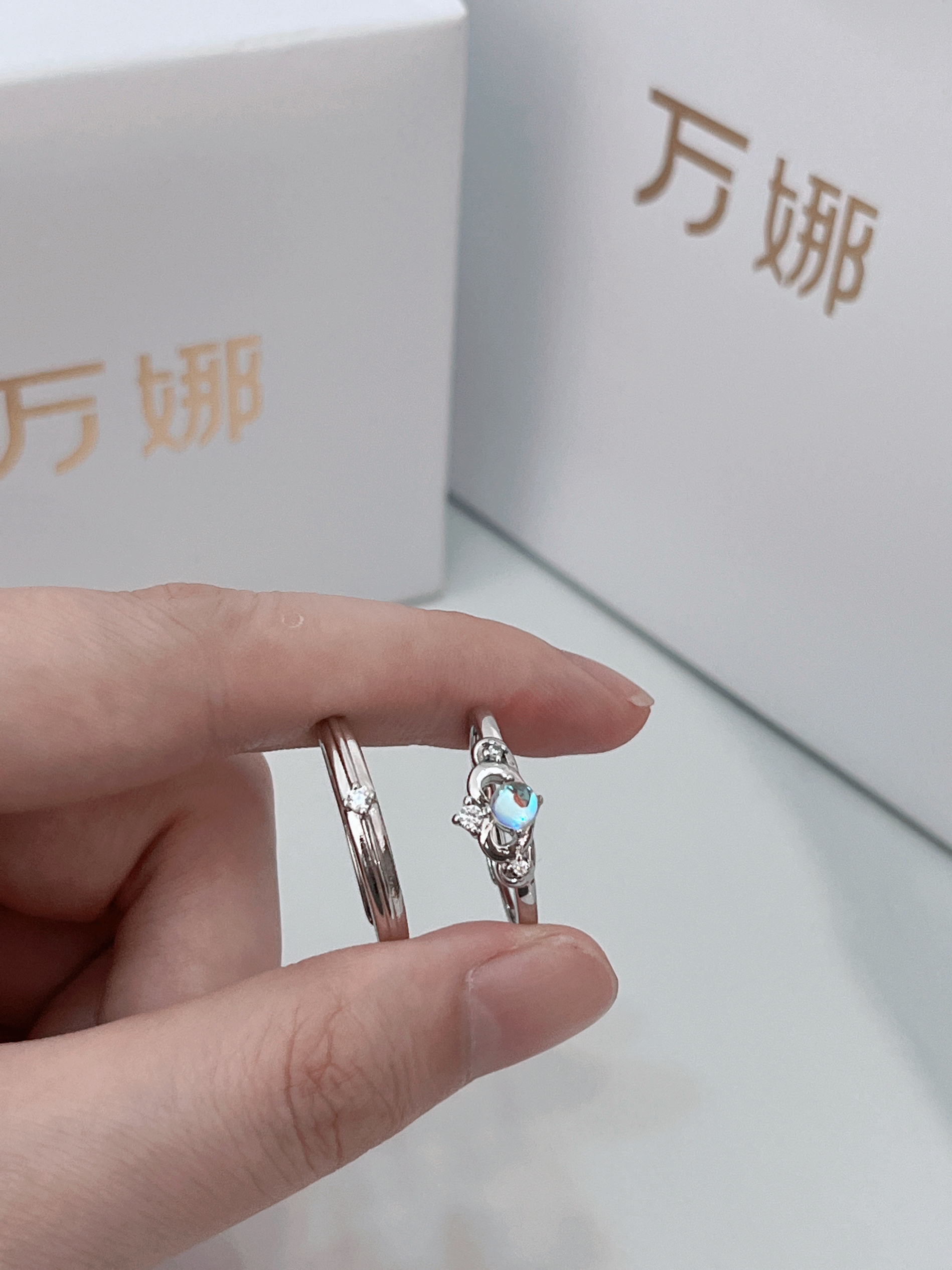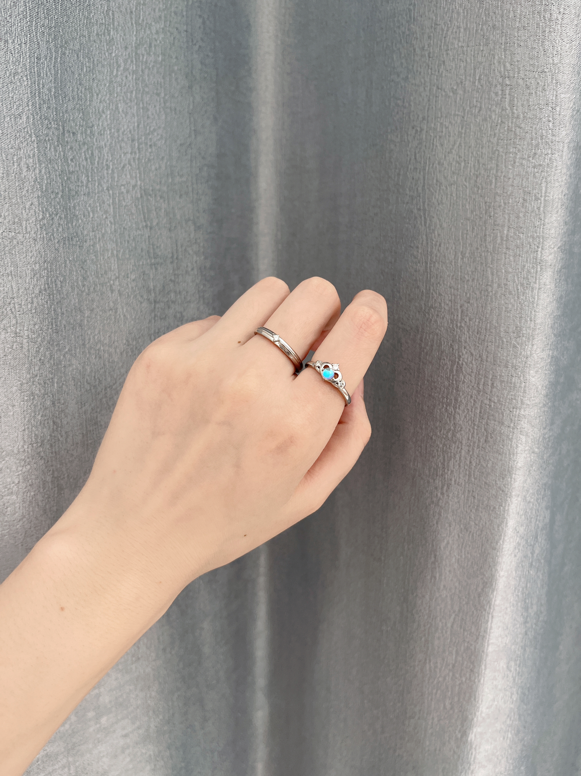 女款闪闪的超梦幻 男款简约日常 很耐看 也超级百搭 日常穿搭戴上都好看的 做工很精细 材质是$925银的 而且它的圈口是可以调节 不用担心尺寸问题 还可以刻字哎 买来和对象一 起戴的 给他个惊喜