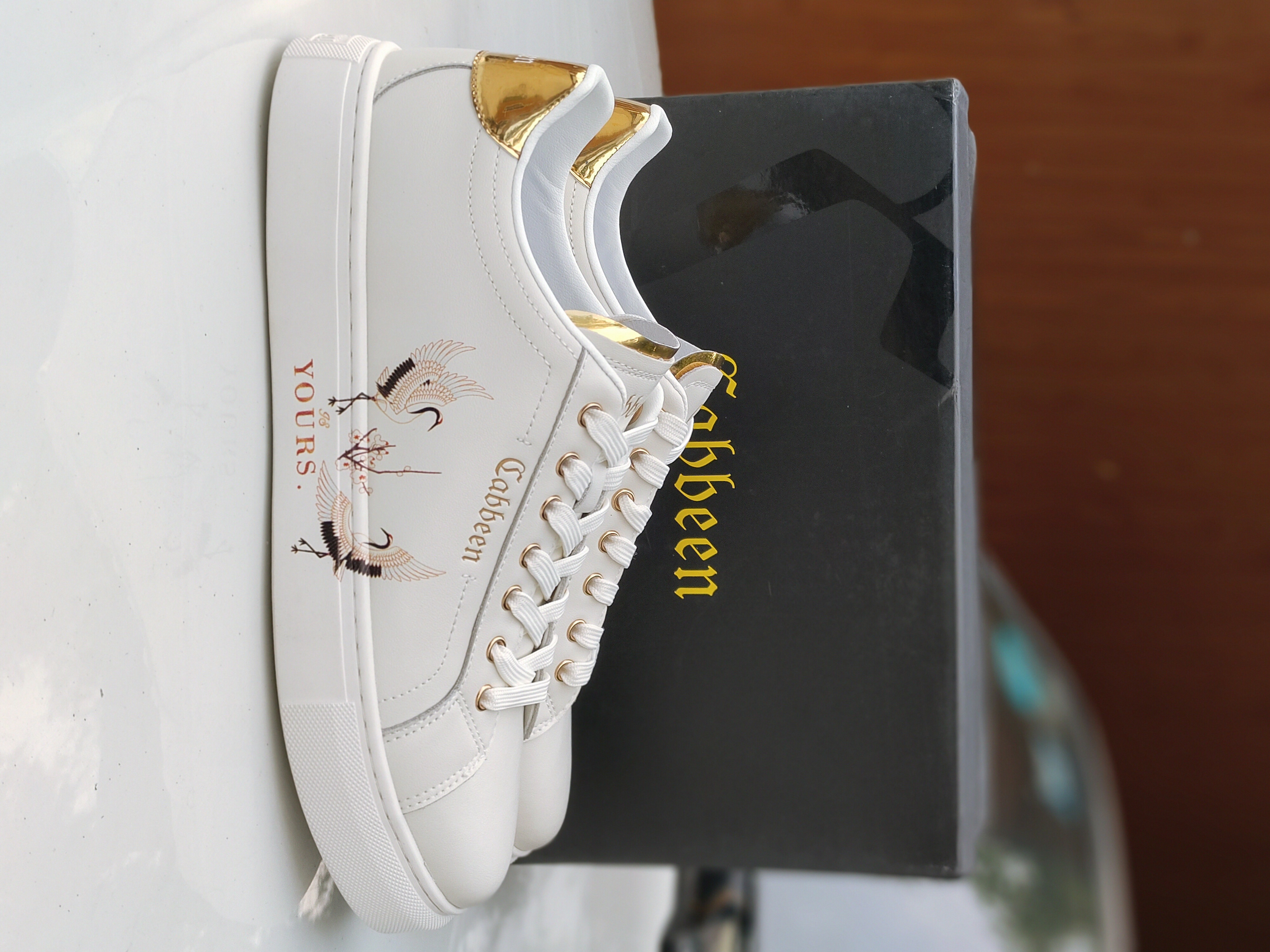 今天给大家分享一款休闲卡宾小白鞋 鞋型特别好看,鞋侧面有仙鹤图案 鞋舌有金边标识,特别酷 大底也有品牌logo字母