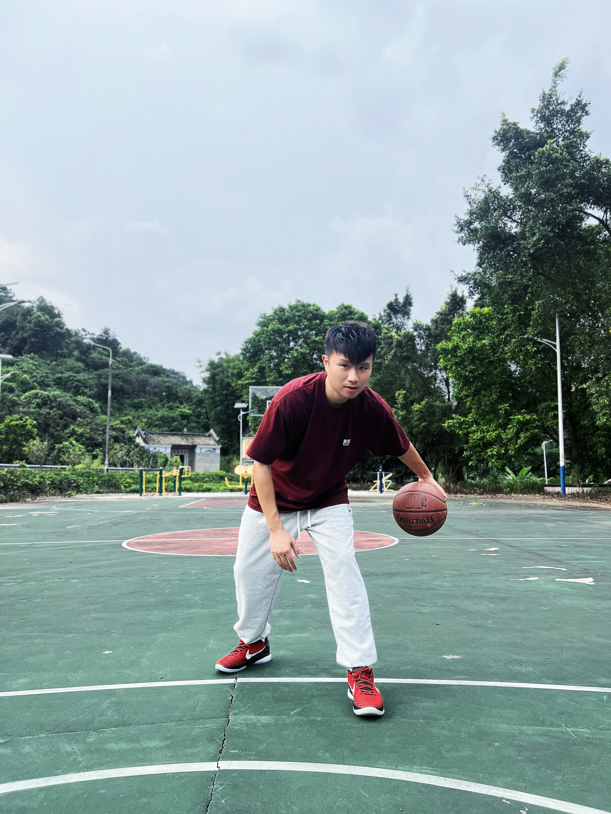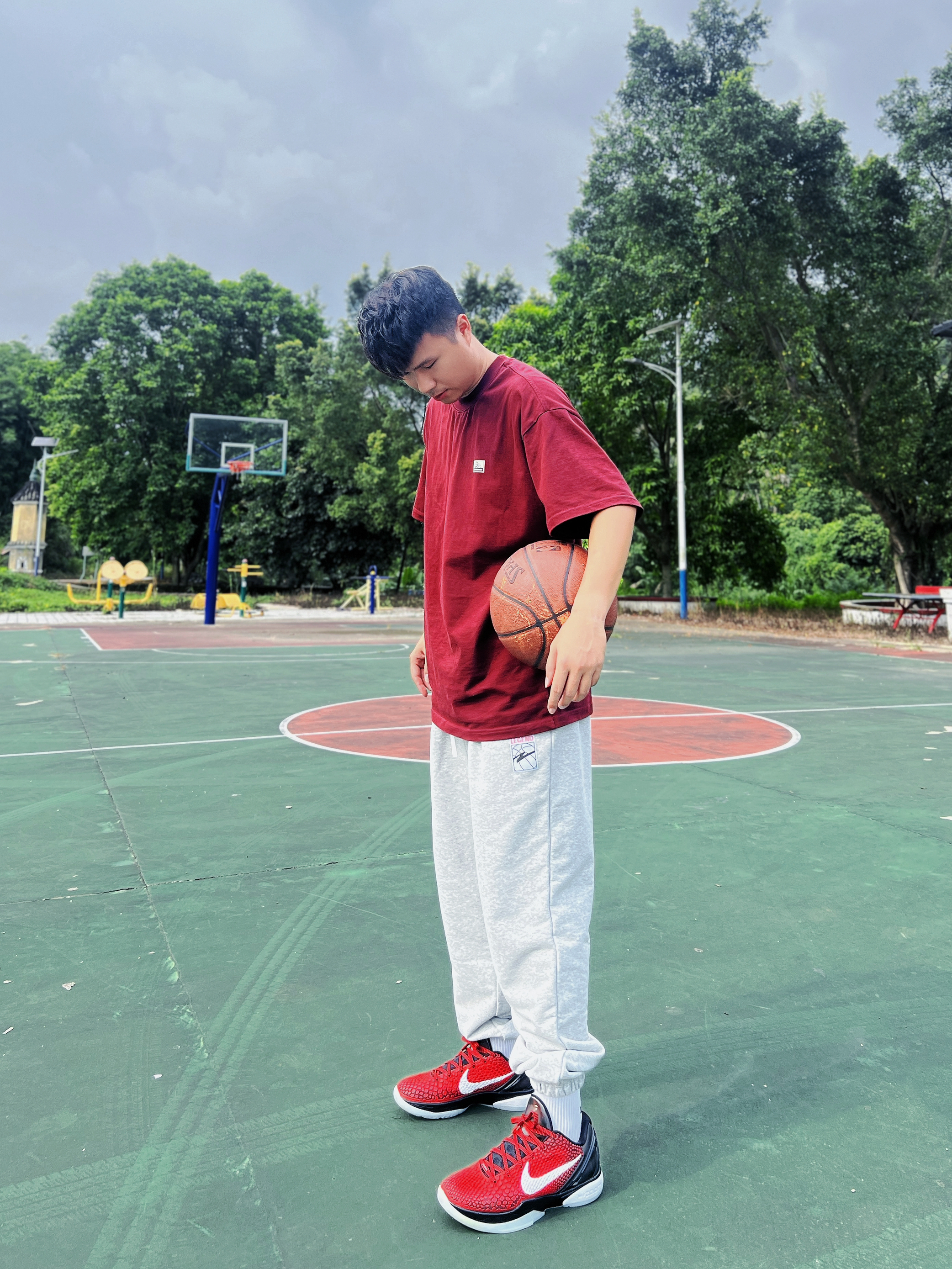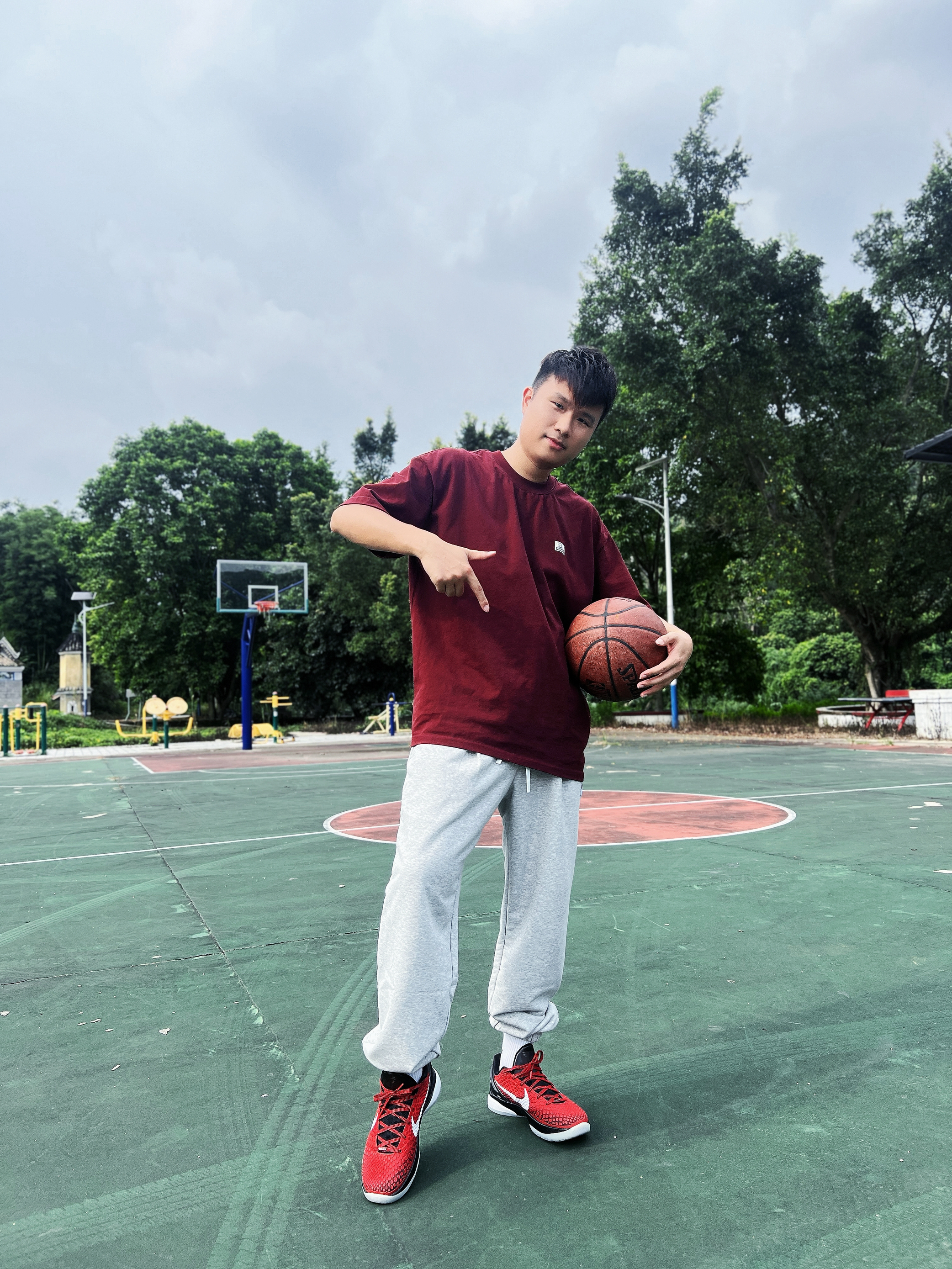爱打篮球的男生 应该会特别钟爱美式球员风的穿搭⛹🏻 不管是平时休闲逛街 还是约上几个好朋友去打球 选一条高颜值的百搭运动长裤👖 既保暖又舒适 夏天可以搭短T👕秋冬则可以搭配卫衣 不管怎么搭都不会出错 今日份穿搭🧍🏻 上衣选择一件跟球鞋颜色相呼应的暗红色短T 大贴布的图案设计 特别适合美式风格的穿搭 下身选择一条浅灰色的运动卫裤🩶 是有志者UZIS的秋季新品 卫裤是那种高密度毛圈面料❤️🔥 即...