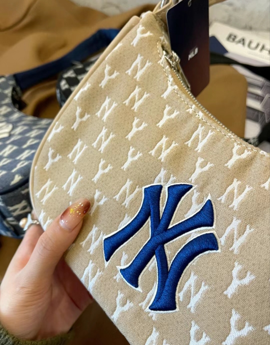 本篇笔记关联了【泫雅同款】MLB Monogram系列 NY纽约洋基队涤纶聚酯纤维复古老花满印休闲腋下包 米黄色 等商品,为用户提供真实的使用体验和购买参考。