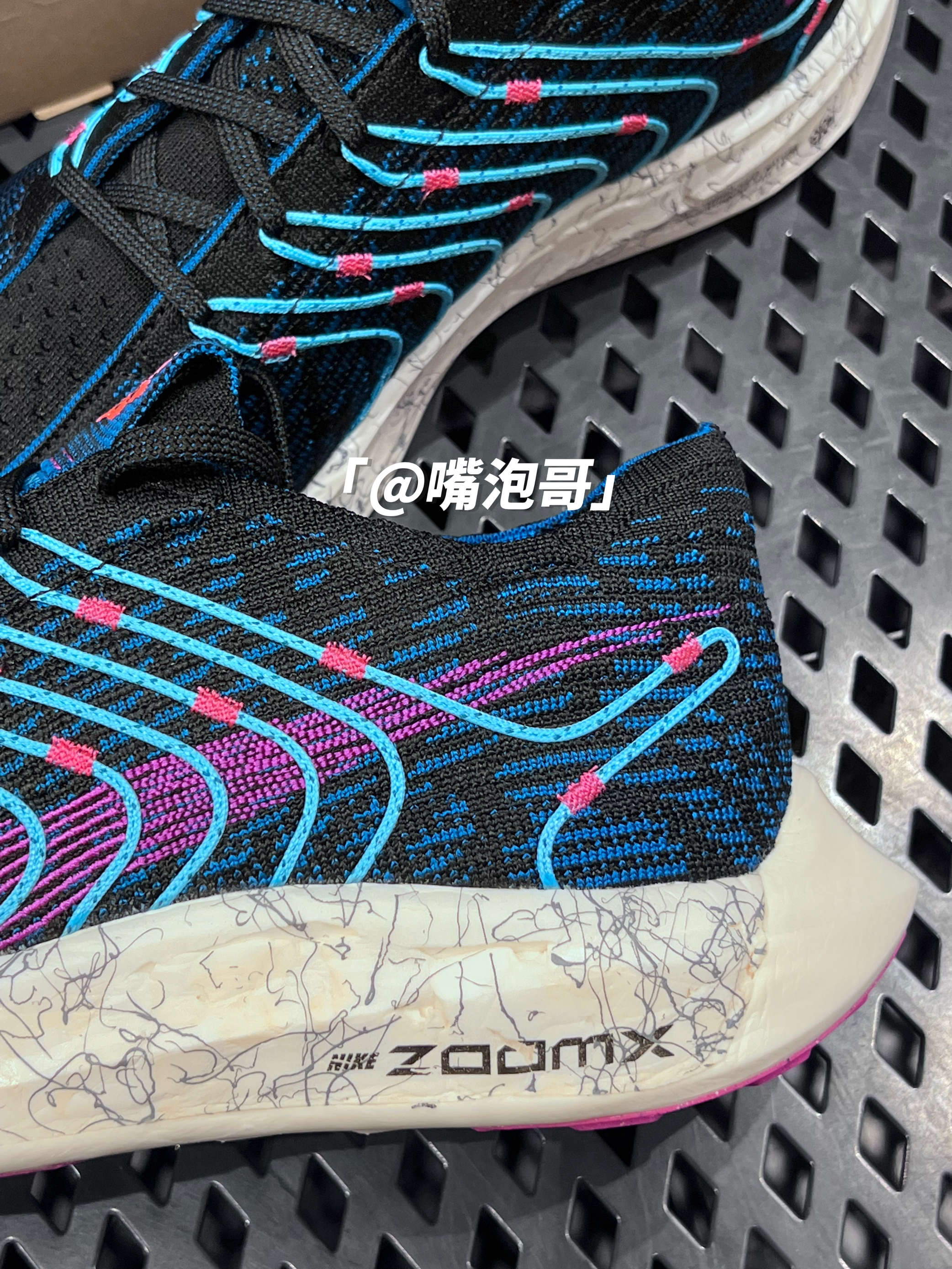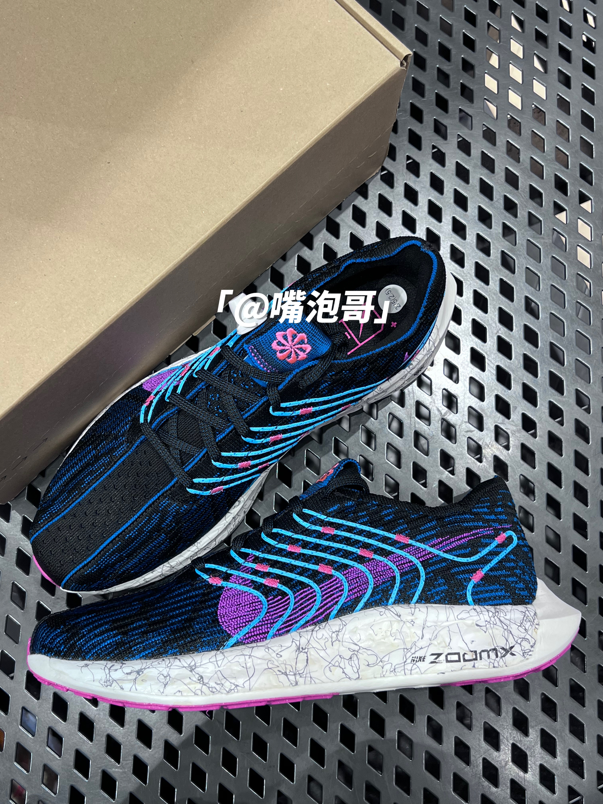 👟:Pegasus Turbo Next Nature "Peg Future" 黑蓝色 简介: 鞋款是一双环保系列的低帮跑步鞋,整双鞋子采用了黑蓝色作为主色调呈现,并且又加入了浅蓝色、玫红色、紫色进行装饰,使鞋款外观配色更为丰富,织物鞋面搭配全掌ZoomX缓震泡棉,使鞋子整体具有良好地脚感,更为让穿着者更为轻松的运动。 细节: 鞋面采用了复合编织布打造而成,使鞋面柔软透气,两侧的sw...