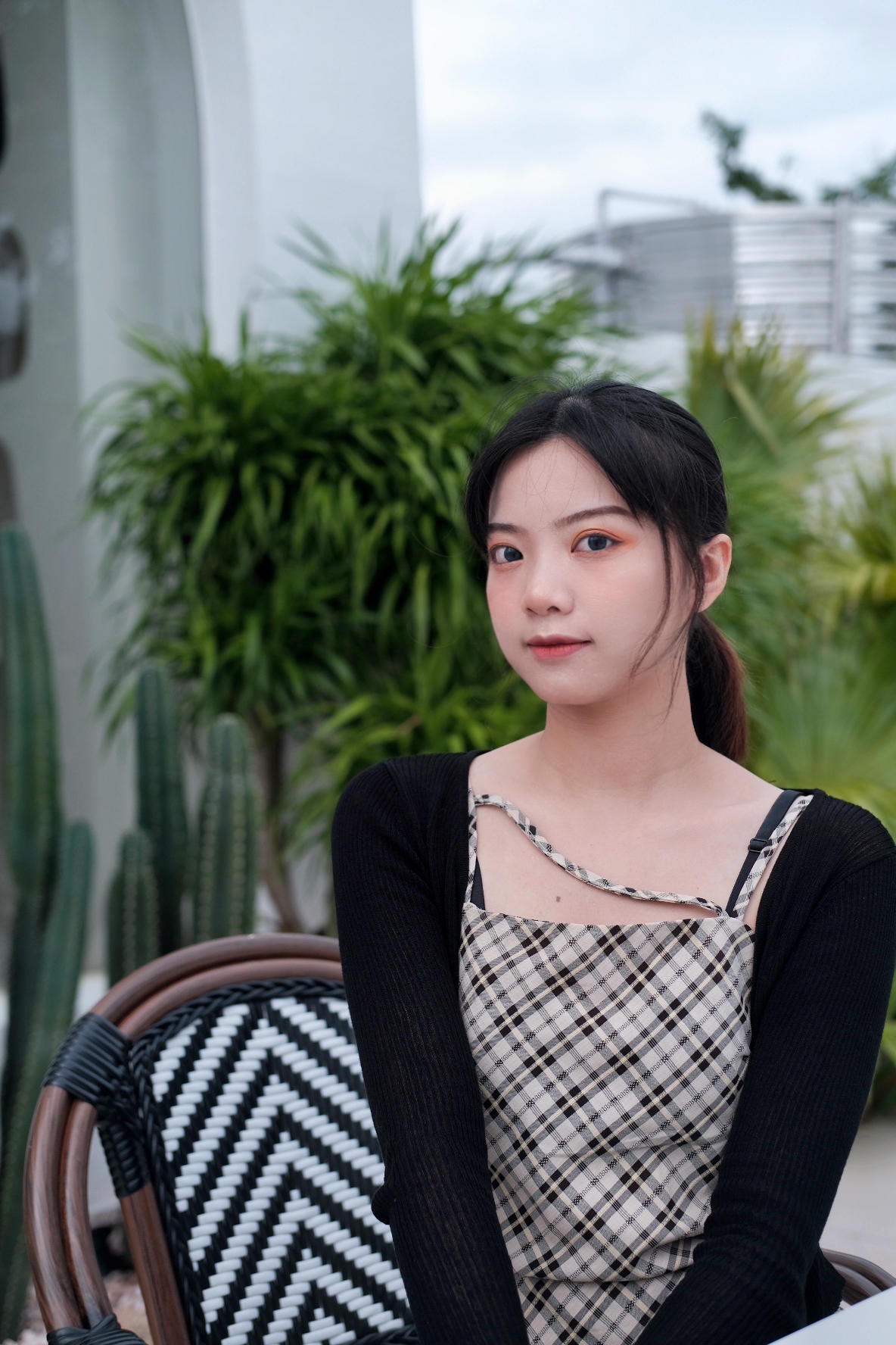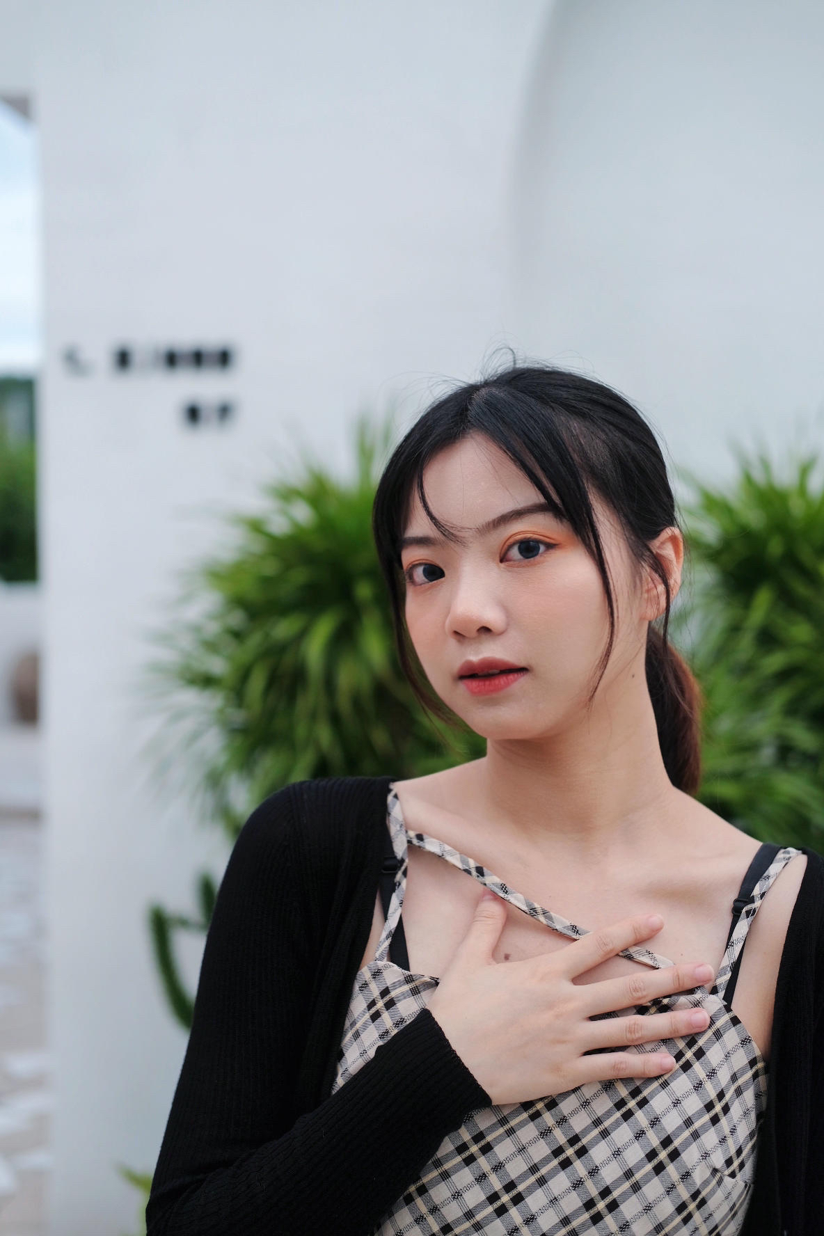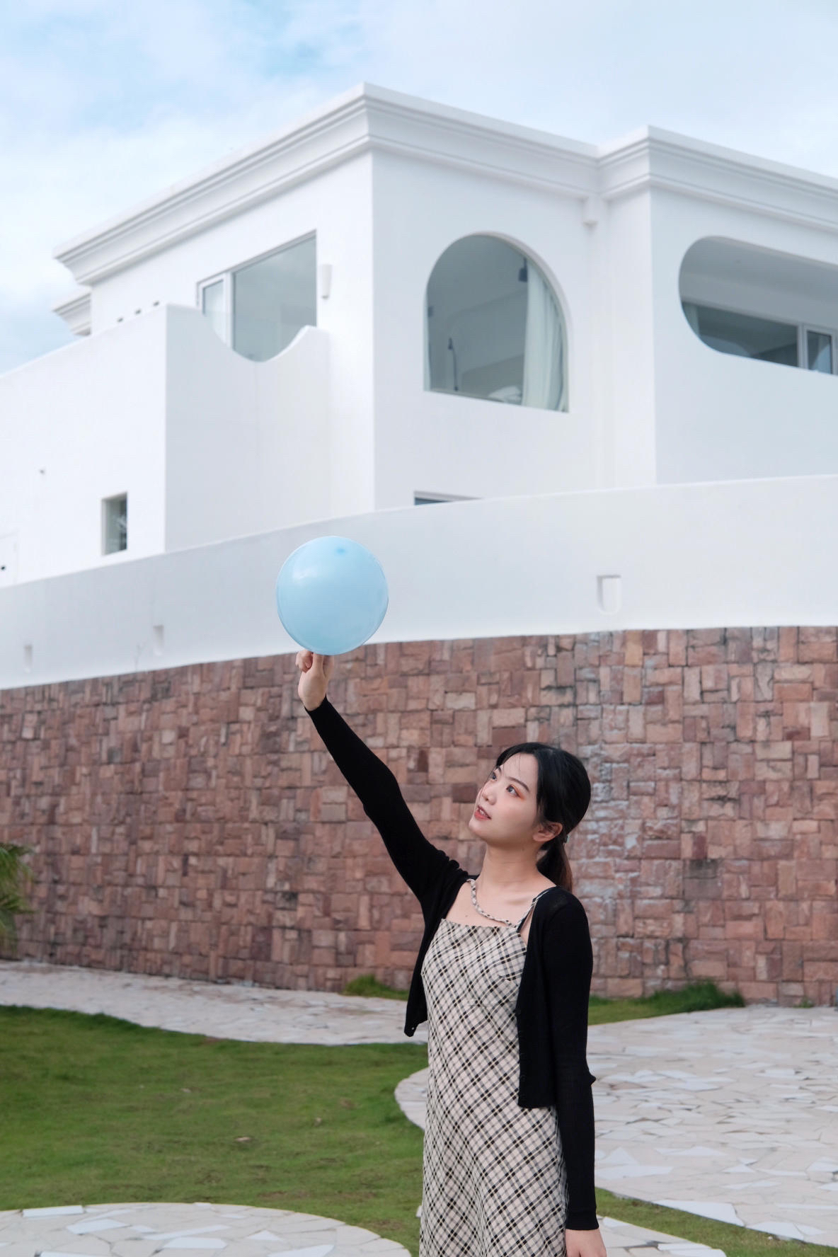 最近去看海了 天空很蓝 海水很清 在海边当然要穿裙子呀 格子吊带连衣裙真的是永不过时 外搭一件镂空的短款外套 遮肉又防晒 出片率💯