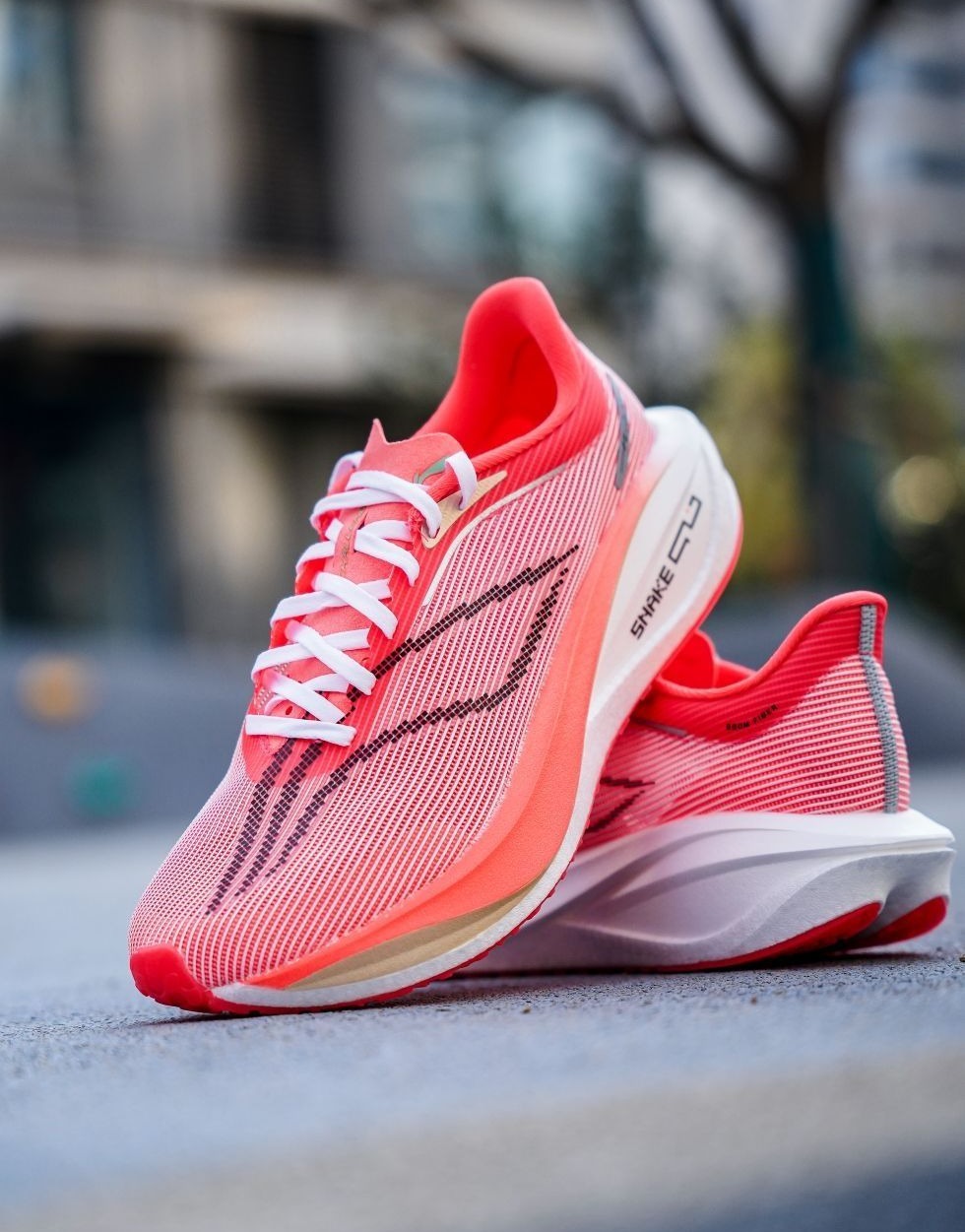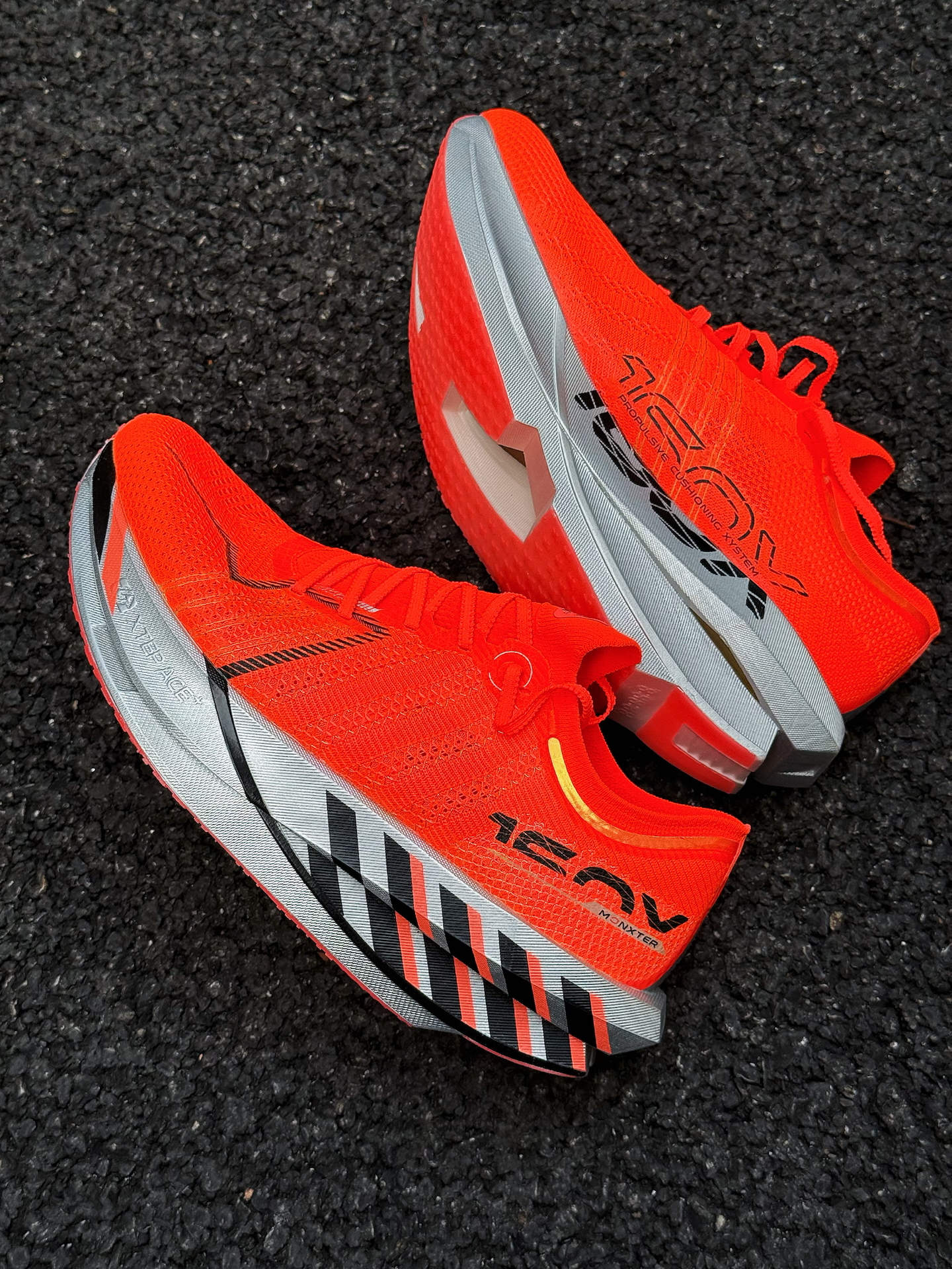 神行到手也是穿着了小60KM里了。 先来说一下静态的感受,四个配色最喜欢的是这抹亮橙的神行,针织鞋面材料袜套式设计,加厚的后跟填充和港宝,完全兼顾了穿脱方便、透气、包裹和舒适等多方面需求。 前31mm后39mm的前后落差,充满战斗力,延续了飞飙的分离式中底,裸的碳板甚至可以看到类似于加强筋的仿生趾骨条,处处都透露着一股力量感,给你一种穿上它就会飞奔起来的感受。 颠覆性的粗胚一体式超临界发泡工艺中底...