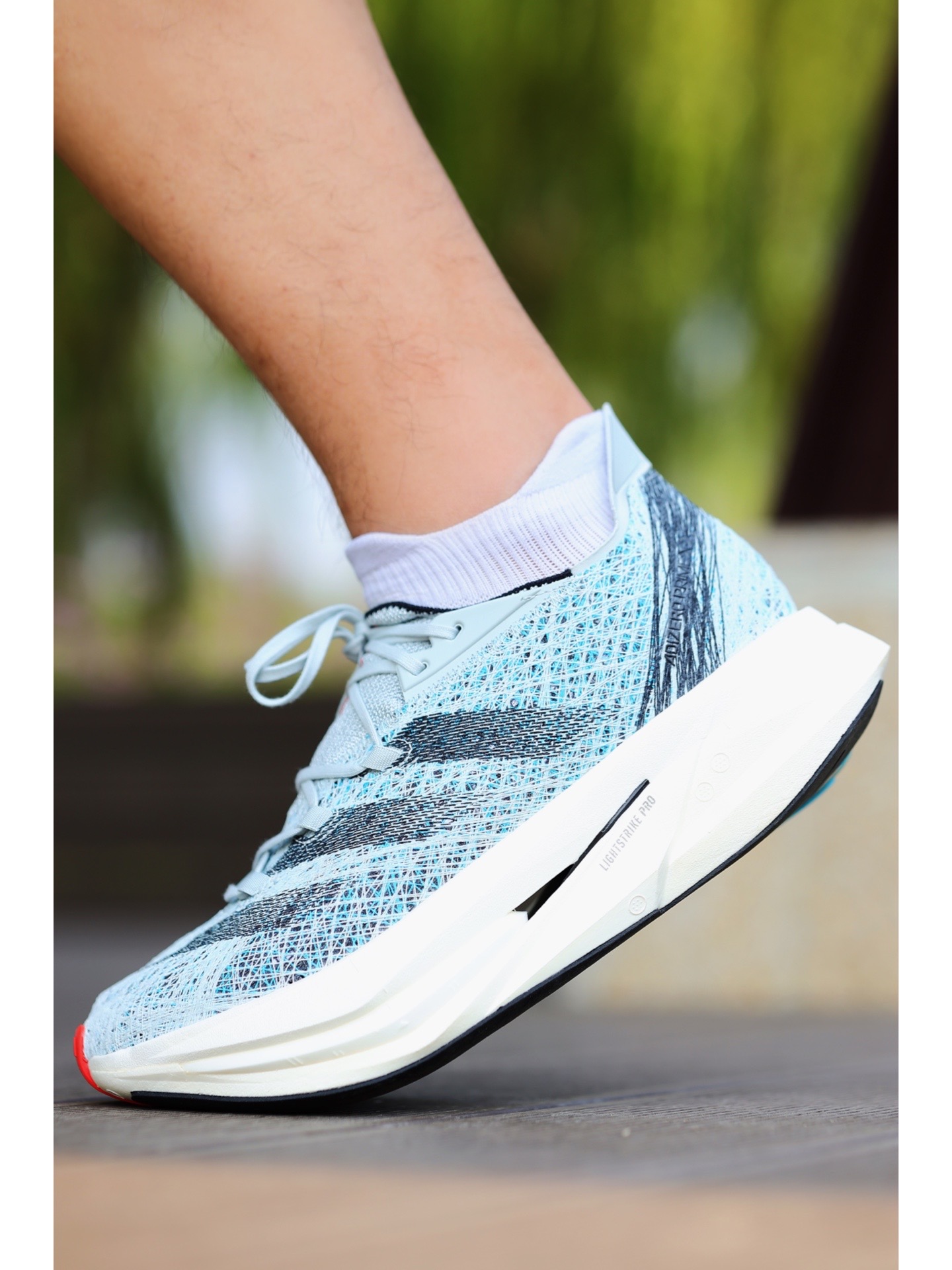 整双鞋惊艳的脚感更多来自于前掌,3层LSP泡棉+两层碳板配合夸张明显的上翘弧度,滚动感很强烈,中底很弹很弹! 但这么厚的中底也很考验脚踝力量,如果不是大神级别的专业跑者,还是不要轻易尝试这双跑鞋,平时通勤走路穿都不稳。 除了中底过于惊艳以外,这次2代鞋面的舒适性也挺不错,强度很好并不磨脚,不过鞋楦做的有点微宽,瘦脚需要把鞋带系紧一些,不然会感觉鞋面有点带不动中底。 #穿跑鞋跑起来 #运动也要...