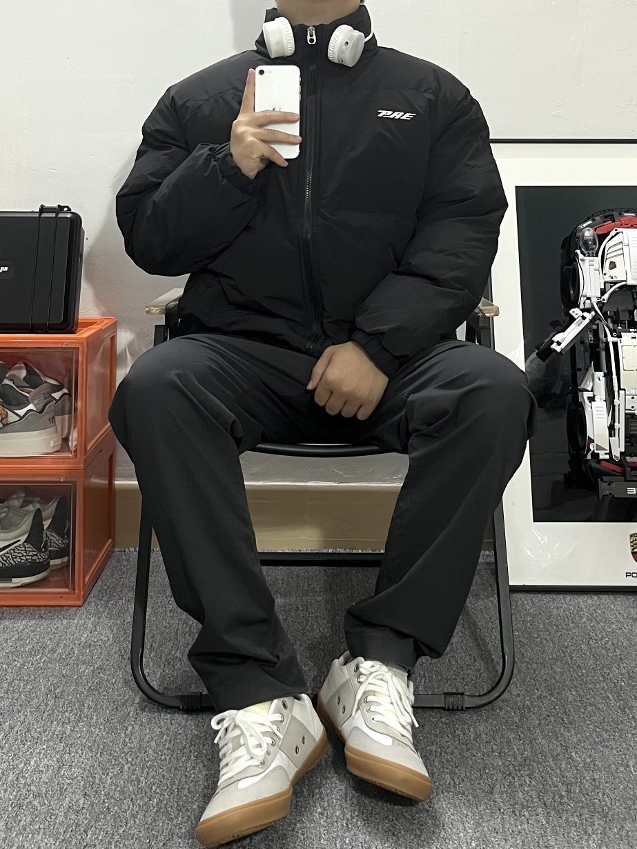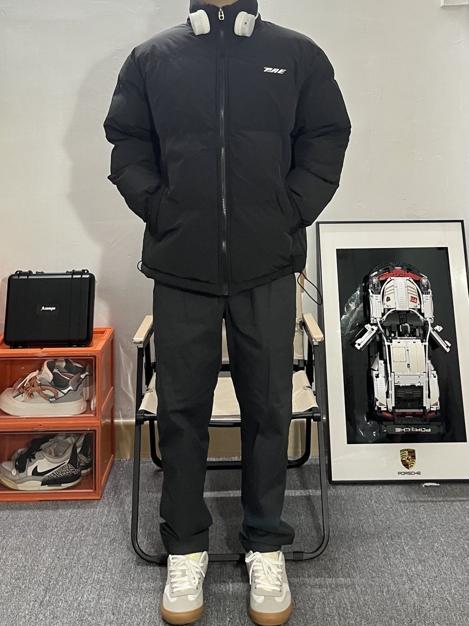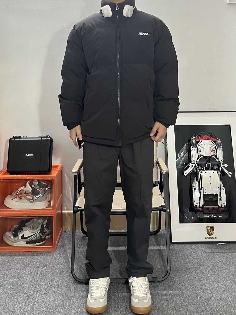 身高|体重:170/110 🧍♂️ 穿搭风格:美式街头 👔 上衣:BLD x棉服 👖 下装:休闲西裤 👟 鞋子:德训鞋 选一款好的羽绒服 最重要的还是保暖性要好 其次 当然是颜值 这款黑色羽绒服真的太百搭了 版型很 好 重量很轻 真的满足了这个冬天对羽绒服的需求! 搭配黑灰色或者黄泥染的牛仔裤好显身材 对于瘦瘦的男生真的太友好了!
