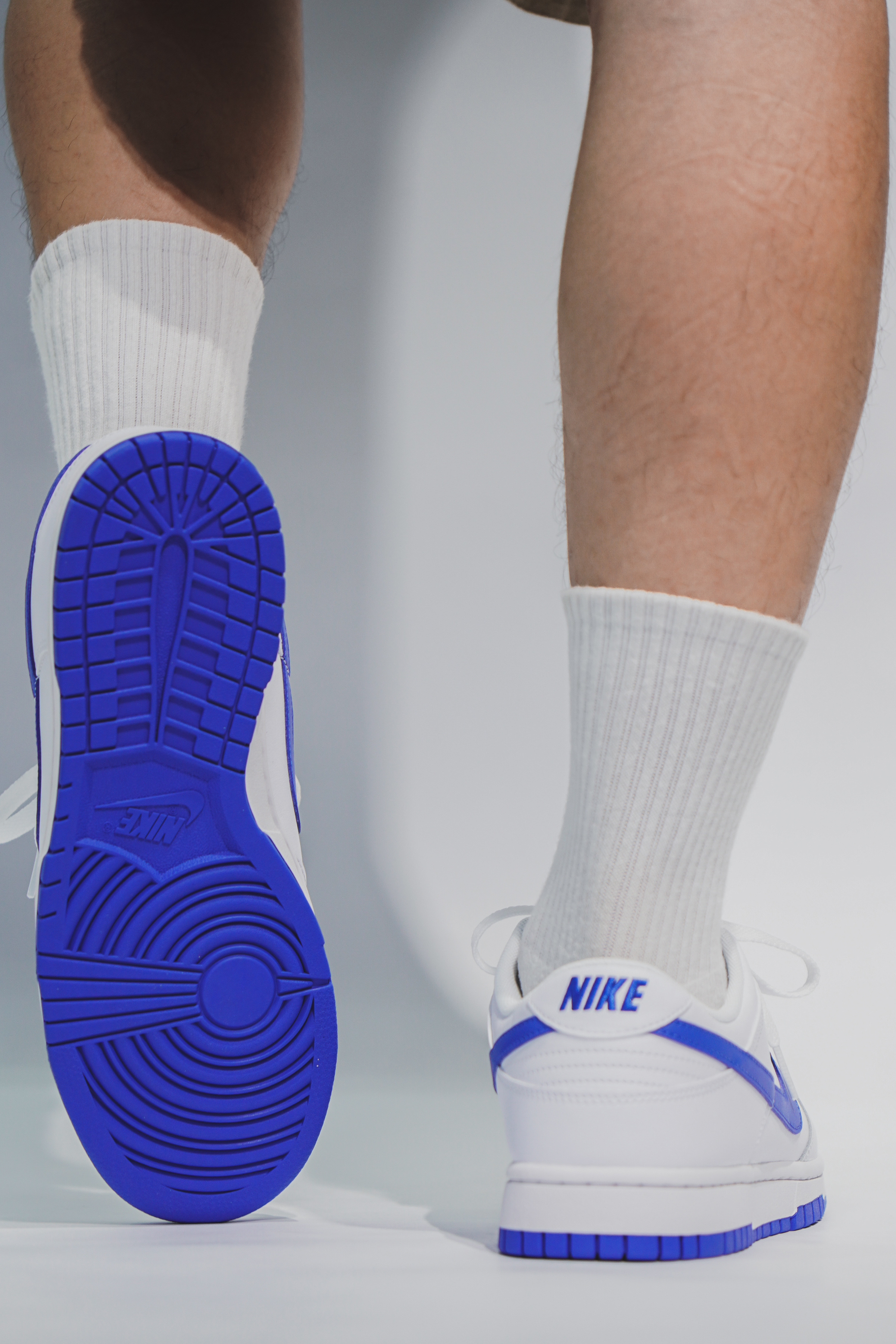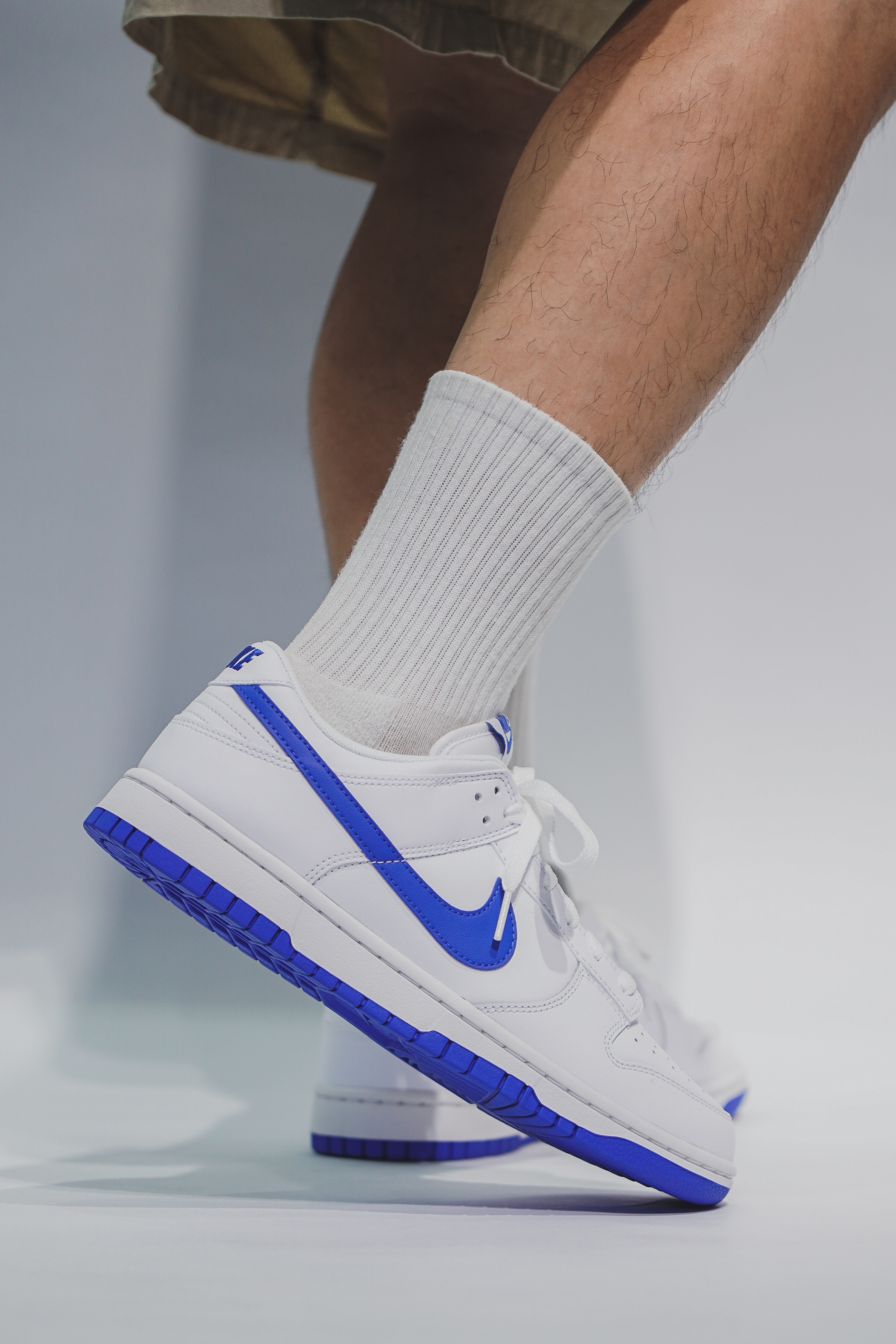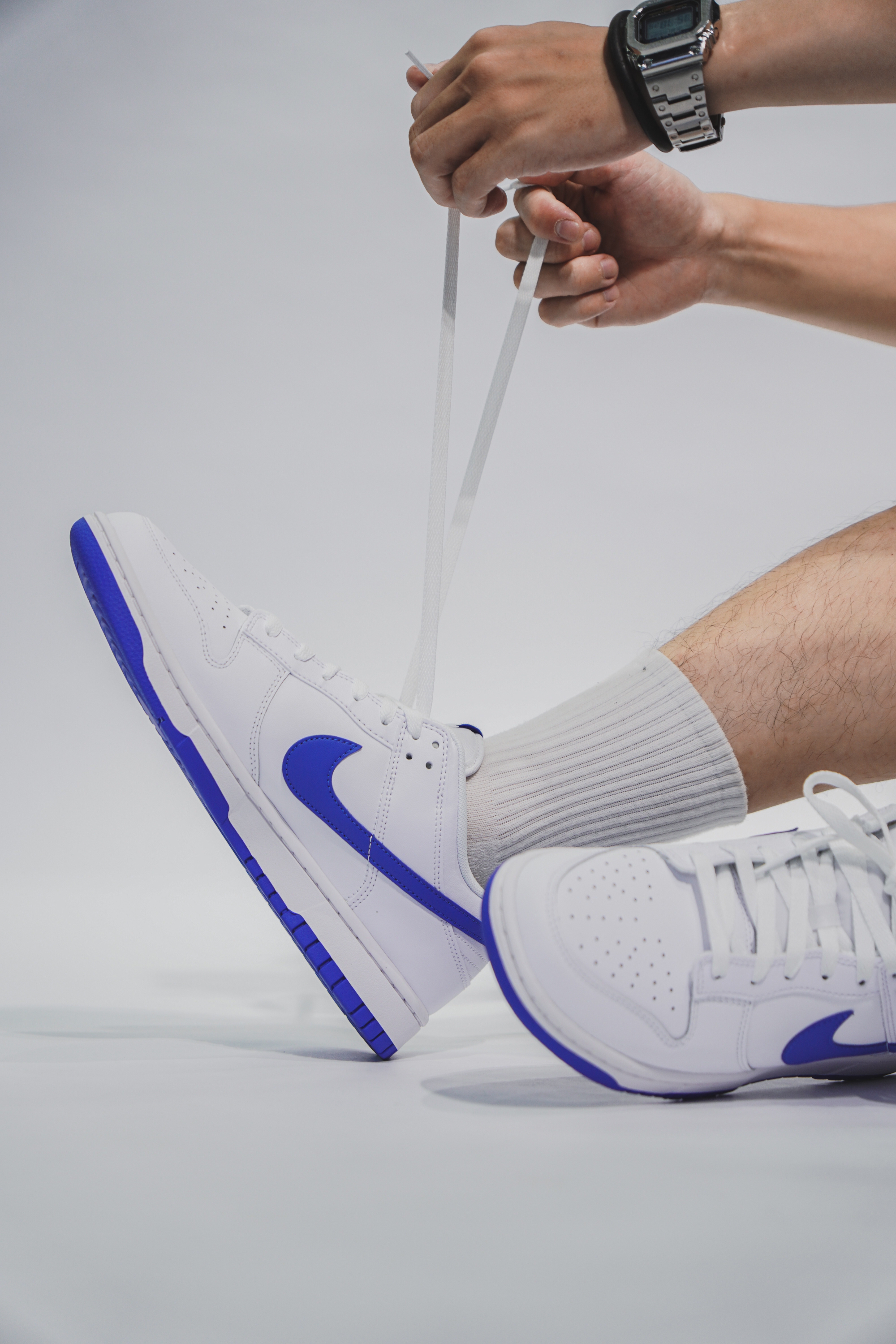 该款全新配色的 Nike Dunk Low Hyper Royal,整双鞋在配色设计上十分简单,整体选用白色皮革,之后在鞋舌绣标和鞋尾位置融入蓝色点缀,与此同时,鞋侧 Swoosh 和外底同样辅以蓝色,完成整体设计。 虽然看似简单,但是由于它的配色设计与先前藤原浩上脚的 Fragment x Travis Scott x Air Jordan 1 Low OG 十分相似,引起大家的关注!