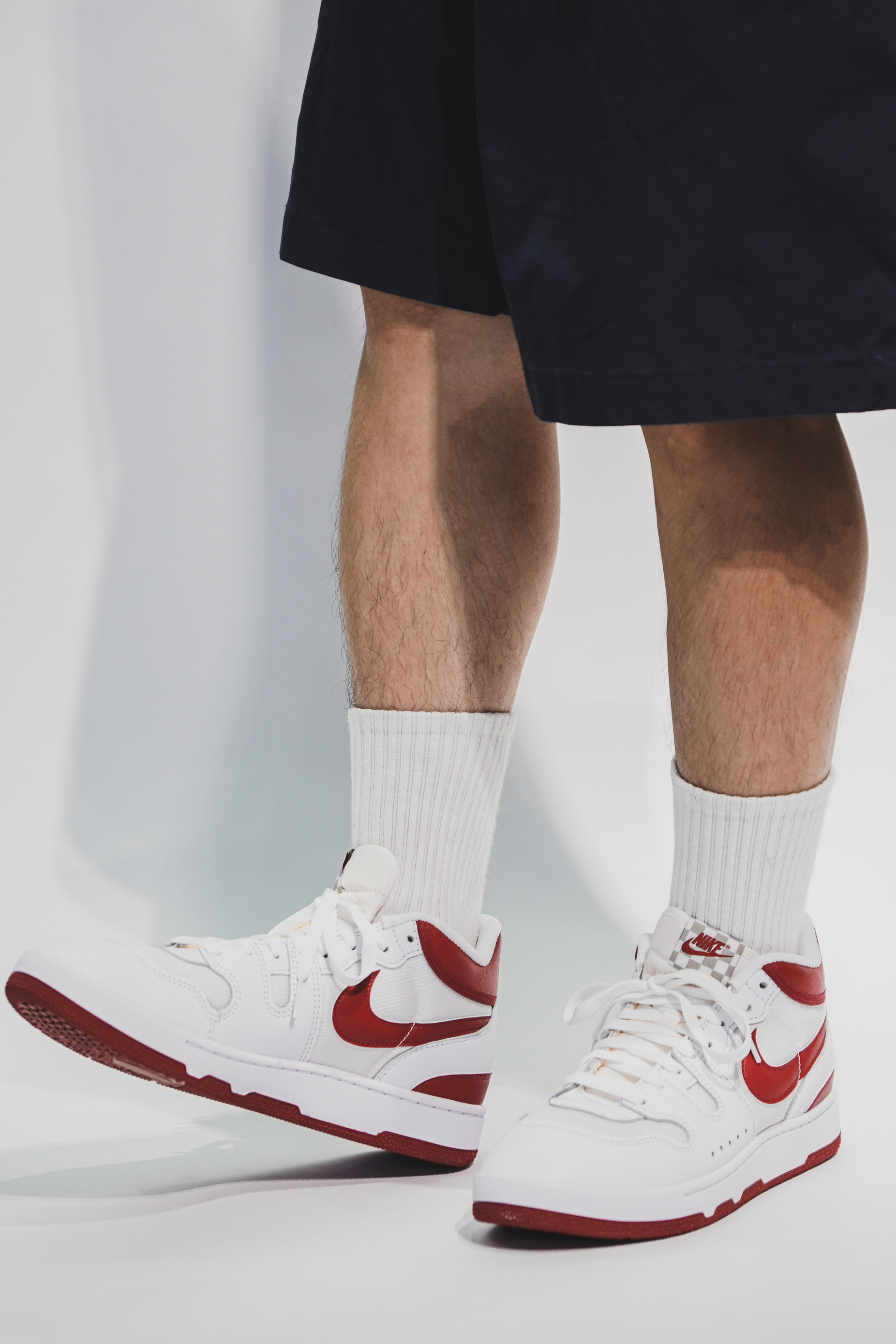 该款 Nike Mac Attack "Red Crush" 鞋身整体同样以皮革和网眼材质打造,整体以白色为主色调,搭配红色Swoosh等细节点缀,颜值十分简约。此外鞋舌标签也同样以特殊的格纹样式设计,营造出复古的氛围。后跟鞋帮部分的Nike字样以白色呈现,内衬上还带有特殊的货号以及尺码字样。从上脚效果来看颜值还是非常百搭的,其复古的鞋型也恰好迎合了当下的审美!