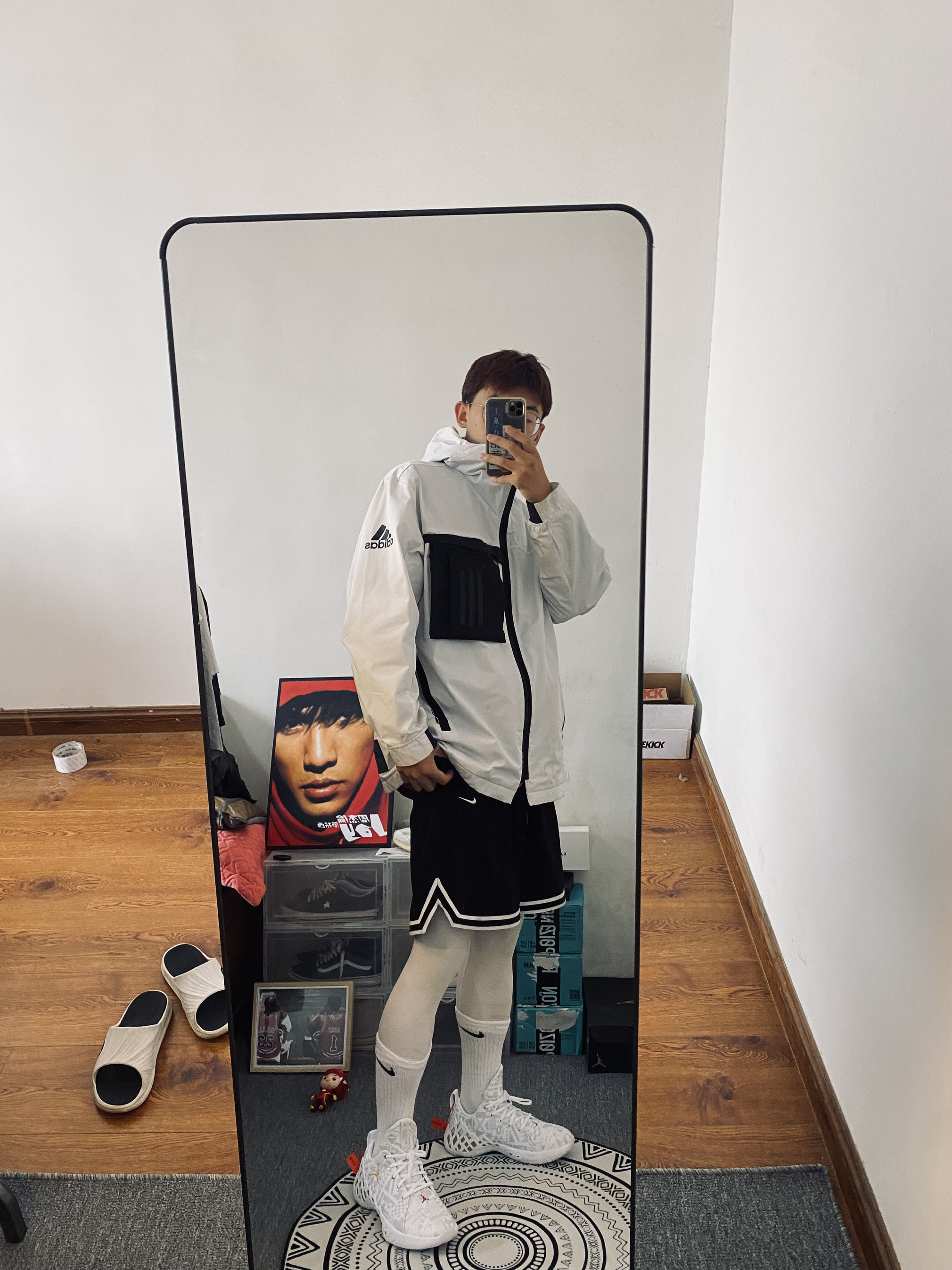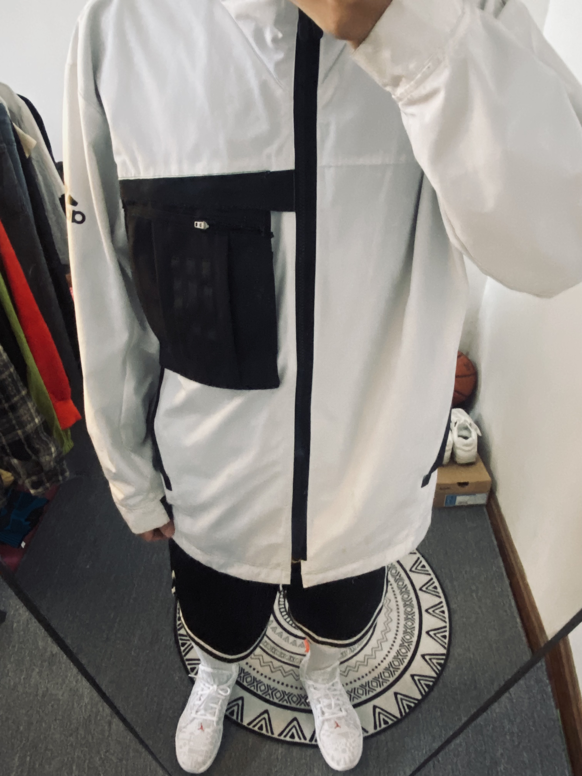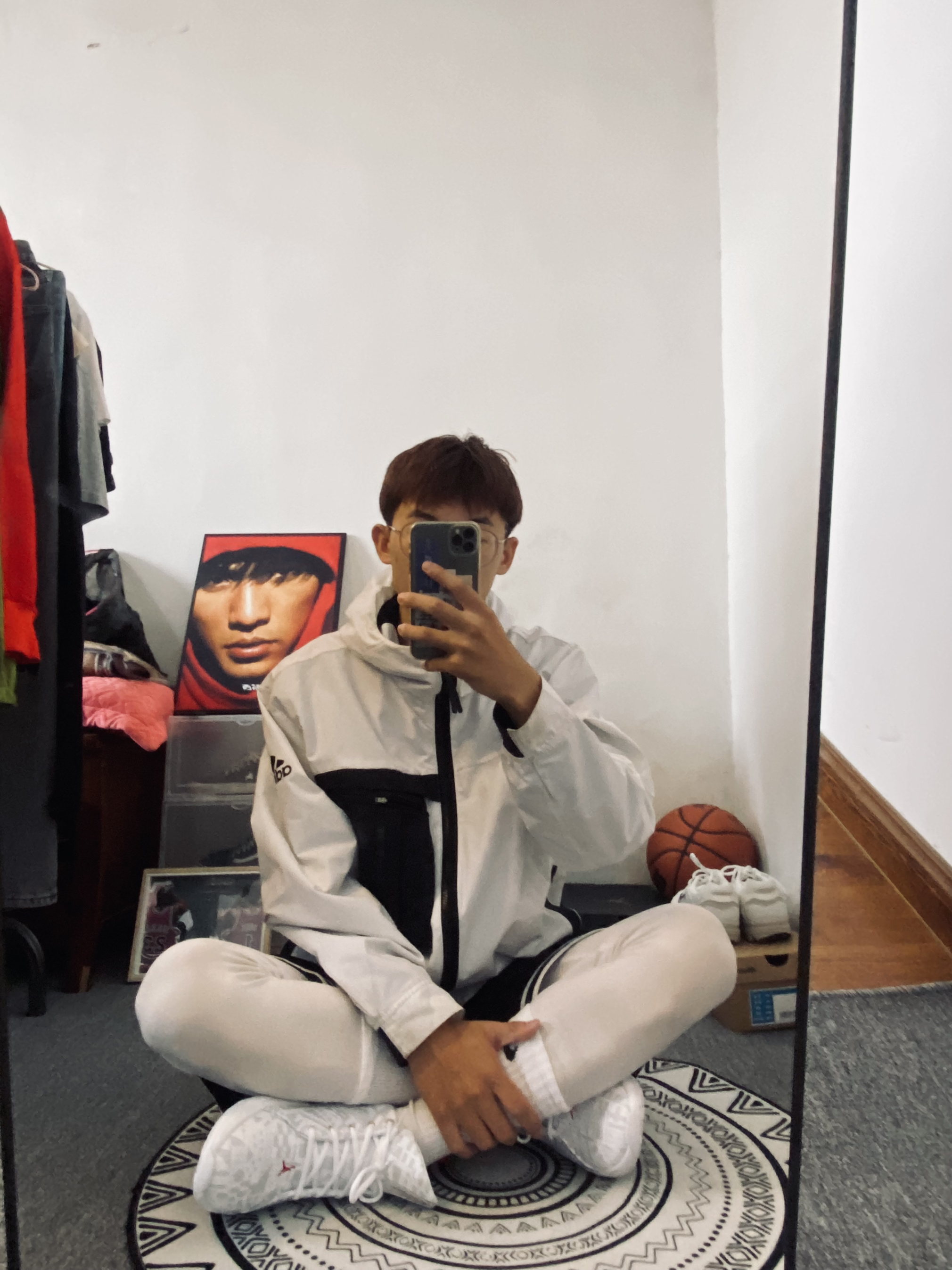 ootd|秋冬打球🏀抗冷分享 兄弟们天气冷了我给大家分享分享我的秋冬打球套装[吃瓜][吃瓜] — 衣服👔是阿迪达斯的加绒夹克外套 整体是白色的版型很正 而且抗风保暖‼️‼️‼️主要还是好看 — 裤子👖是耐克五分速干篮球运动裤+安德玛紧身裤主打的就是轻便速干保暖[爱心][爱心] — 鞋子👟是我最近的新宠乔丹钻石篮球鞋 白金配色 我是有点颜值控的300来块钱的这双球鞋我觉得挺好穿的‼️ 尺码分享:17...