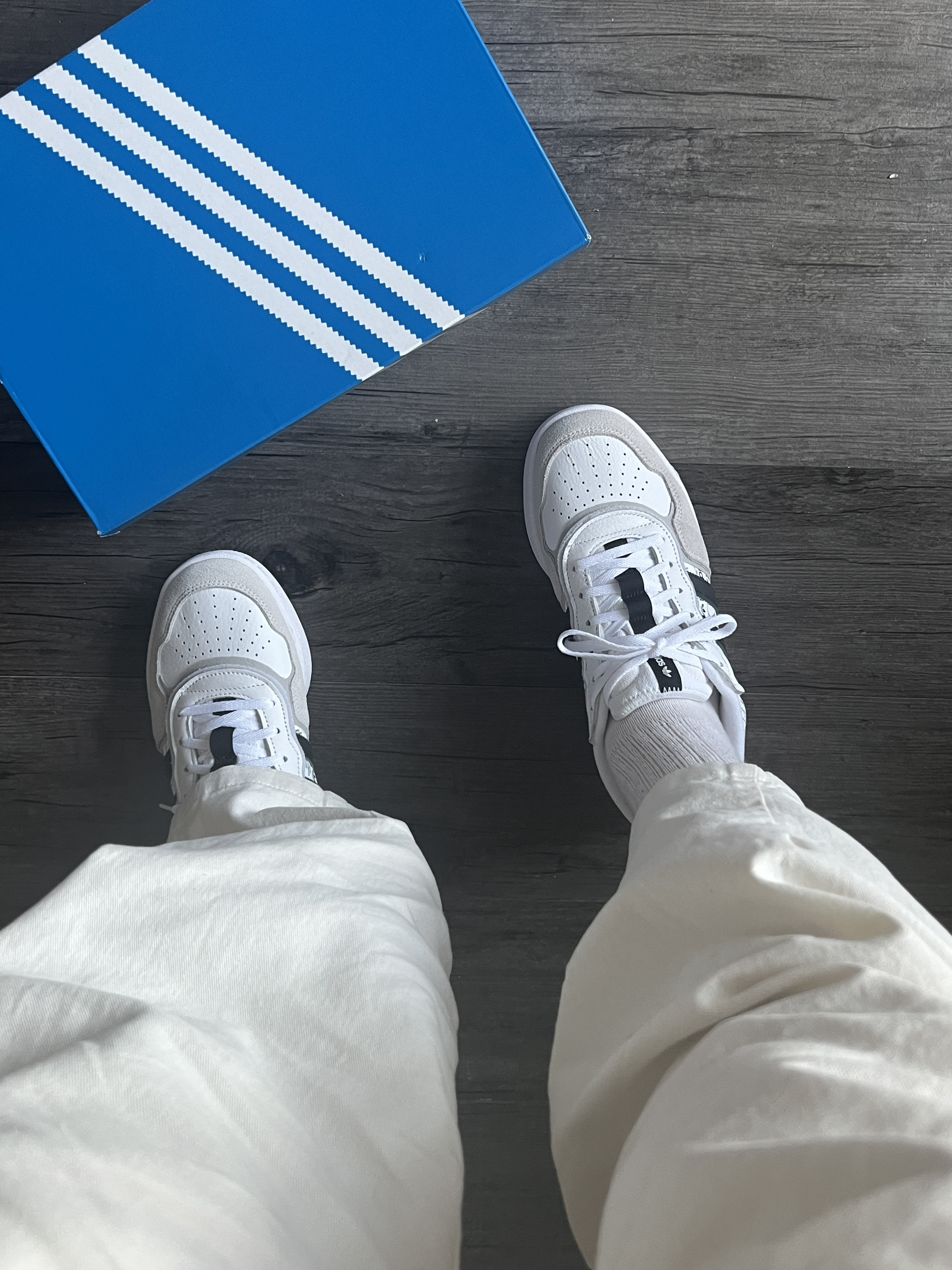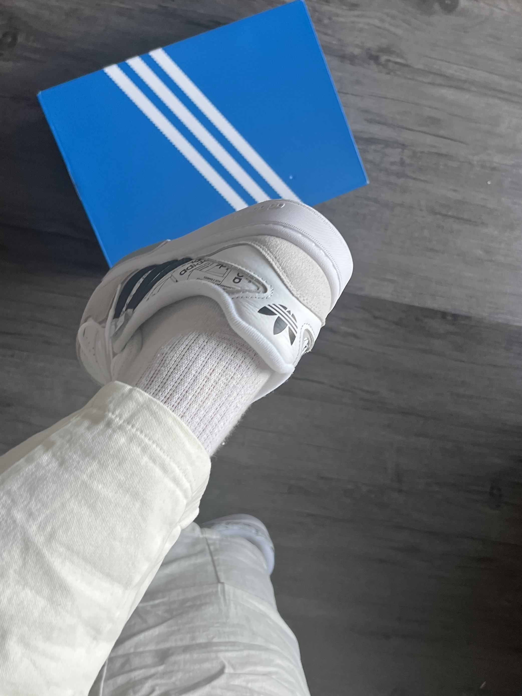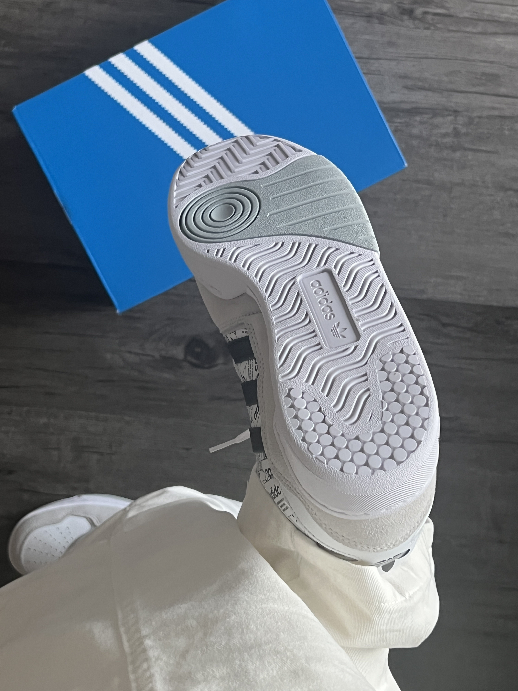 有点爱了… 这双阿迪的感觉好好看! 后面的涂鸦,太🆒啦~ 除了上脚有点硬…其他没啥缺点! 平常搭配也挺好搭的🉑️