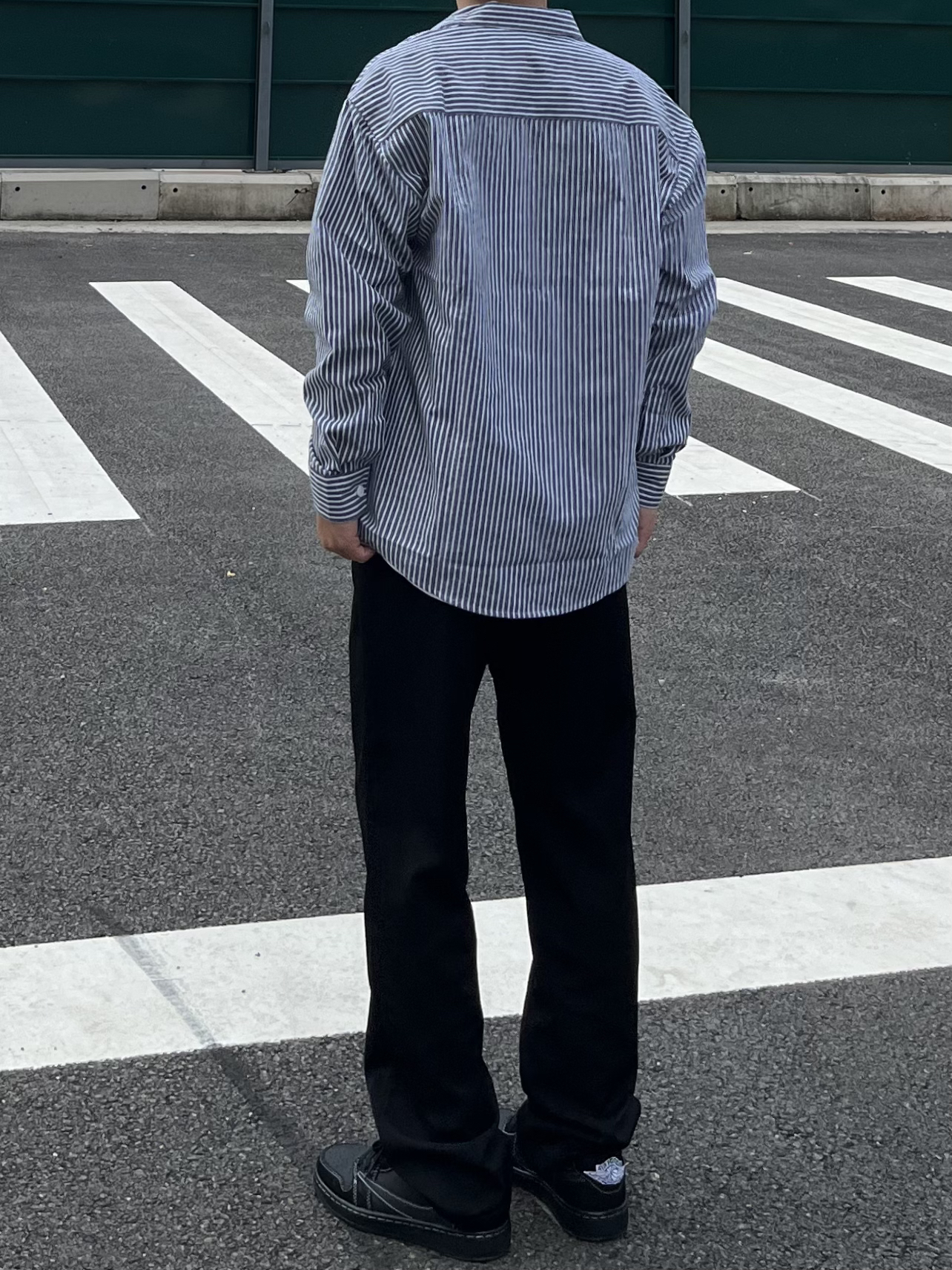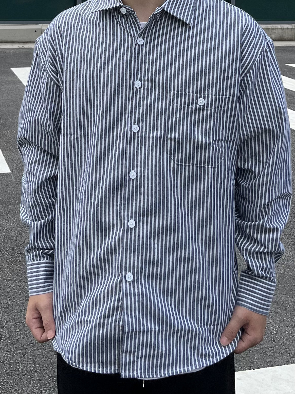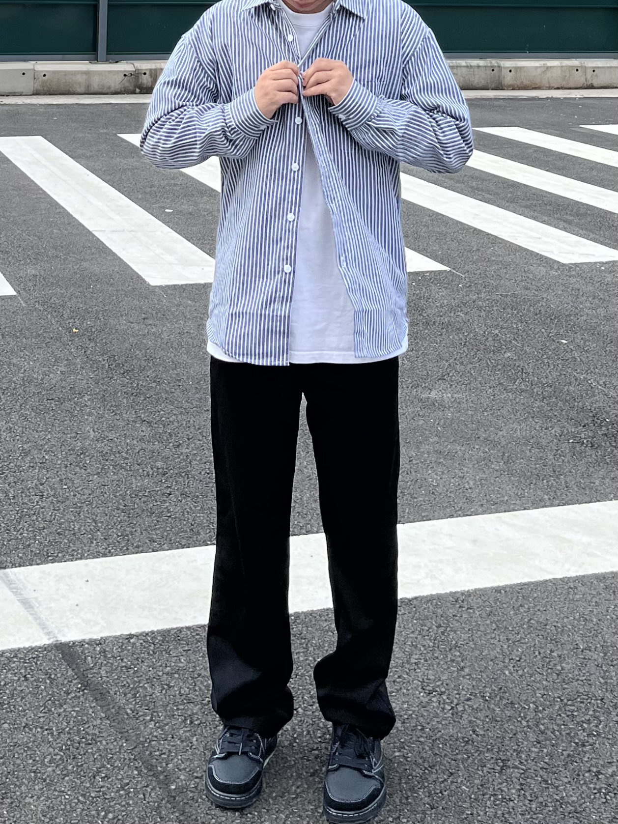 -今日穿搭分享🤓 ——————————— 🙋🏻♂️:170 / 110 · 👔:COMOWA复古条纹工装衬衫👕 男生怎么穿?可以尝试穿得日系街头出门,回头率百分百高✌️打底白t外搭蓝色条纹长袖衬衫 下半身搭配休闲西裤 然后搭配黑色板鞋整套搭配宽松舒适 日系街头感十足✔️ · 👖:休闲西裤 · 👟:BLACK/Phantom 黑武士倒钩⚫️⚪️ ———————————— -以上都是个人观点🥝欢...