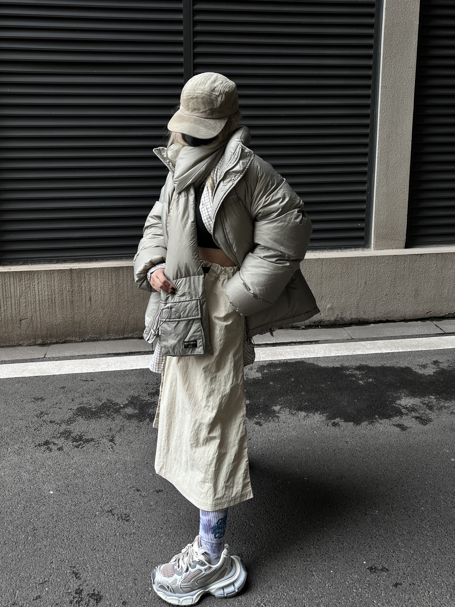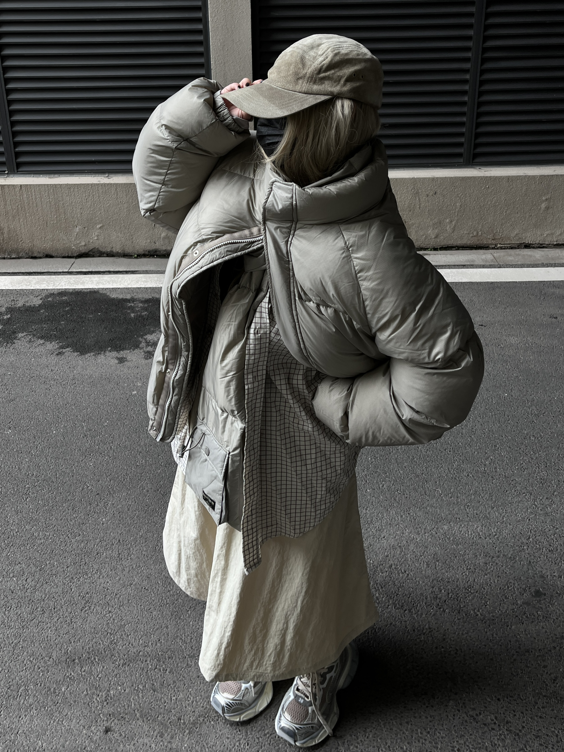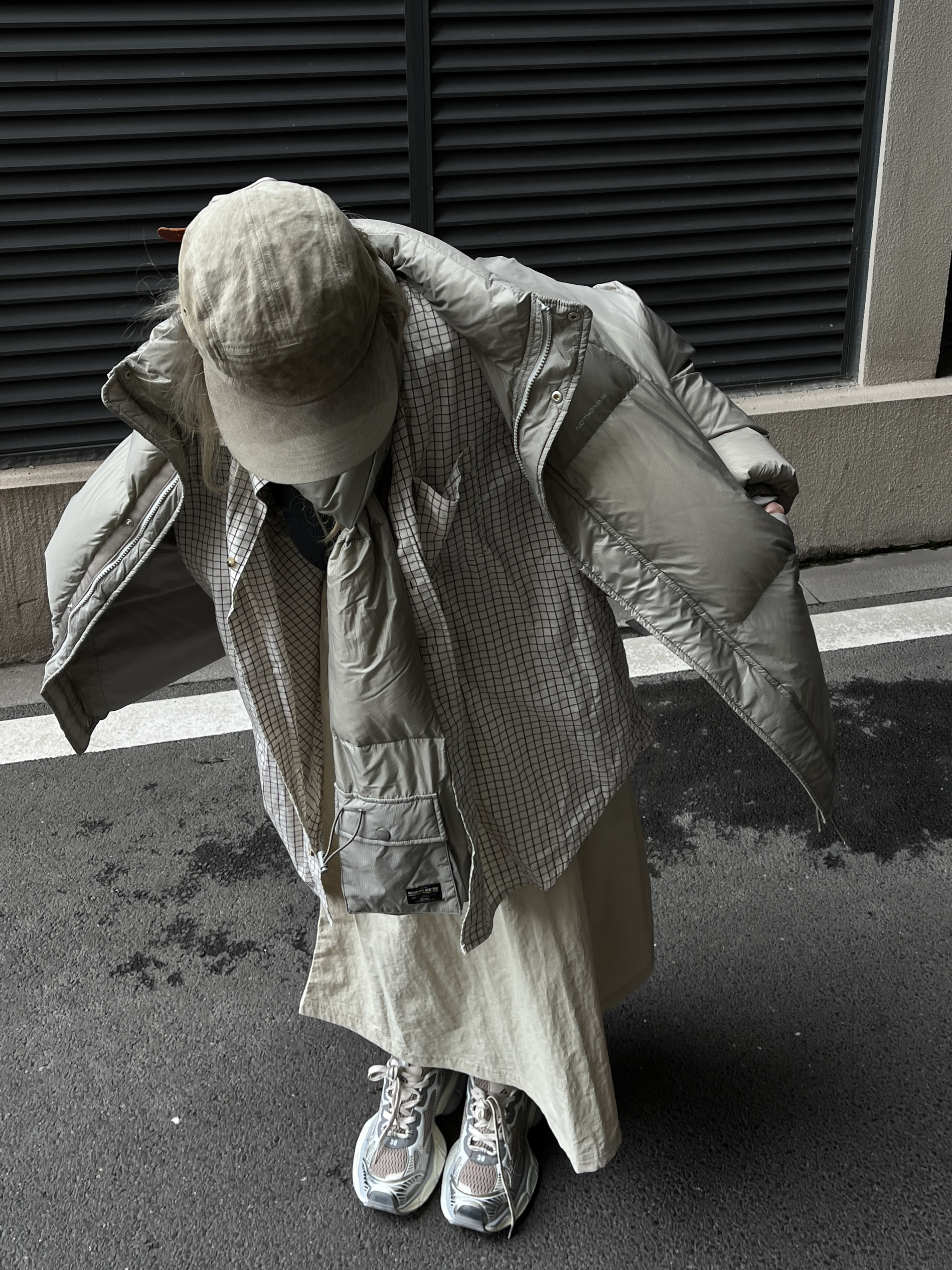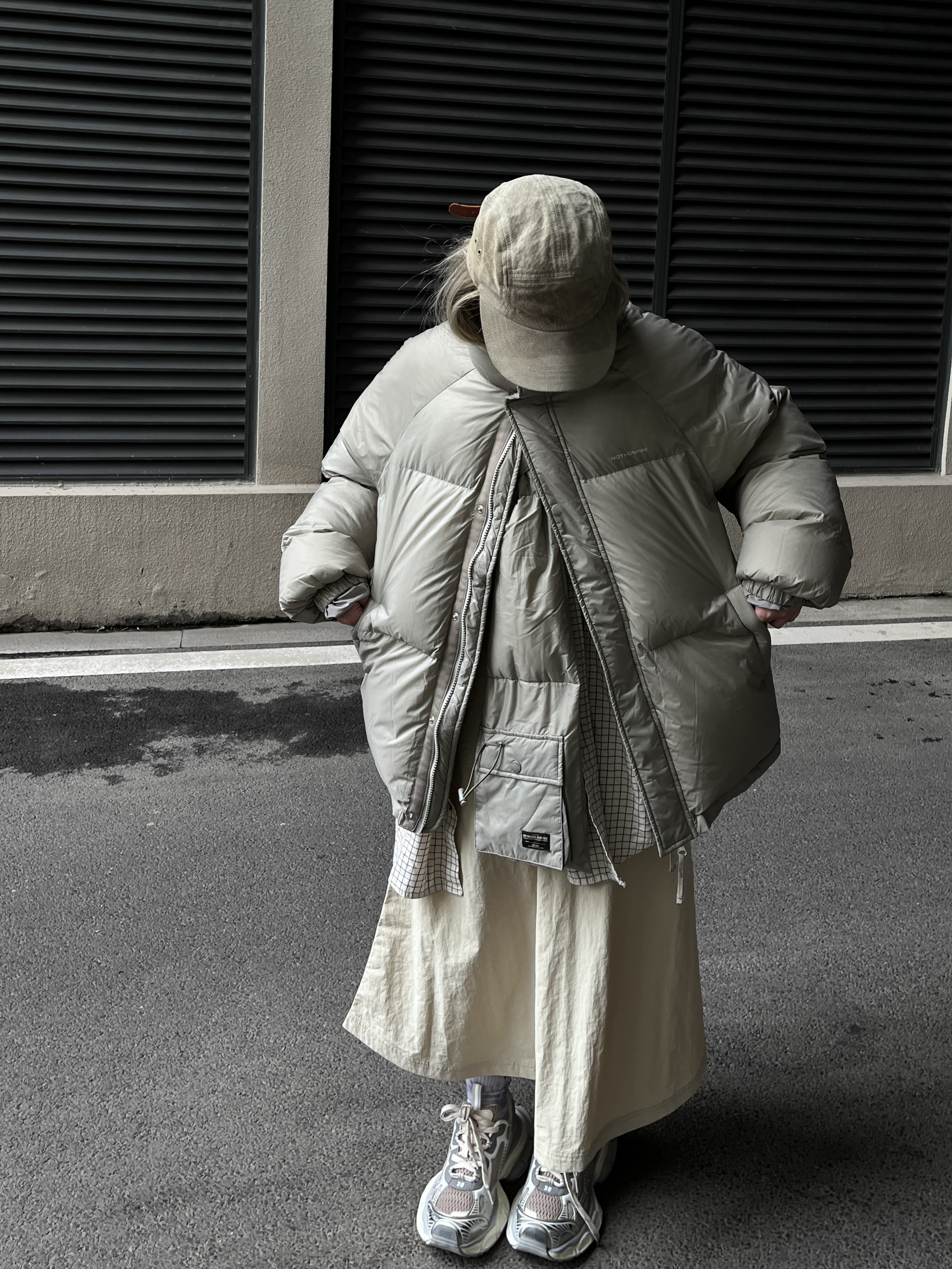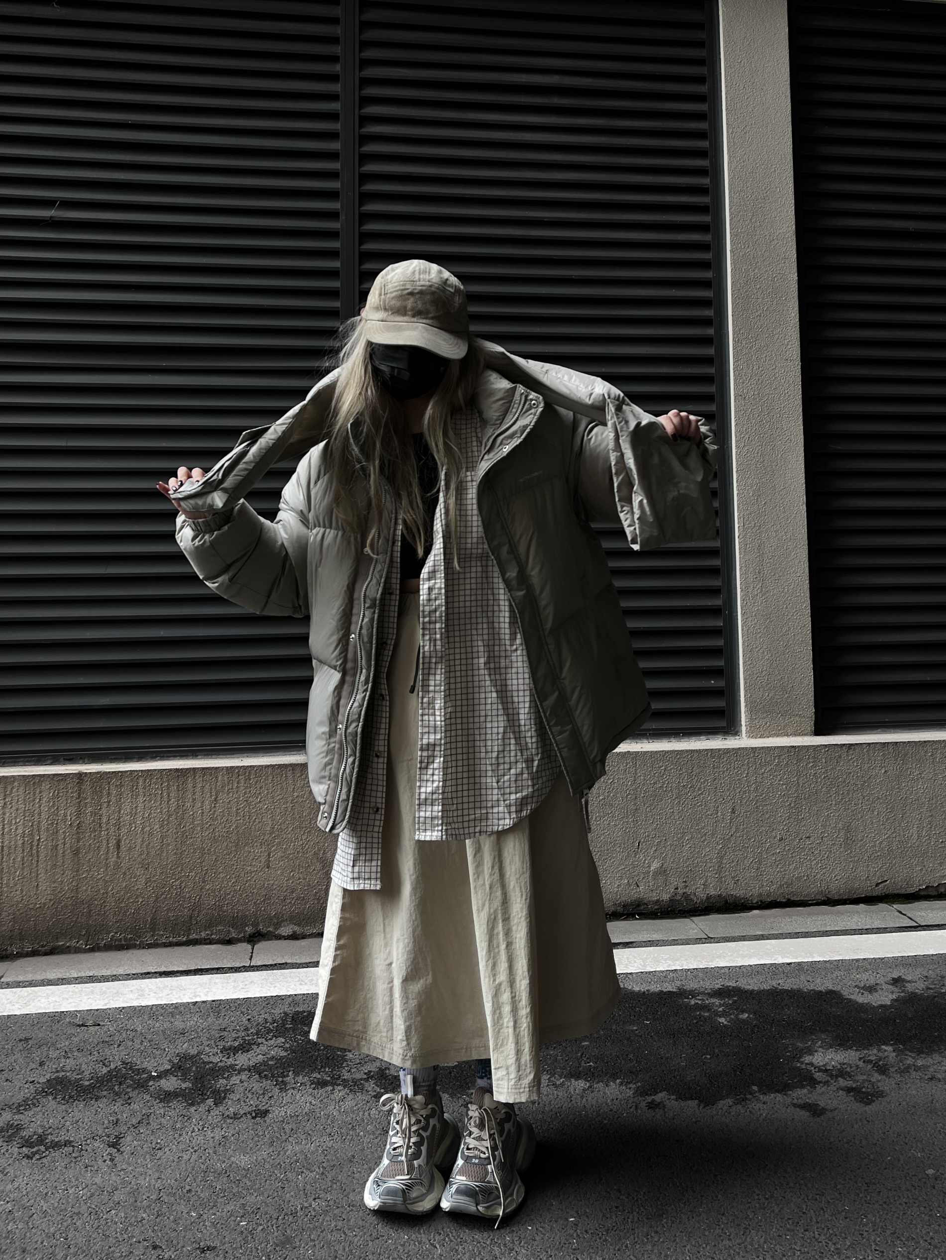 滴滴滴,今天嘴子来分享一套个人 超级满意的秋冬山系Cleanfit穿搭。 杏色山系帽+浅色格子衬衫 十杏色围脖羽绒服 服十米白色伞裙十银色老爹鞋 简约干净舒适的秋冬山系女孩 保暖穿搭就好啦~羽绒服是男女同款的。