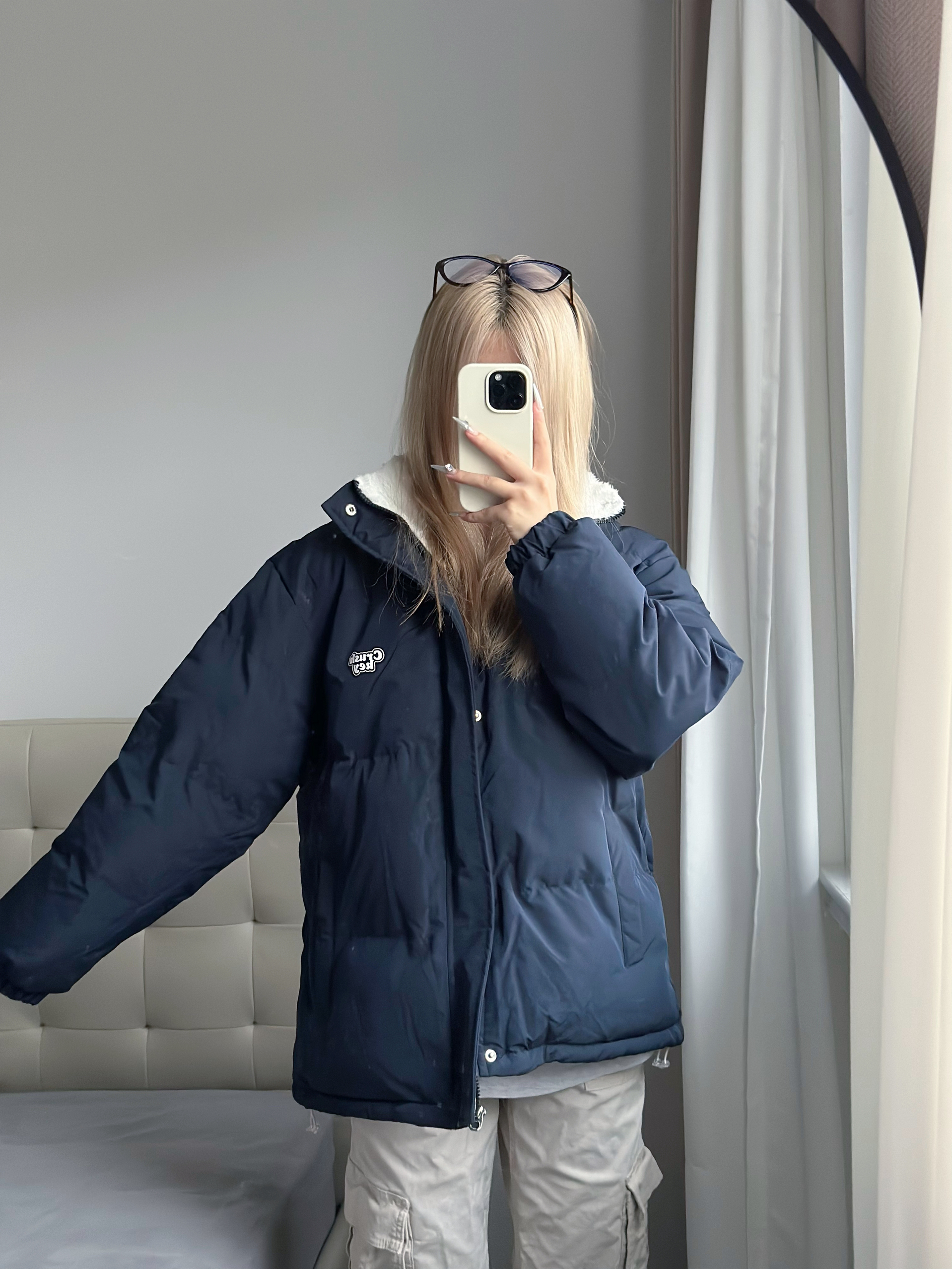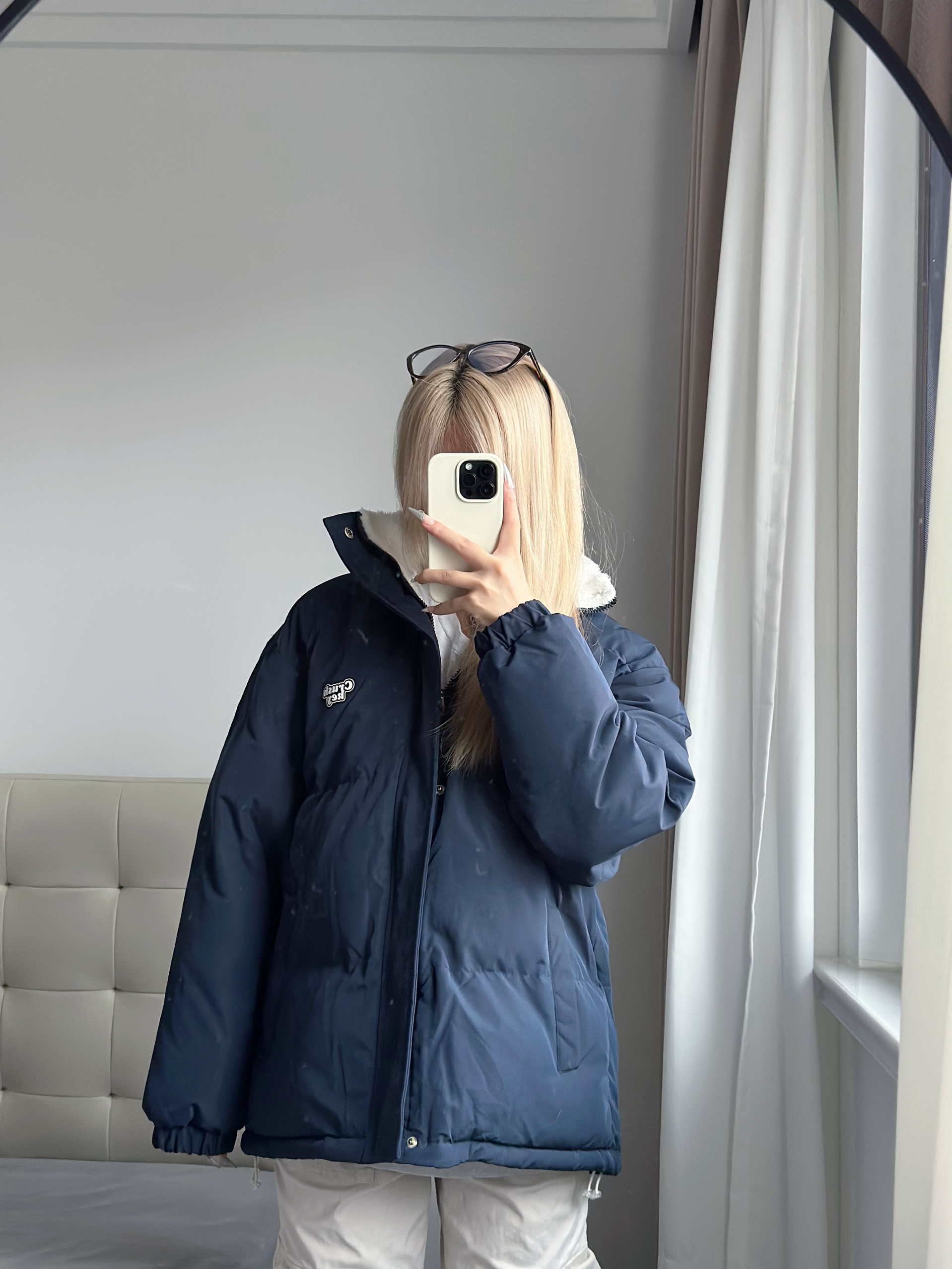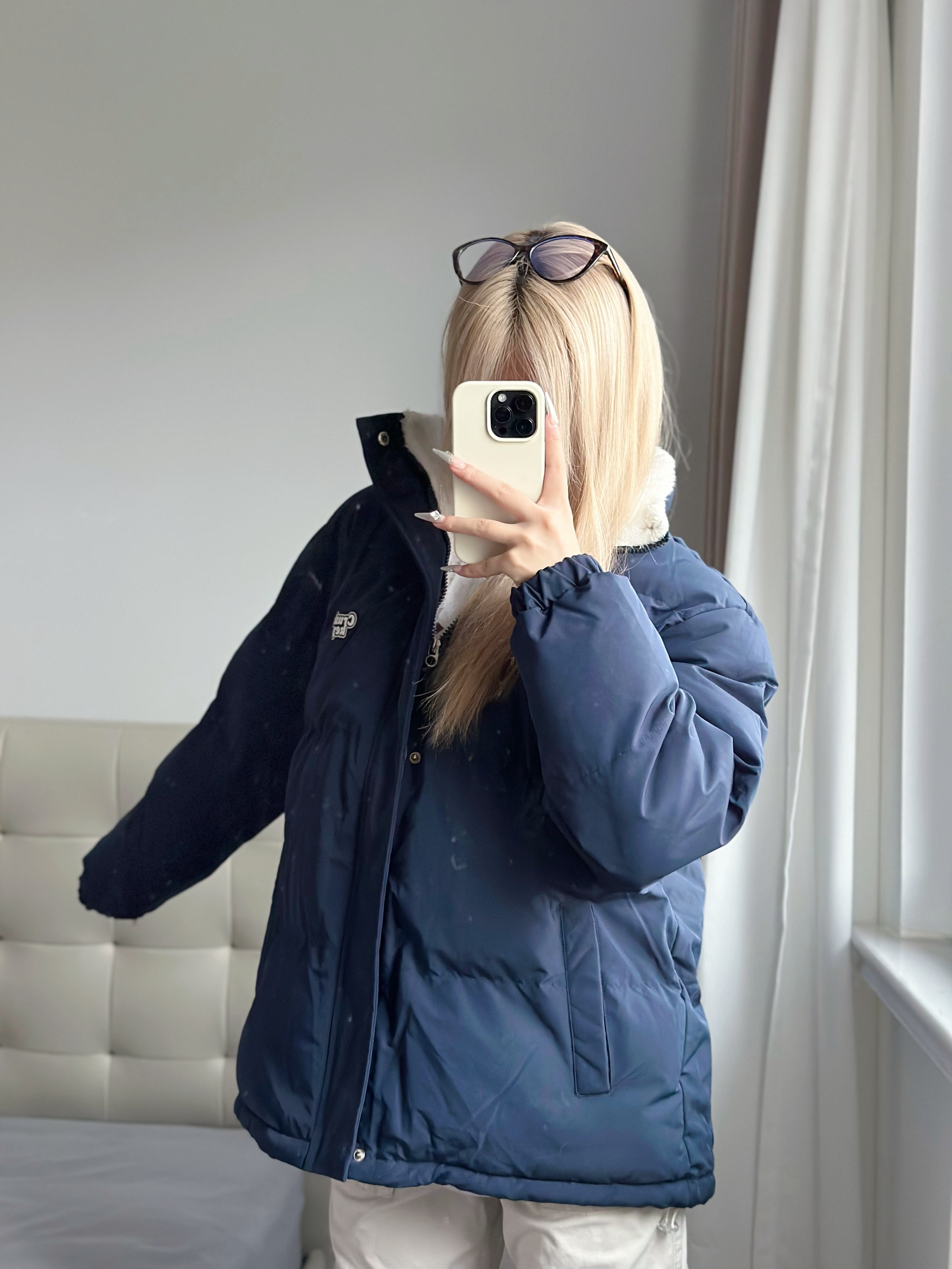 买后悔了!后悔买这么晚! 太好穿了这件! 羊羔绒和棉服的结合超级温暖! 冬天的两大超牛材质相碰撞~🐣 温暖度杠杠的! 有很多颜色可以选择 本大黄皮选择了藏青色! 各位黄皮姐妹速冲!好显白
