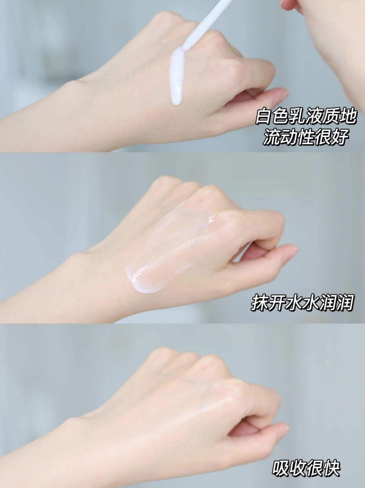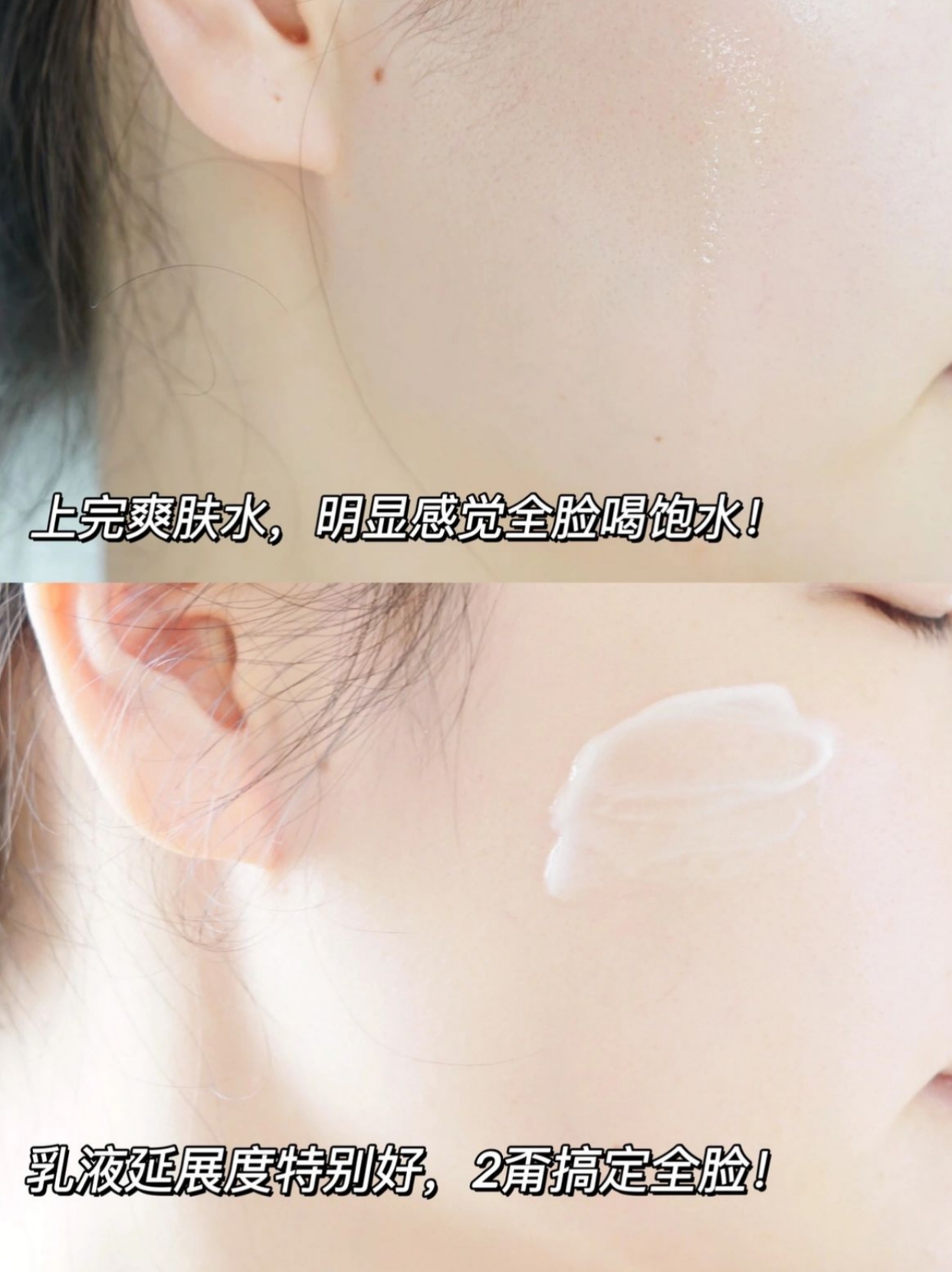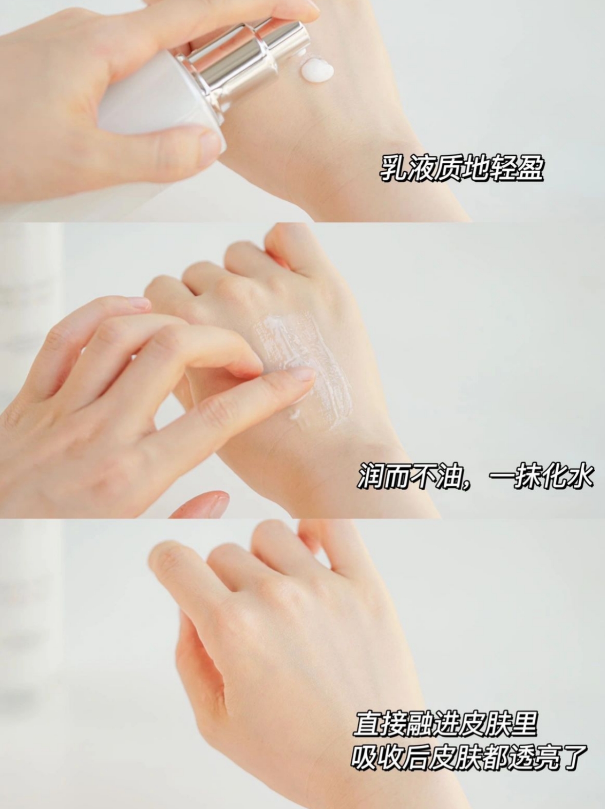 乳液我是放在护肤最后一步,保湿力优秀但又一点不油腻,太适合离不开空调的夏天了!🍃在脸上按摩,可以感觉到皮肤咕噜咕噜吨吨喝水💧然后全脸水嫩清爽到爆。
