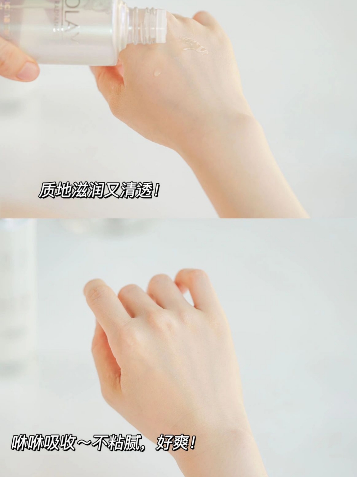 💦水的质地轻薄,保湿舒缓都不错,不像很多有美白功效的化妆水用完很快就紧绷,吸收很不错,我一般都会拍个2-3遍,足够水润,不黏腻,使用感我给99分,少一分怕它骄傲~🧏🏻♀👯♀