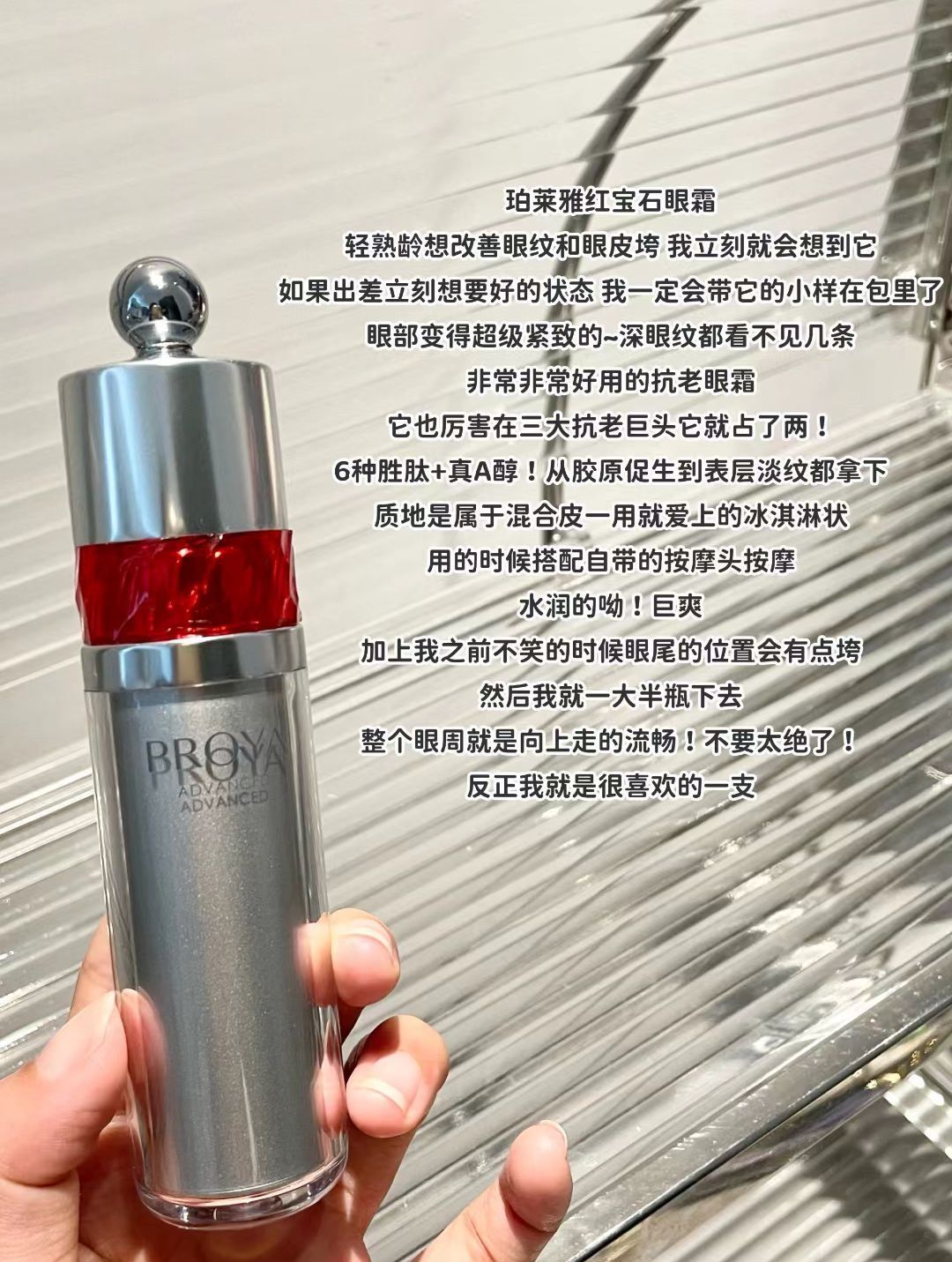 深究一下抗老眼霜怎么选?优中选优一篇看懂 姐妹们!眼周状态不好真的很影响整体颜值每年除了在面霜上投入比较多之外 就是抗老眼霜了! 每款侧重点和适合人群都不一样 - 珀莱雅红宝石眼霜💎 适合人群:眼部有细纹的,眼皮松垮的姐妹 雅诗兰黛小棕瓶眼霜💎 适合人群:常年面对电脑,喜欢熬夜玩手机的姐妹 盼丽风姿眼霜💎 适合人群:熟龄肌,眼部干、冬天眼周起皮的姐妹 娇韵诗凝时眼霜💎 适合人群:熟龄肌,眼部出现皱...