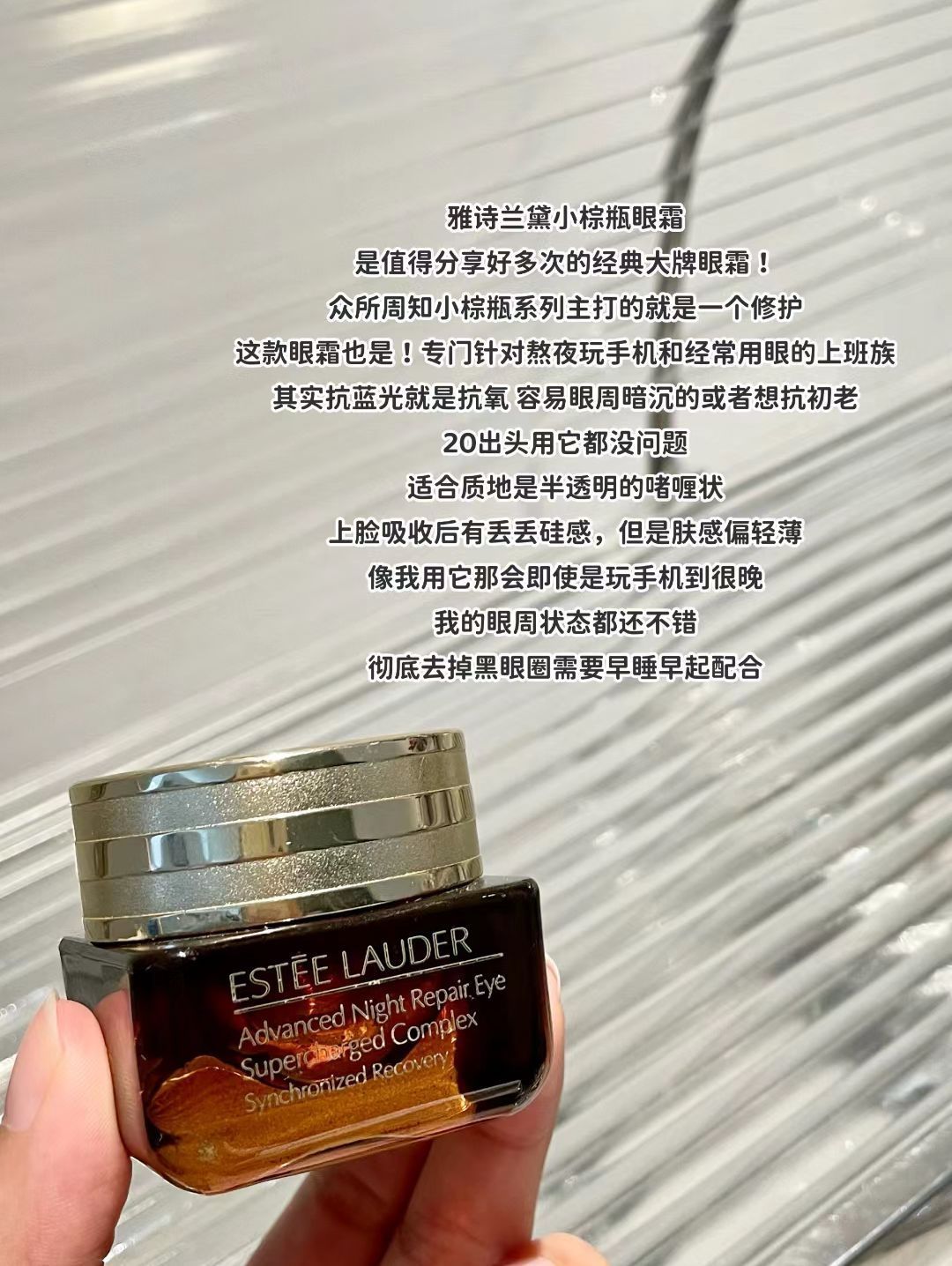 本篇笔记关联了Estee lauder/雅诗兰黛 小棕瓶熬夜眼霜 保湿抗皱淡化黑眼圈紧致提亮特润 第四代、Shiseido/资生堂 盼丽风姿智感抚纹抚痕眼霜 保湿提拉紧致淡细纹 15ml、HR/赫莲娜 保湿滋润护肤套装 黑绷带面霜50ml+新肌底精华眼霜15ml等商品,为用户提供真实的使用体验和购买参考。