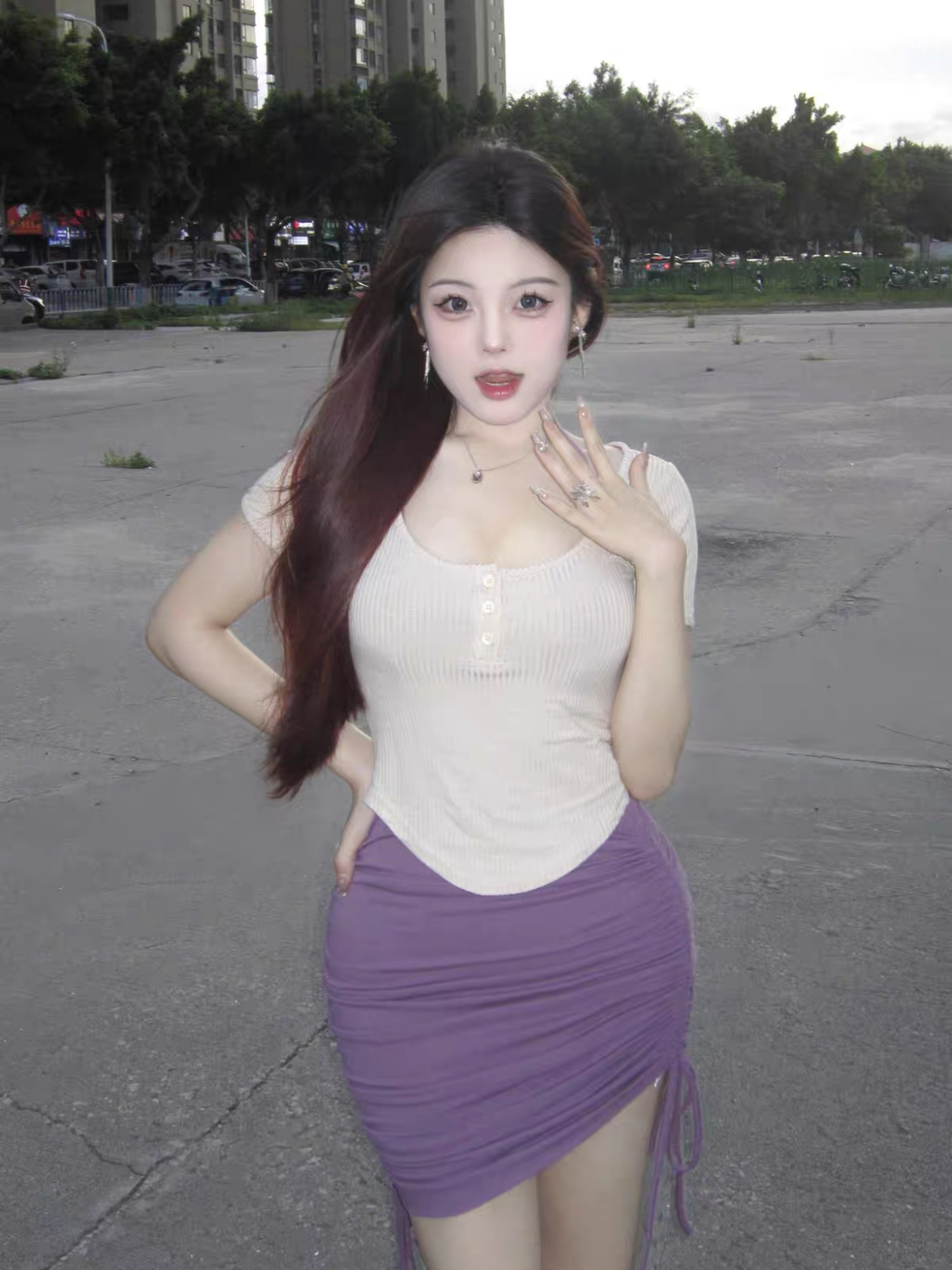 这条裙子很显瘦而且遮肚子小腹,非常好看,外面的小上衣显腰细,去玩直接穿上了,感觉很米,要把两边的绳子调到适合自己的位置,建议短一点,不会走光滴,建议女孩子穿短裙都穿安全裤,这样更稳妥,反正我穿着走路爬楼梯没有往上跑。浪漫的葡萄紫,我真的很喜欢! (图片来自网络,侵删)