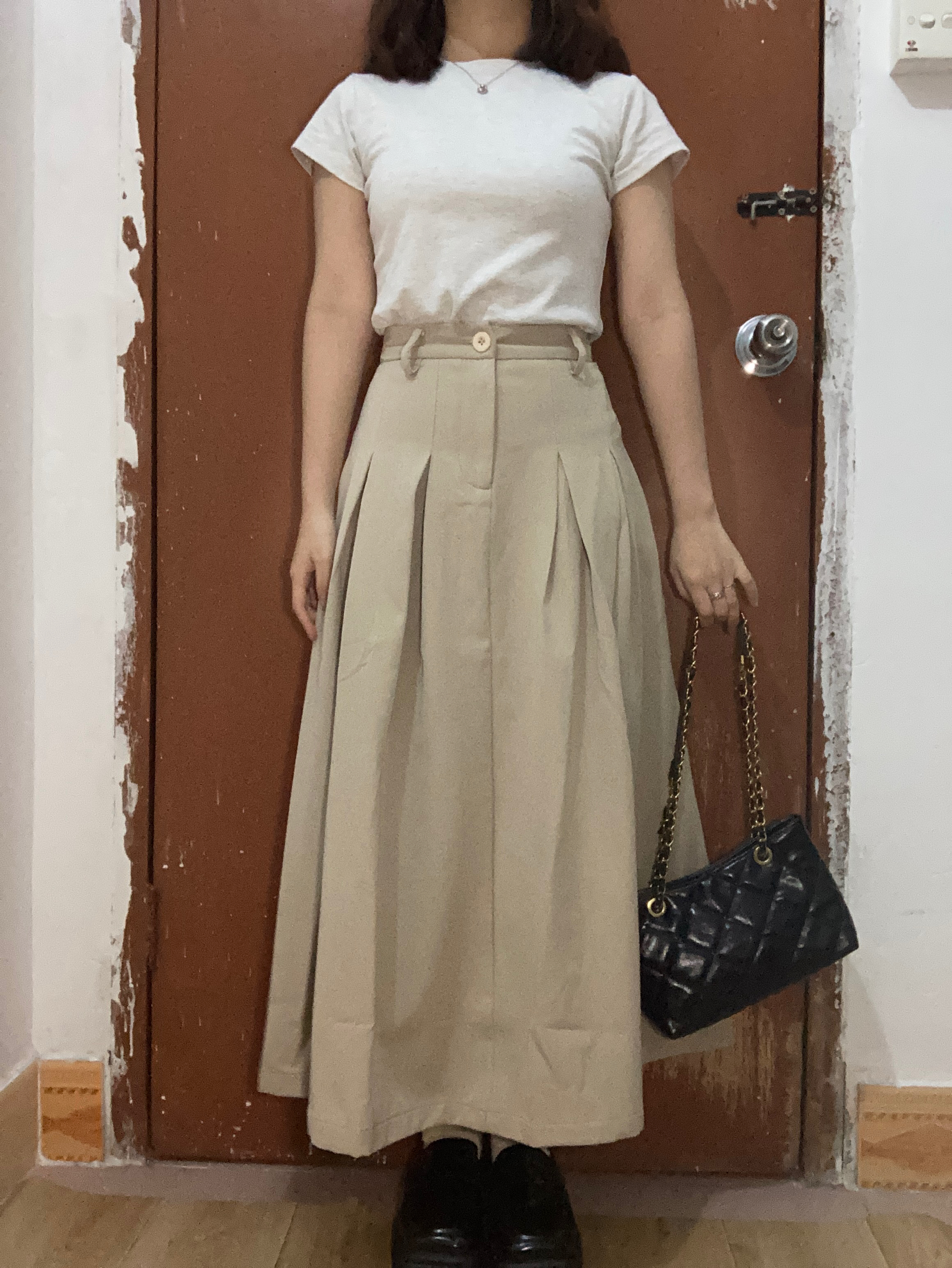 身高|体重:154|90 🧍♂️ 穿搭风格:今日份适合早春的氧气感穿搭☁️ 👔 上衣:灰色纯色t恤上衣 👖 下装:卡其色百褶半身裙 👟 鞋子:小皮鞋 今日份适合早春的氧气感穿搭☁️灰色纯色t恤上衣➕卡其色百褶半身裙🩰温柔气质拿捏啦~日常中又带点精致感🪞通勤约会时小个子女生这样穿不会出错~