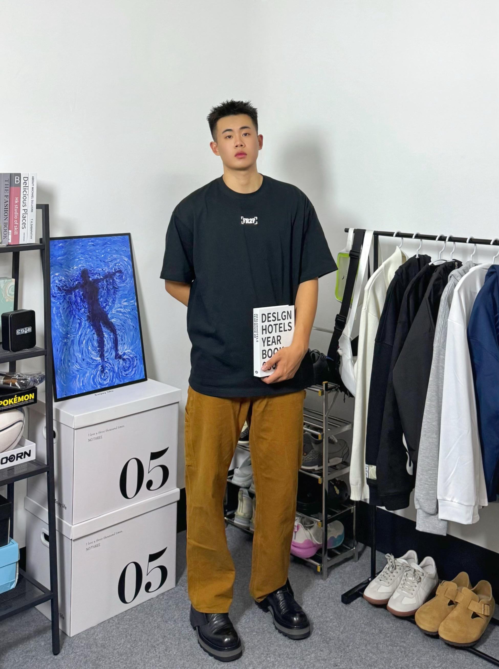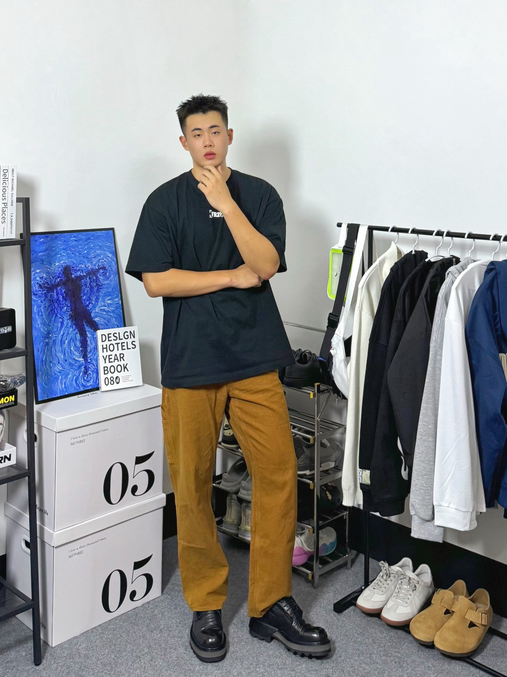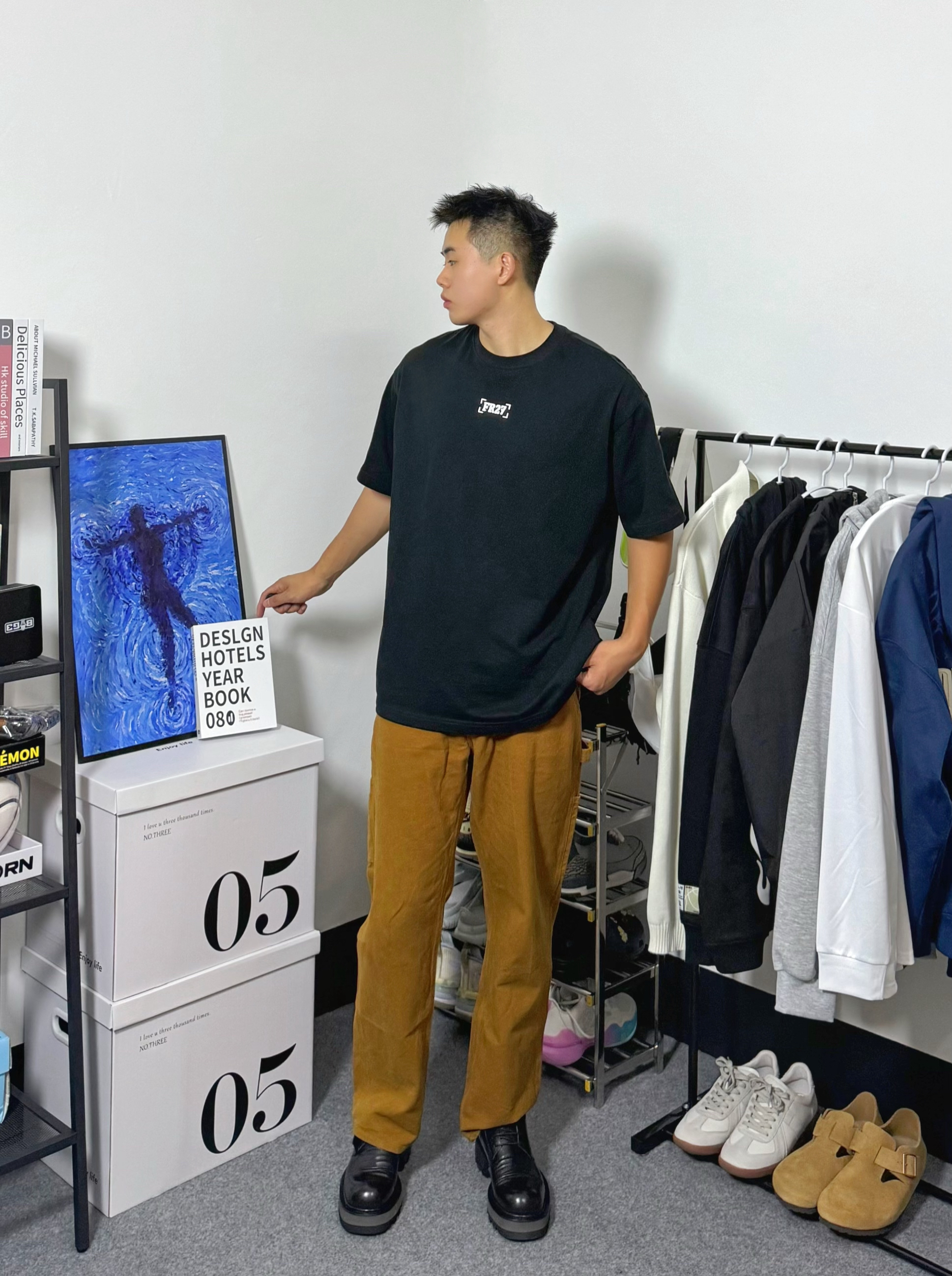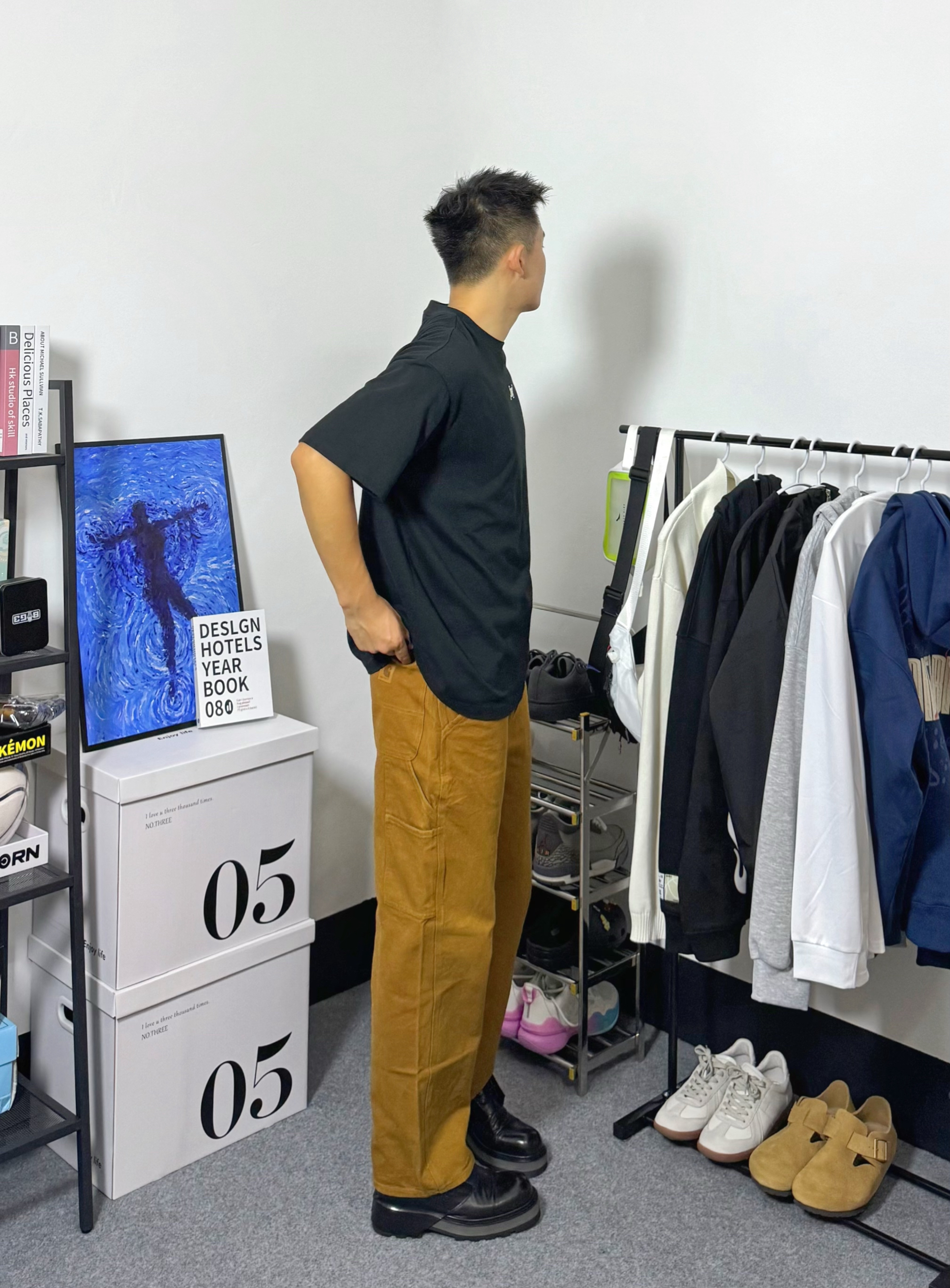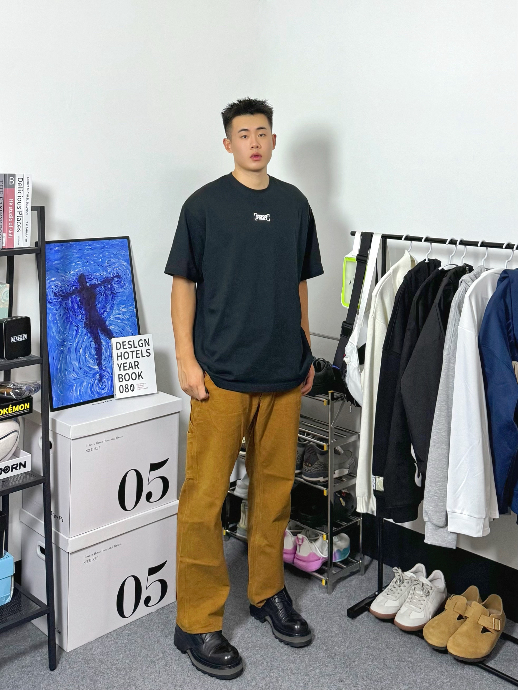 分享今日穿搭,上身一件字母印花短袖,黑色宽松版型,搭配一件卡哈特卡其色工装裤,一双德比鞋,颜色呼应协调,喜欢的朋友们可以参考一下。