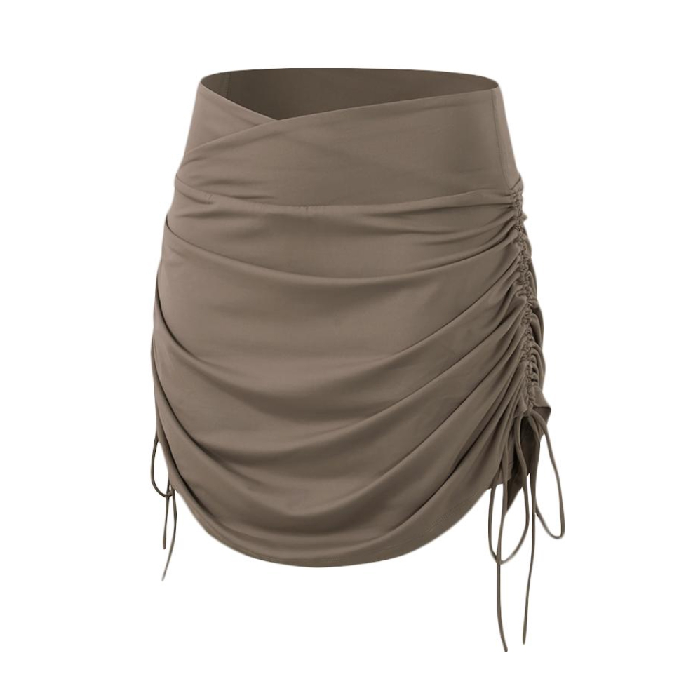 你们要的上身图来了🚨 两边抽拉绳褶皱,更有效的遮住小肚子 腰部的交叉设计会让腰线从视觉上更瘦 涤纶的,弹力很大,速干💡 里面是裤子,所以不用担心哈 我觉得已经很显瘦了🔋 说实话,我不咋穿膝盖以上的裙子 这个不仅可以跑步穿,平时穿也很可