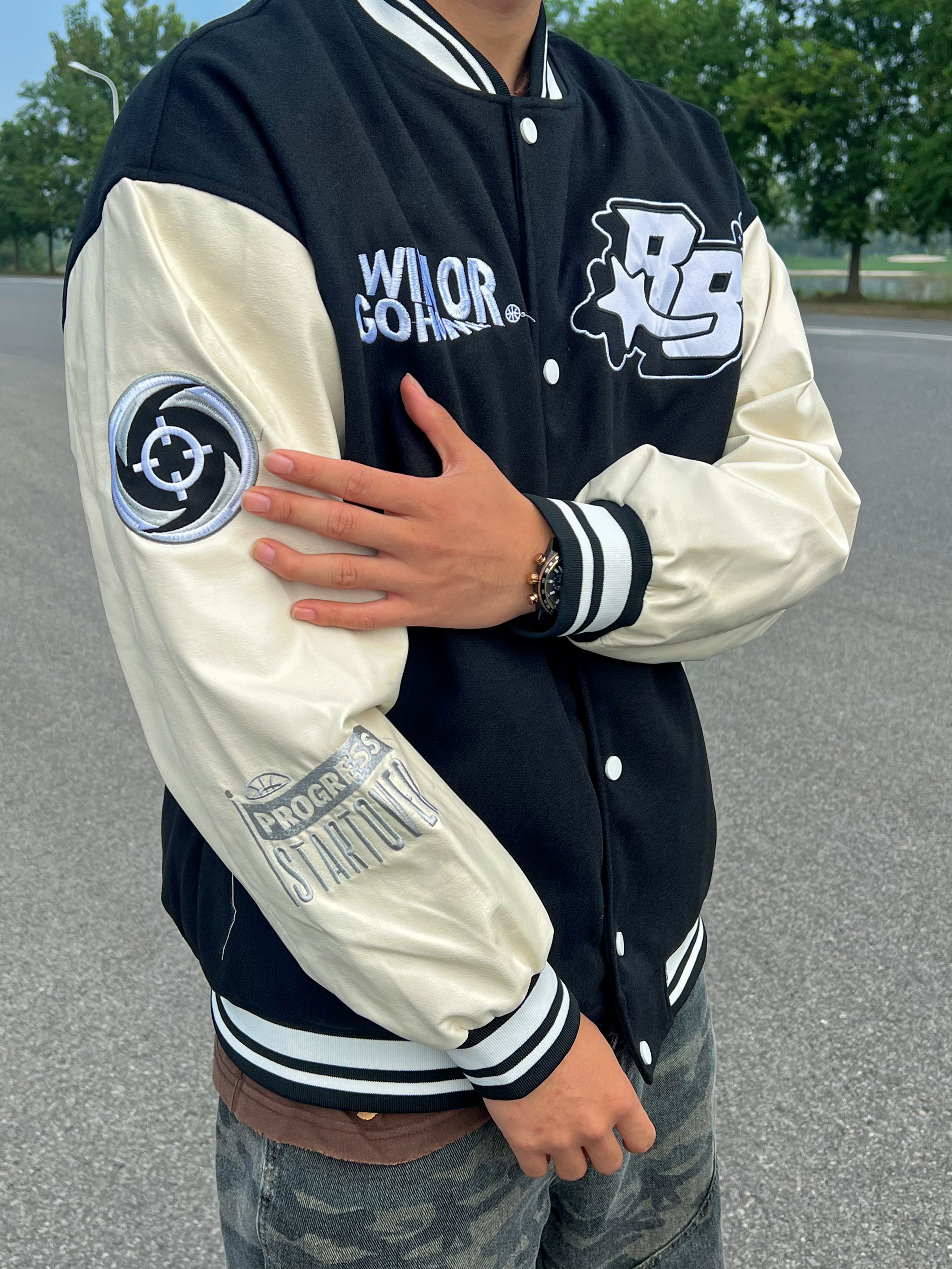 夏天已经渐渐过去 大家都开始入新外套了 青春活力的外套还得是棒球服 今天带来的这款准者里夫斯棒球服 衣服上的重工立体刺绣图案很街头潮流 皮革和呢子的拼接面料耐穿又保暖 撞色宽松的设计上身更加好看 这样的一款棒球服你一定得入一件!