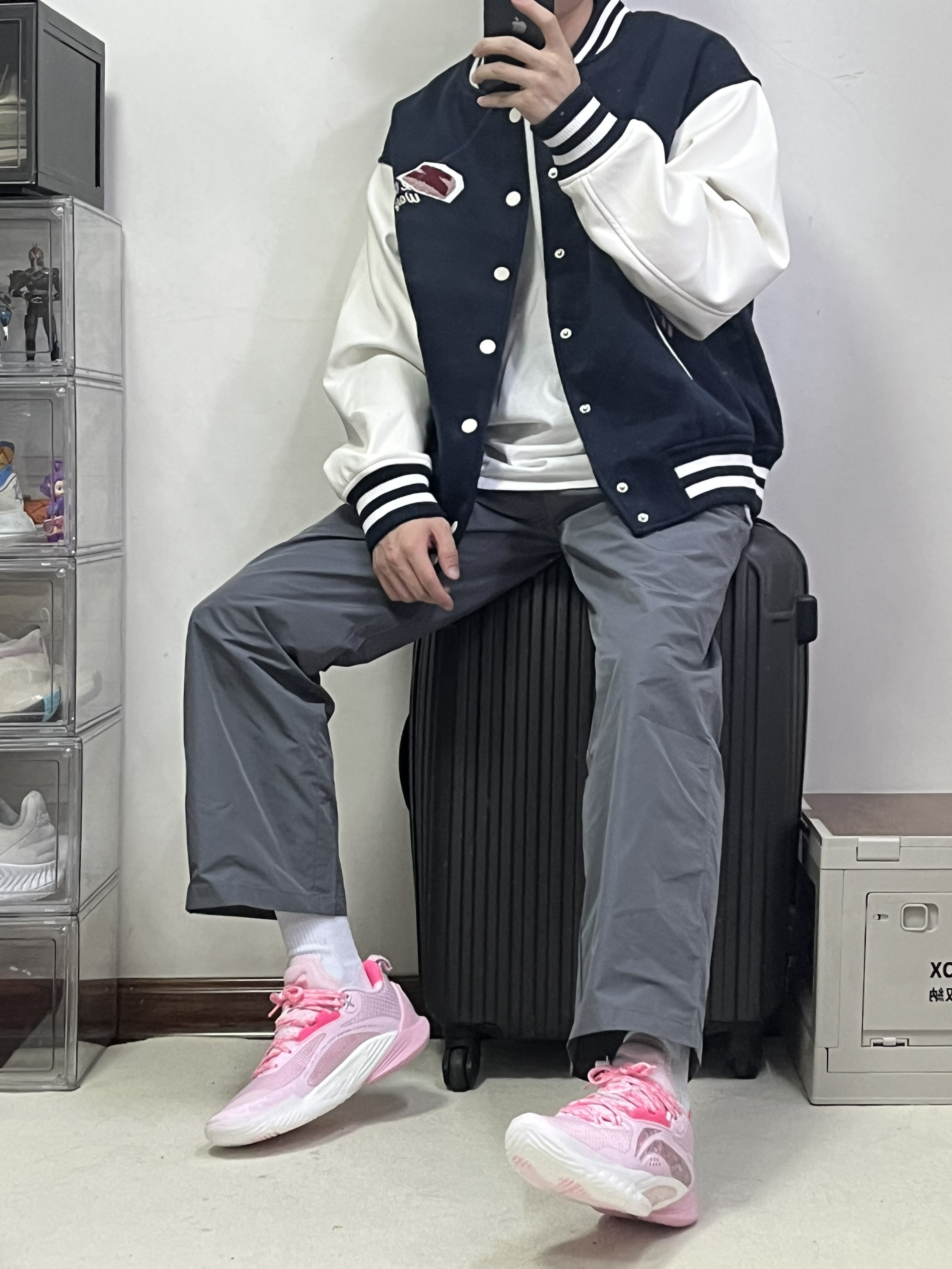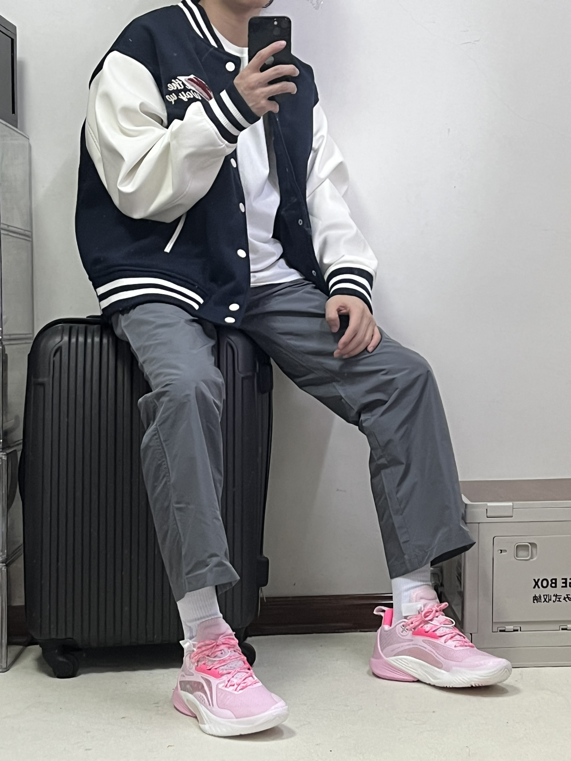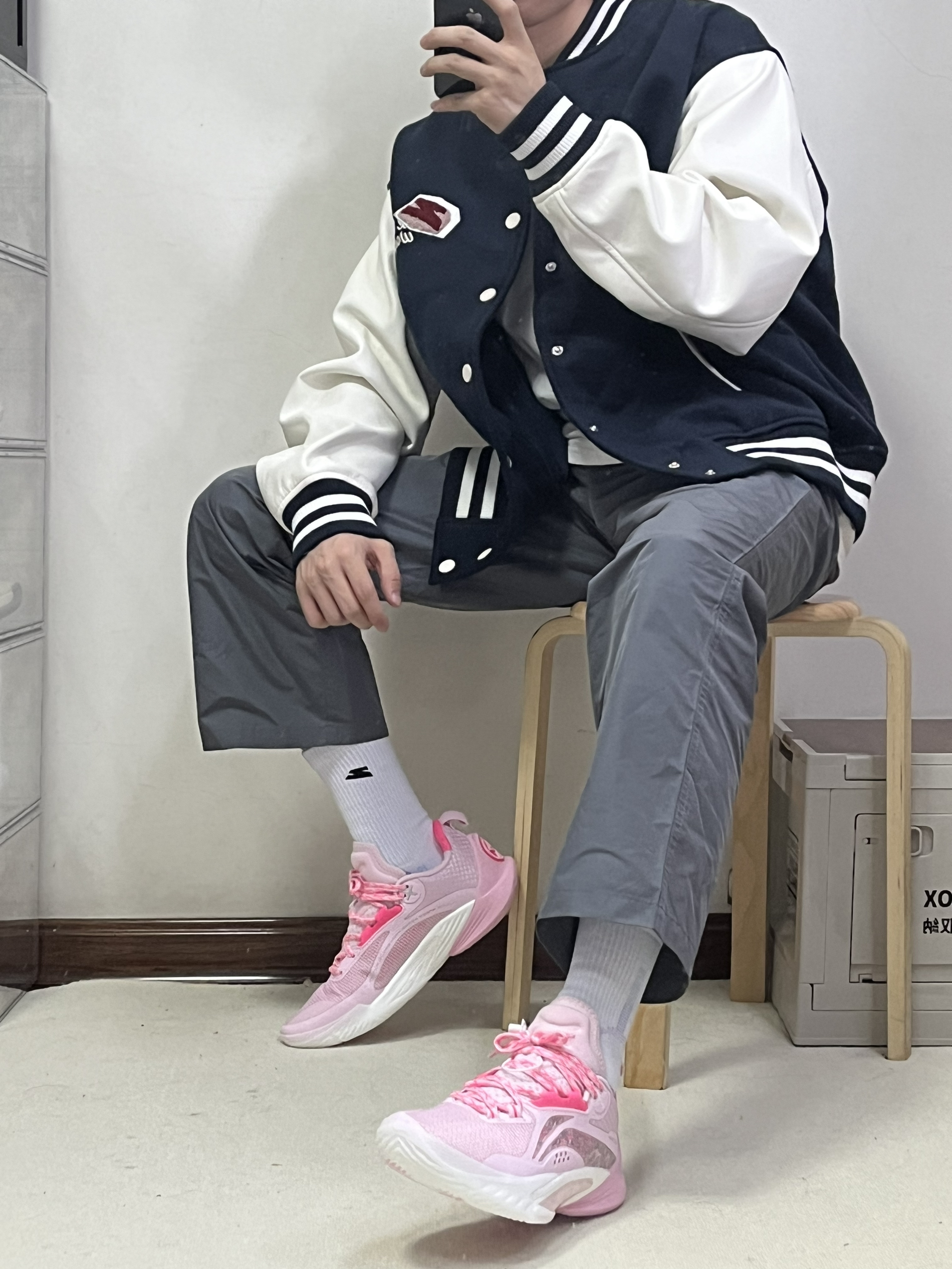 这双闪击10的设计 一改以往 第一时间都没认出来是闪击系列 中底配置也是迎来了升级 变成了全掌䨻+内嵌tpu 粉色为主色调+白色点缀 颜色十分亮眼 搭配上一件美式棒球服 一件直筒裤 这样一身上街也是OK的