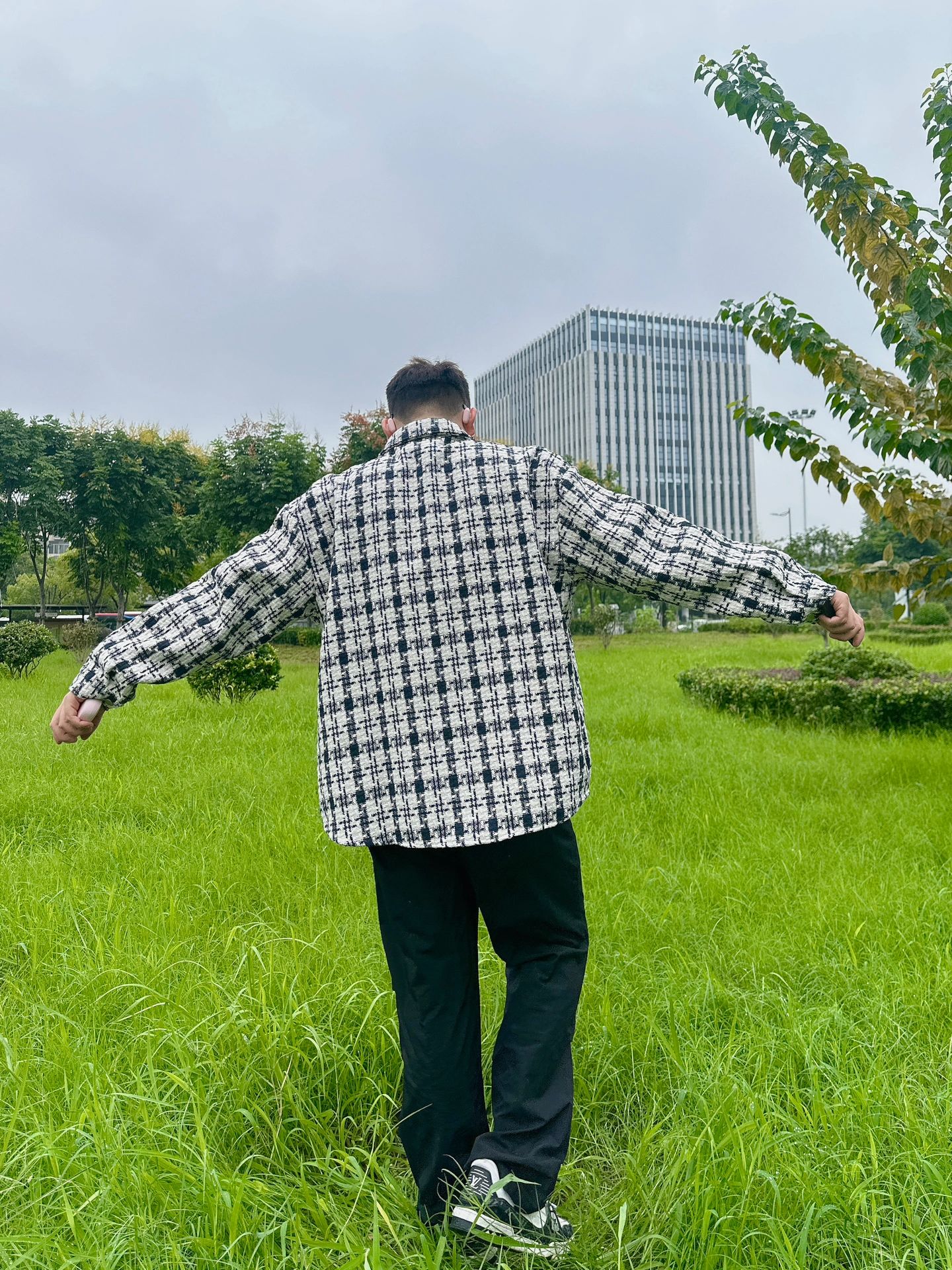 📍经典大气,格调和品味永不过时~自带复古腔调的设计真的太容易俘获人心了❤️ 💭面料非常显高级,版型设计超好看!选用黑白混色粗花呢纱线编制而成,别致不浮夸,注入了经典小香风街潮活力!oversize版型 挺阔 潮流完全在线👍🏻 💡内搭圆领卫衣简约而不失高级感~显瘦的同时还能修饰身材 ▶️一件外套搞定各种穿搭场景,秋季男友力满满的氛围感穿搭get👌 (图片来自博主:臭美王)