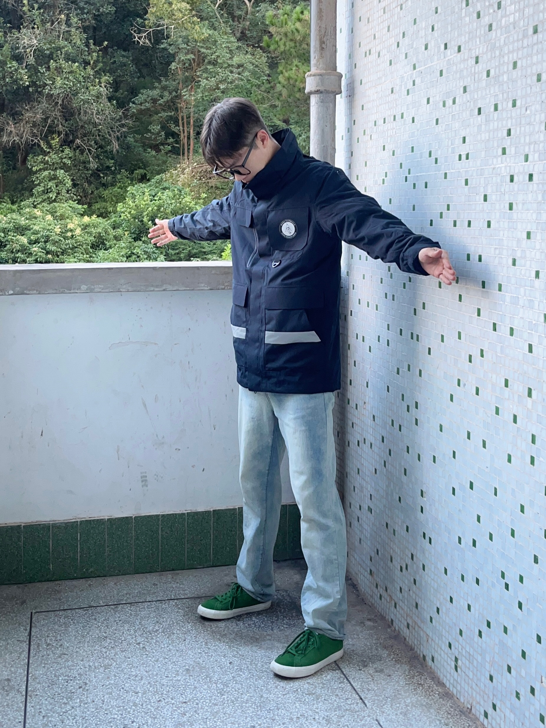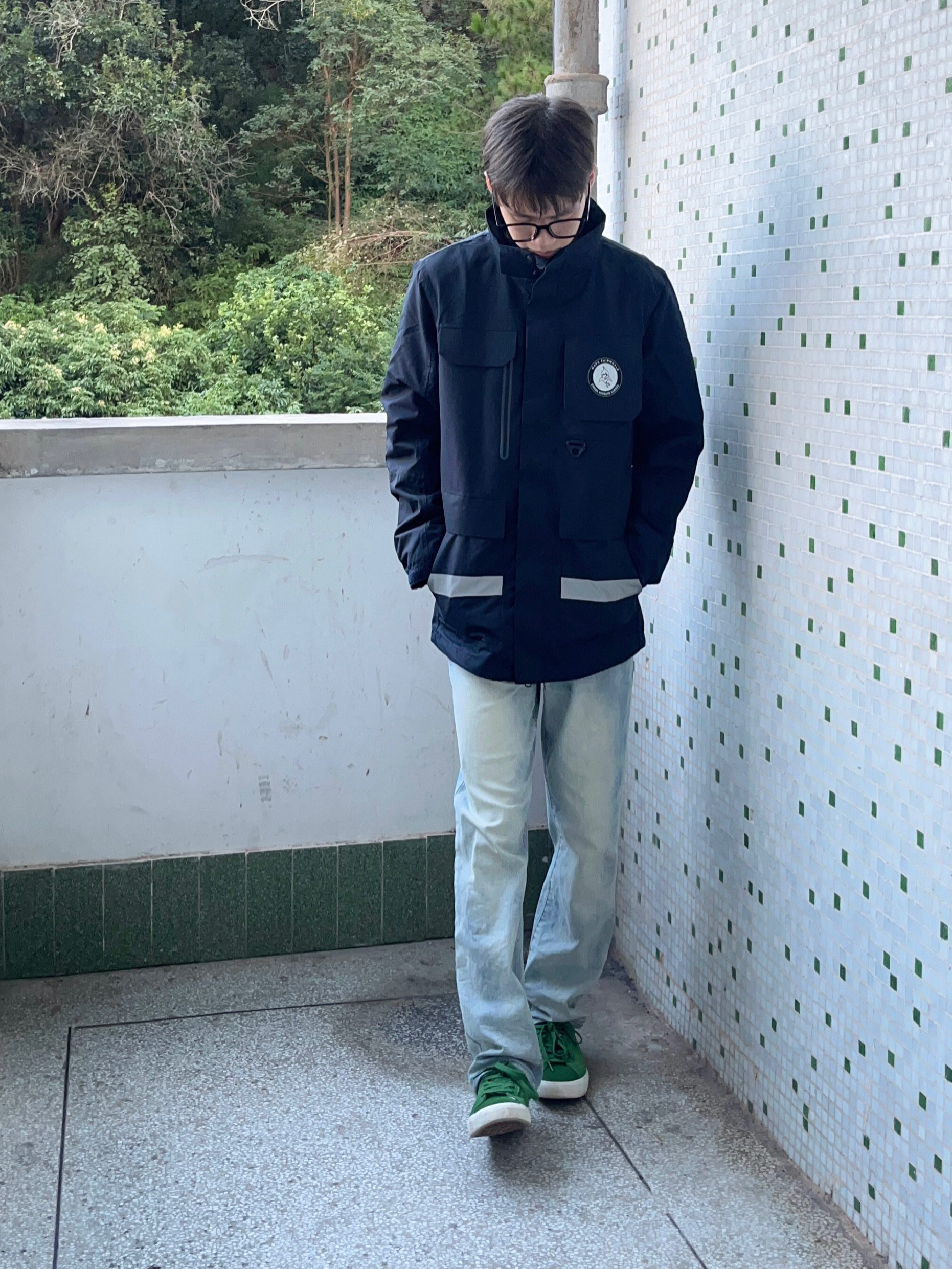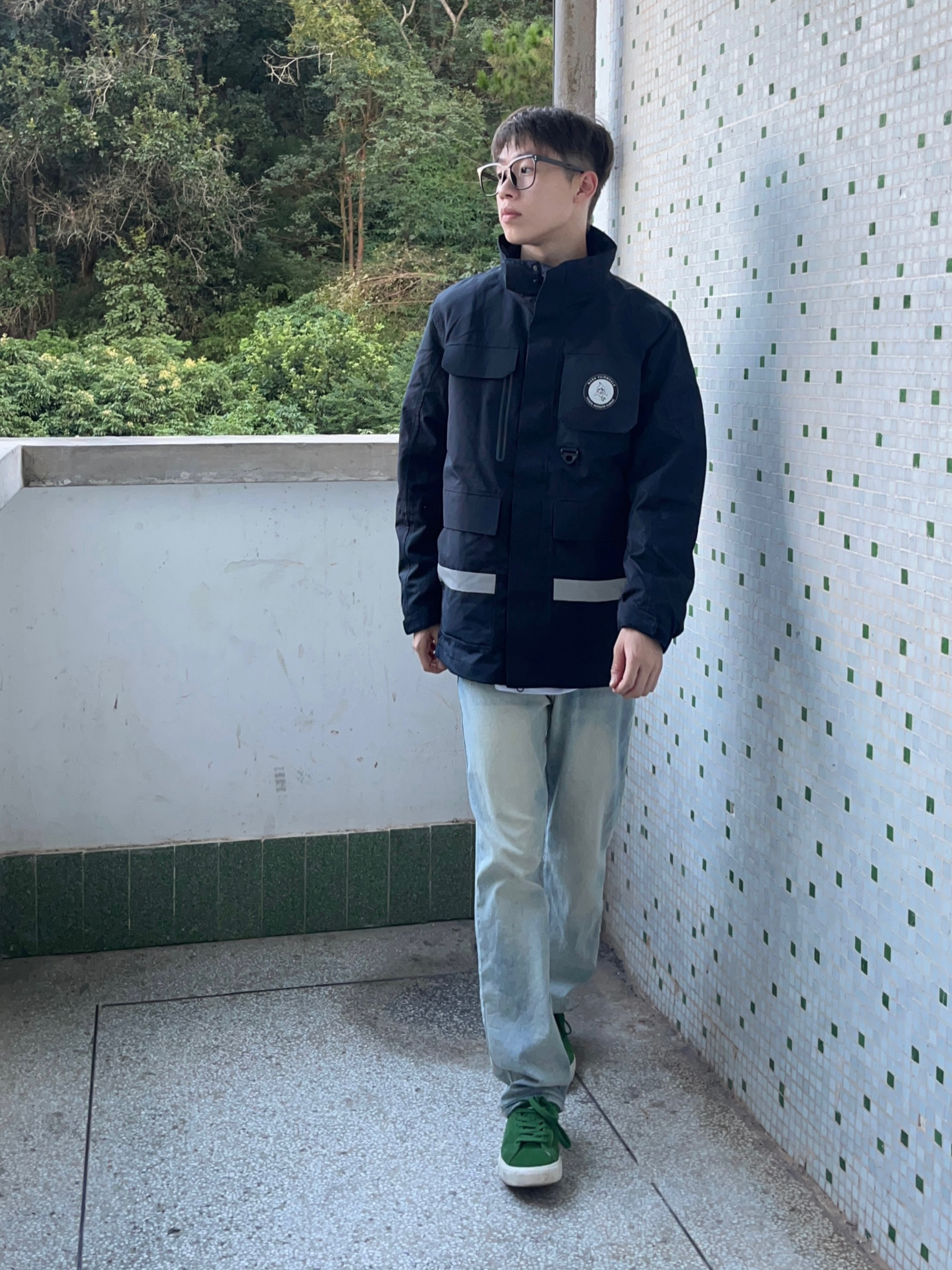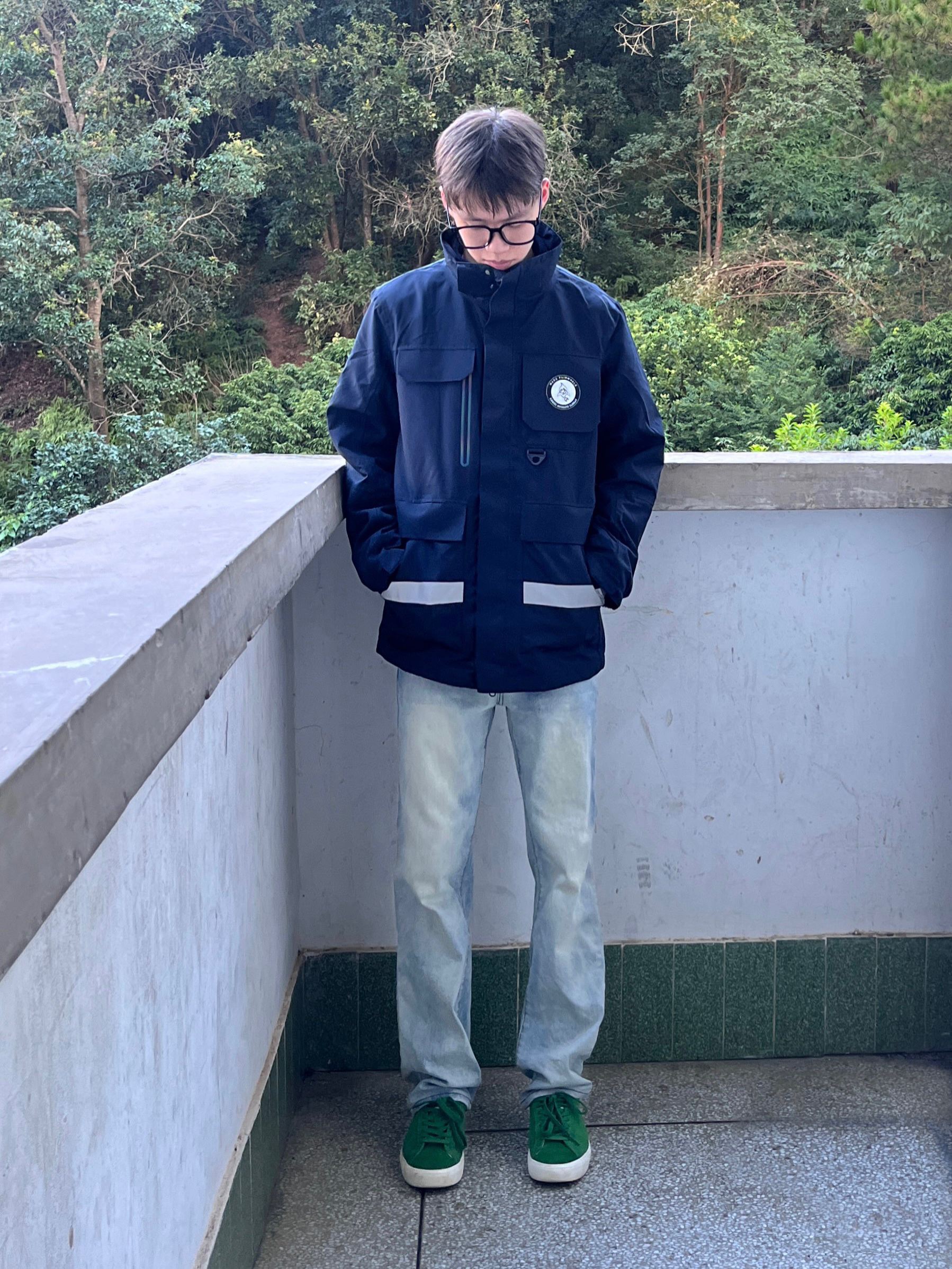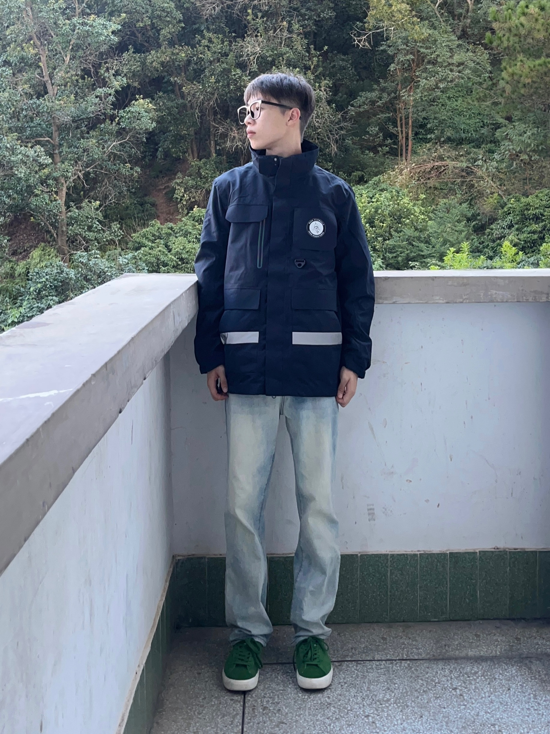 马克华菲/FAIRWHALE 家的这款藏青色冲锋衣有点帅啊我说 颜值简约时尚 防水防污防风效果都很棒 袋盖式口袋设计非常独特 版型宽松舒适 穿上后户外工装风拉满 再搭配上一条黄泥色牛仔裤和一双森林绿板鞋点缀 一套下来 百搭又好看 非常适合户外运动穿搭
