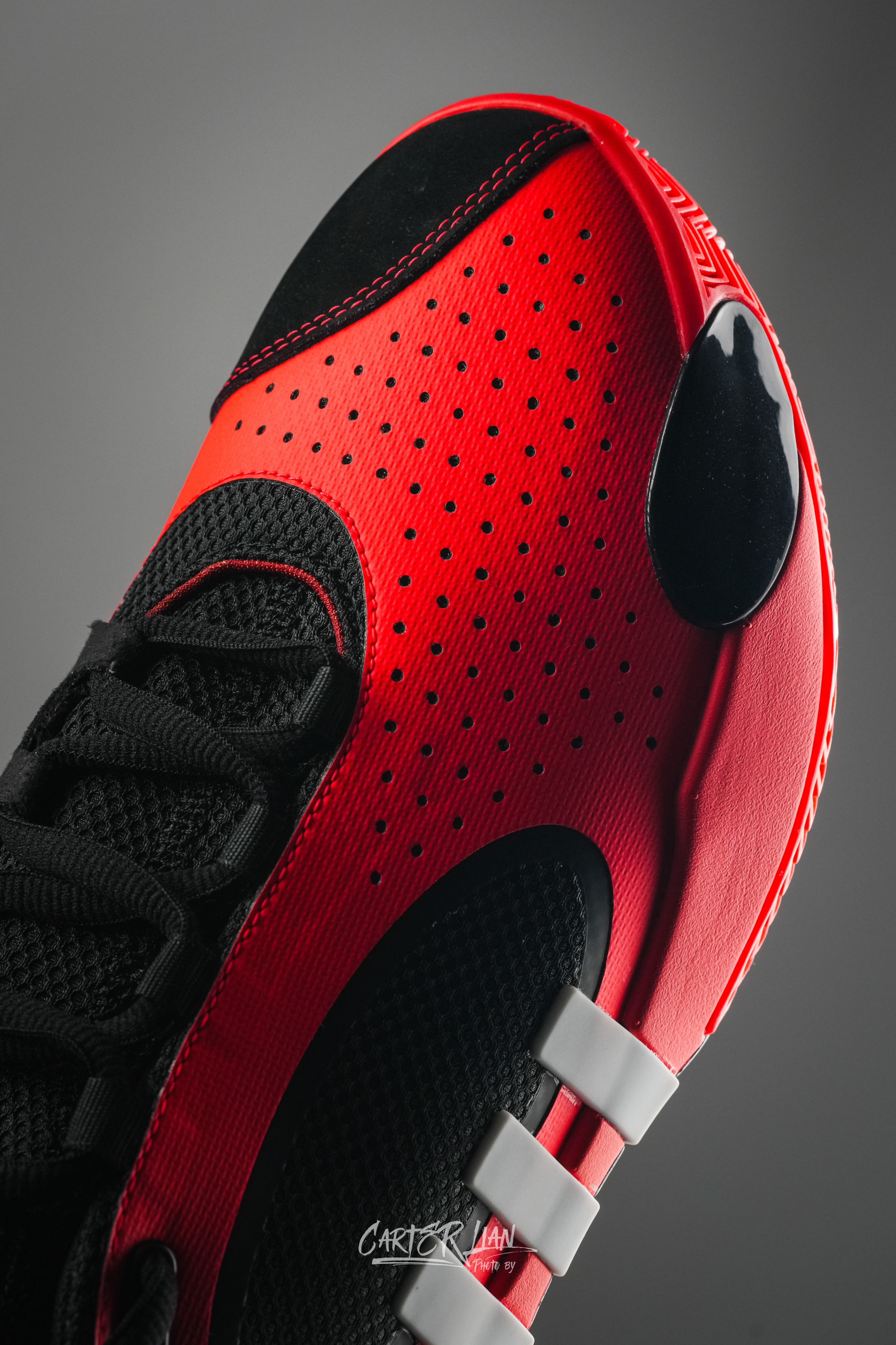 在全明星的时候已经曝光过的米切尔5代的样品,然后在中国行期间也是上脚了这双D.O.N Issue 5,这次应该会先发5个配色,这双暗夜蛛影真的是帅到我了。 拿到实物第一个感觉就是真的太像蜘蛛侠的战衣了,黑红配色和侧边椭圆网格材质结合中底处的三道杠的TPU支撑条很好的诠释了米切尔蜘蛛侠的外号。 鞋子这次配置上也是进行了升级全掌是LIGHYSTTIKE的框架搭配LS STROBLE提升缓震回弹,鞋...