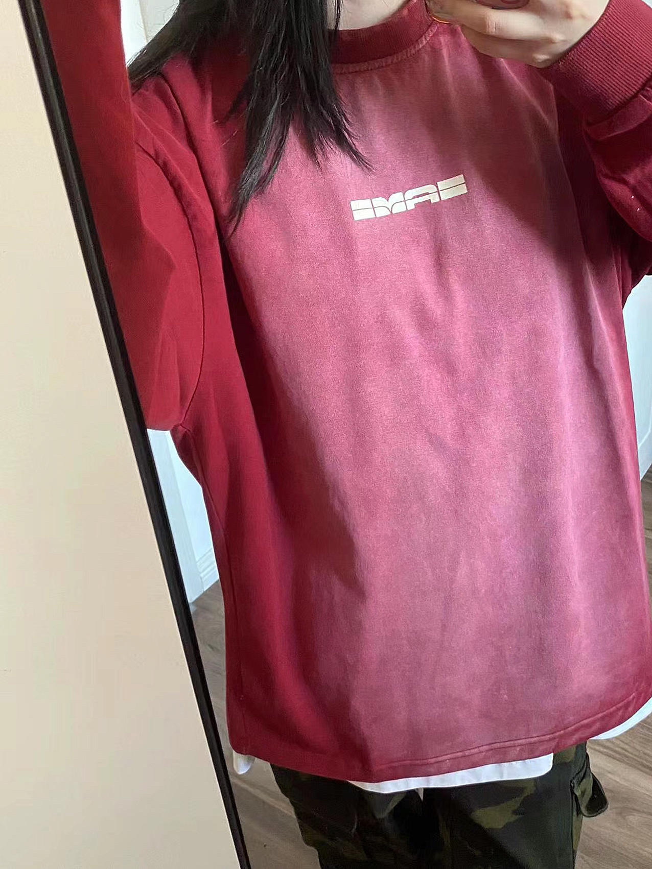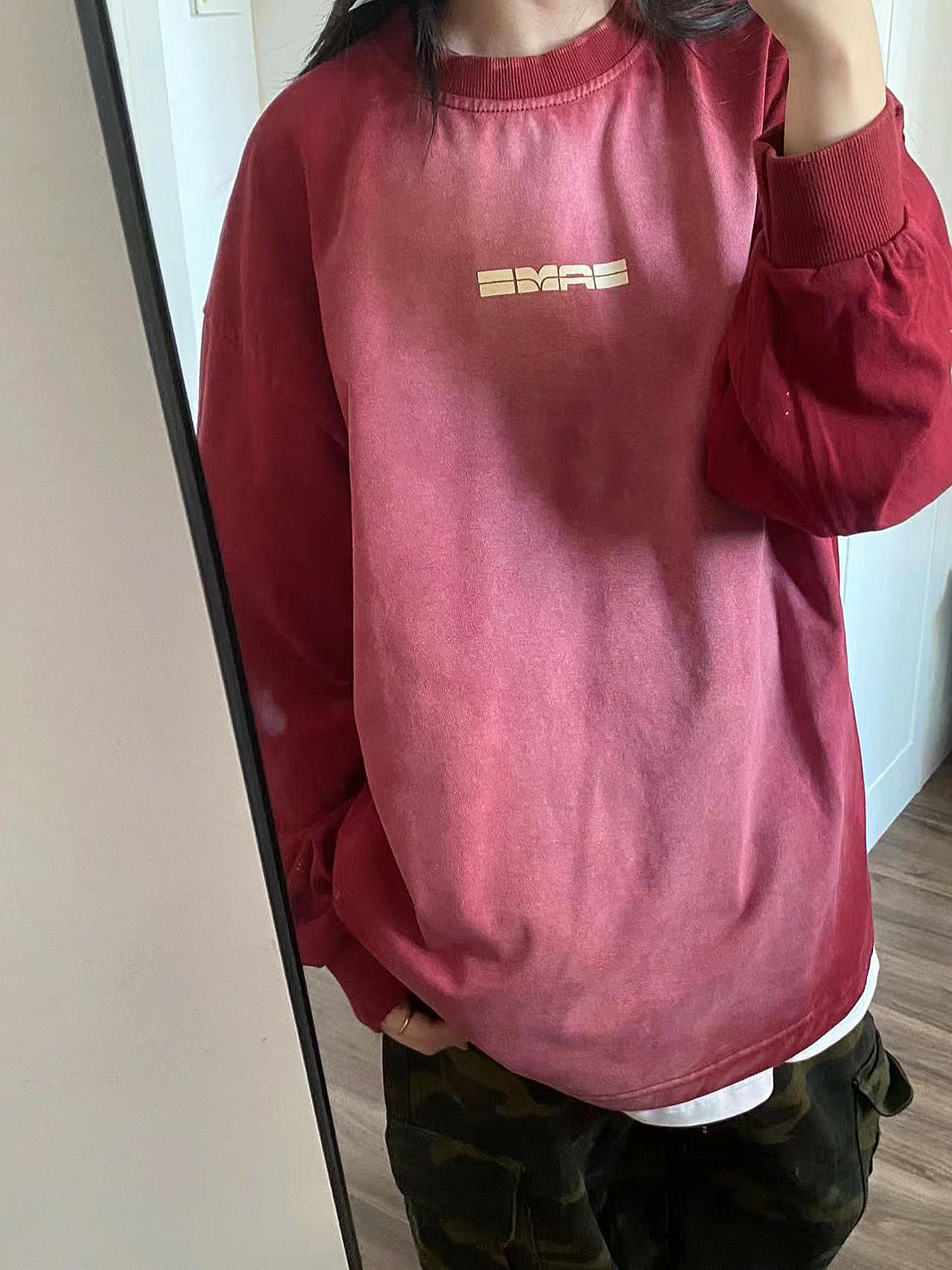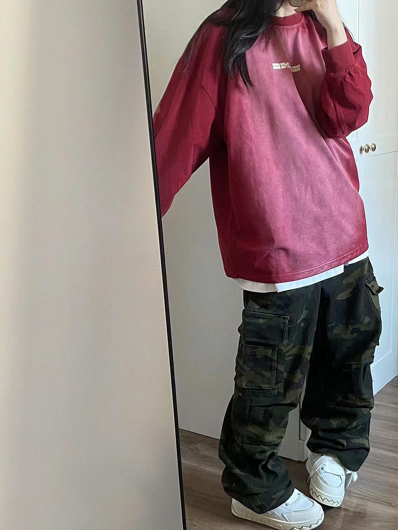【🎯红色oversize➕迷彩工装裤 有点帅啊!!】,由用户 再说吧- 分享,来自广东。这是一篇来自识货社区的真实用户分享笔记。