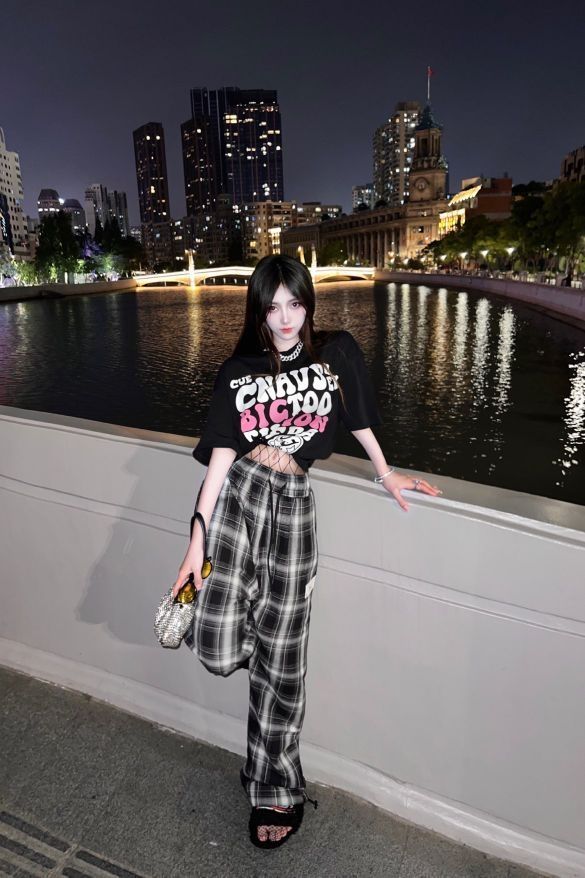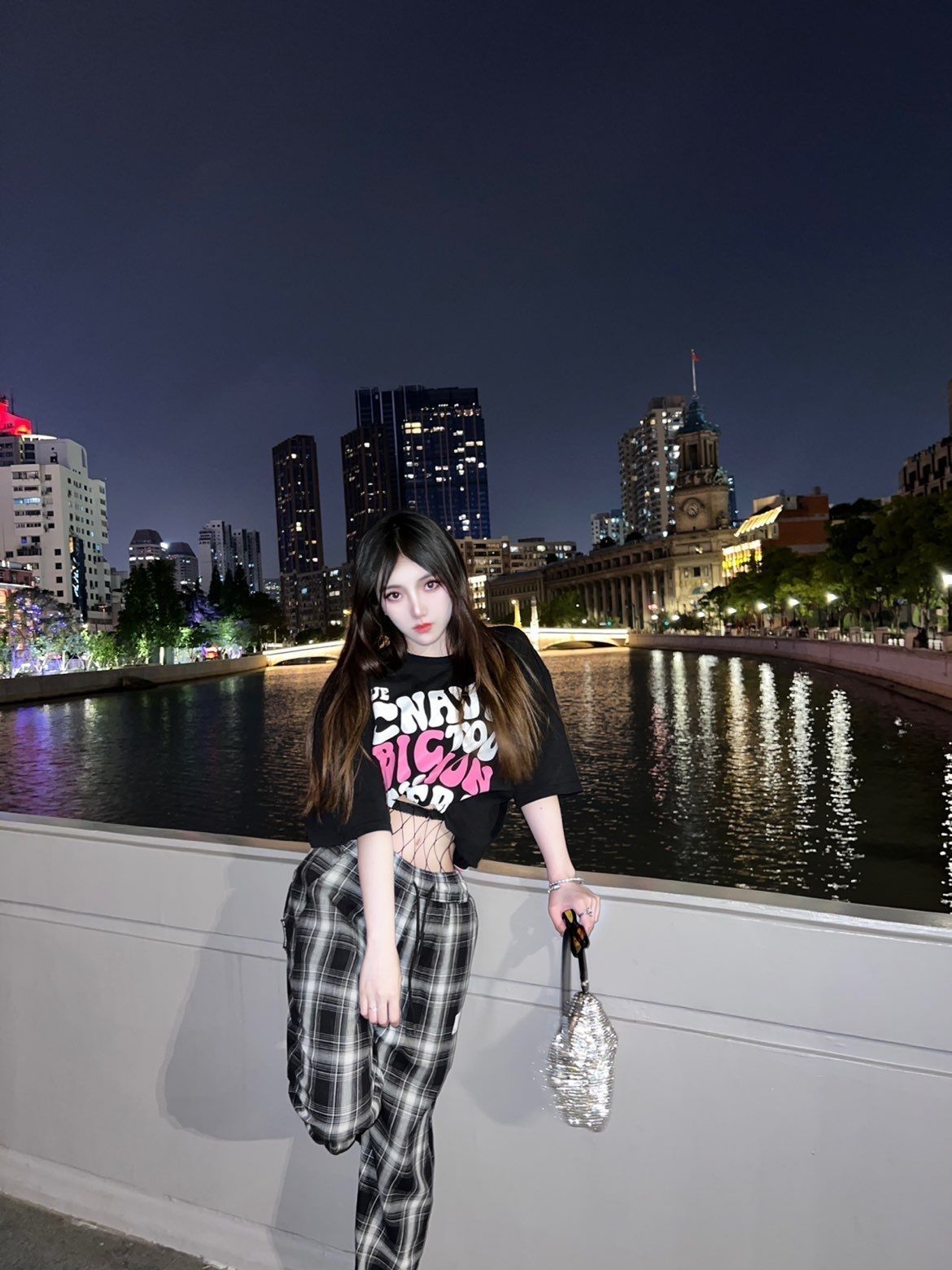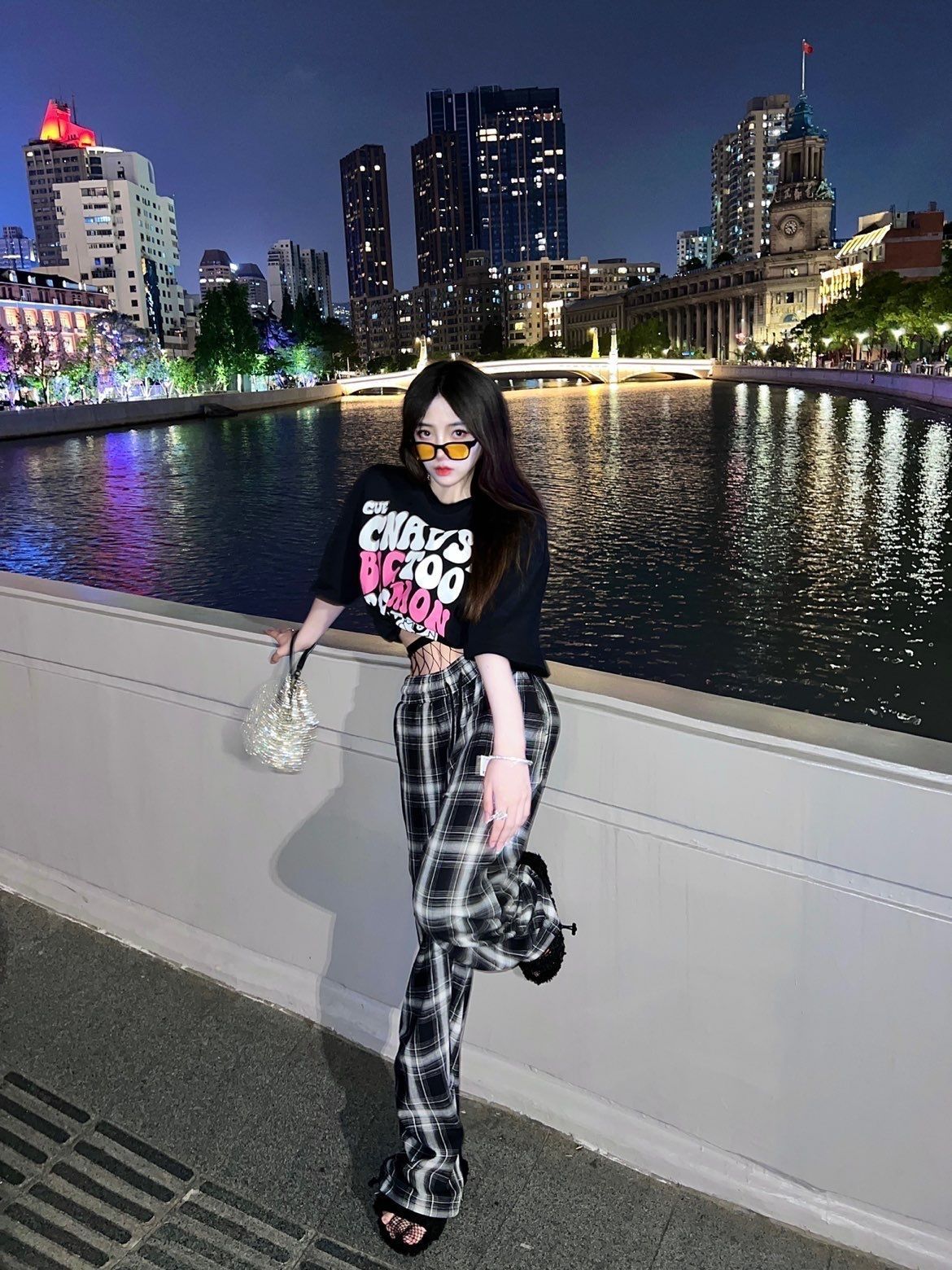今日份妮酱穿搭分享OOTD~ 最近蛮喜欢的风格 酷酷的又很休闲 休闲裤#bt 显得腿很长 黑色T恤也是#bt 家的 搭配bulingbuling的lv古巴项链 #LOUIS VUITTON 手镯卡地亚#Cartier 墨镜#GENTLE MONSTER 还有大王水钻包 #alexander wang 黑色拖鞋巴黎世家 #Balenciaga 夏天去江边,吹吹风就很快乐~
