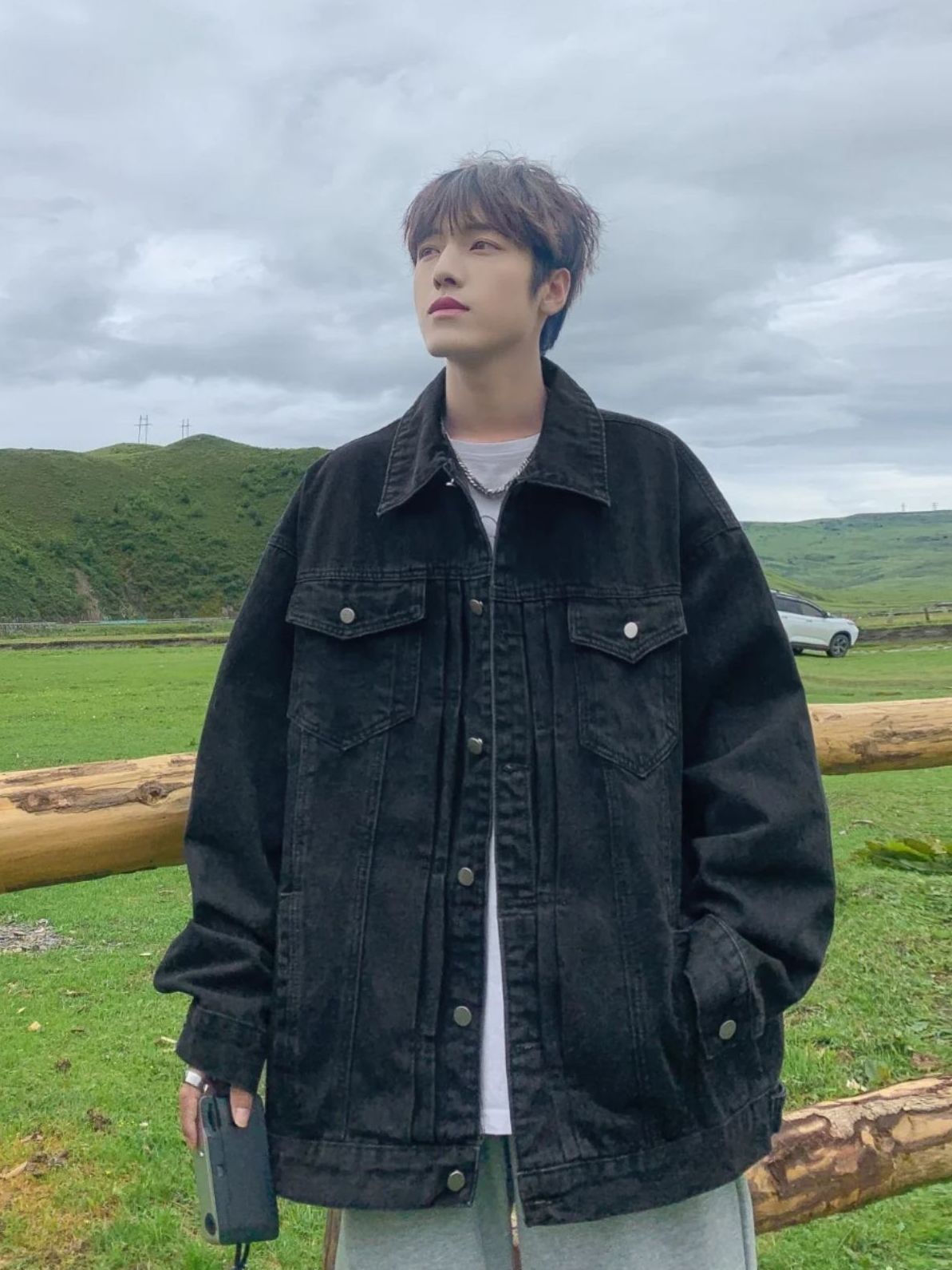初秋的时候,黑色牛仔外套是一个时髦和经典的选择 无论是休闲还是正式场合 它都能给你带来时尚的氛围 搭配一件简约的白色T恤和灰色运动裤🆗 搭配建议:配饰可以多采用(金属元素),整体风格偏向(酷炫风) 图源网络侵删