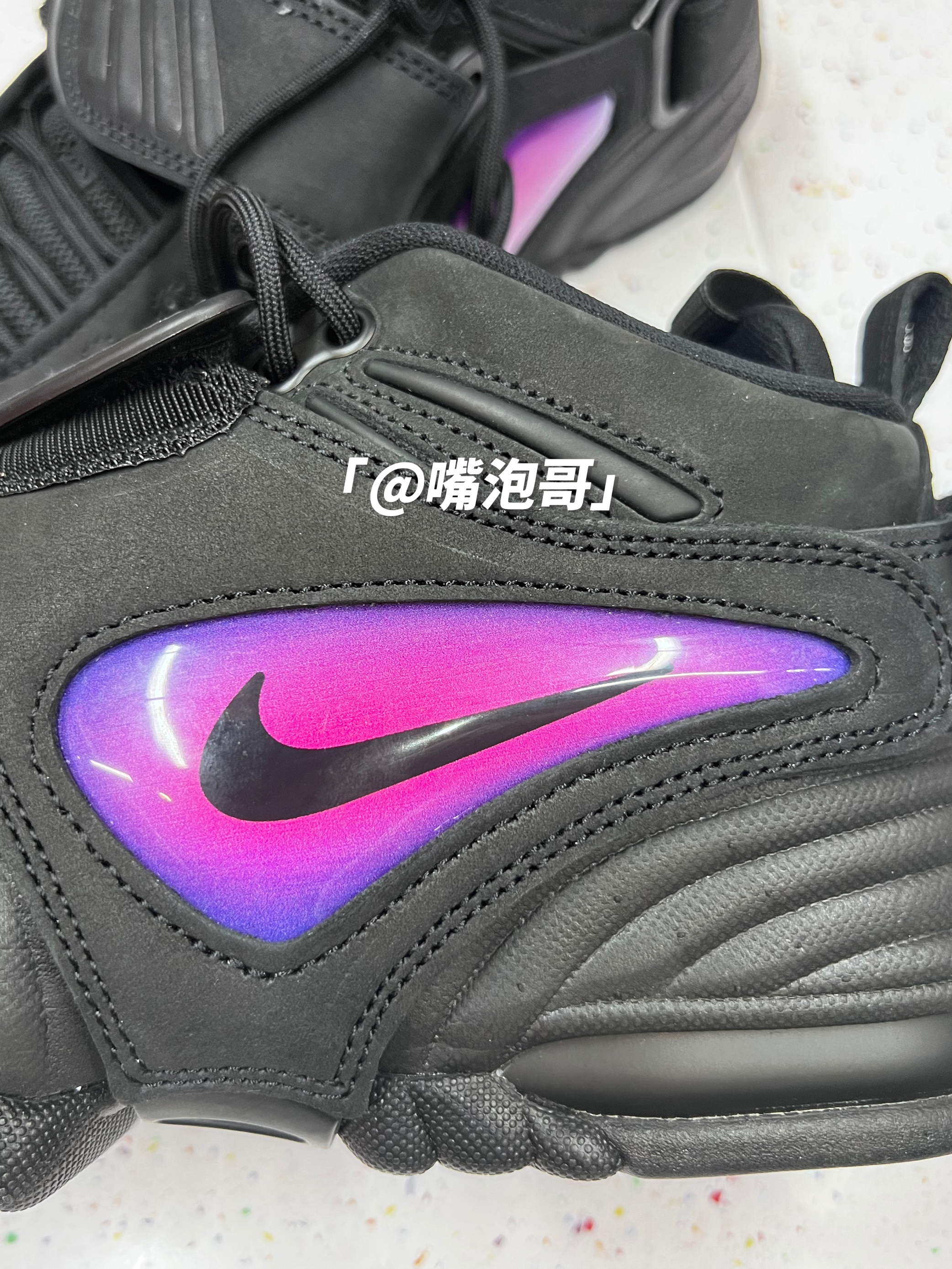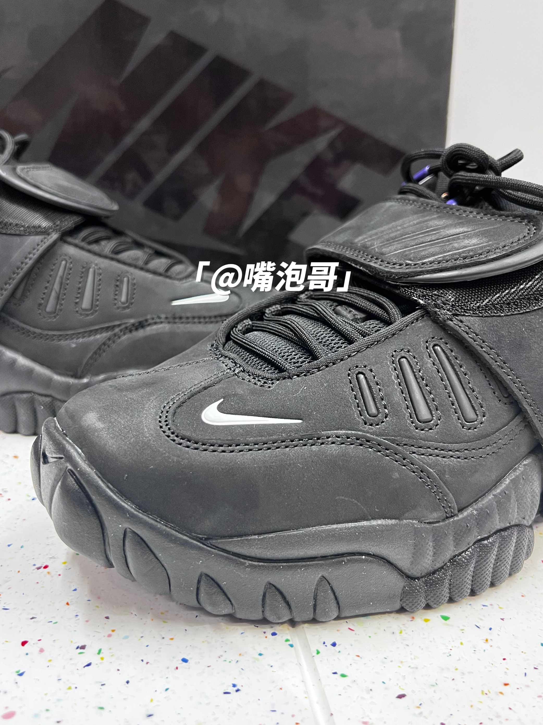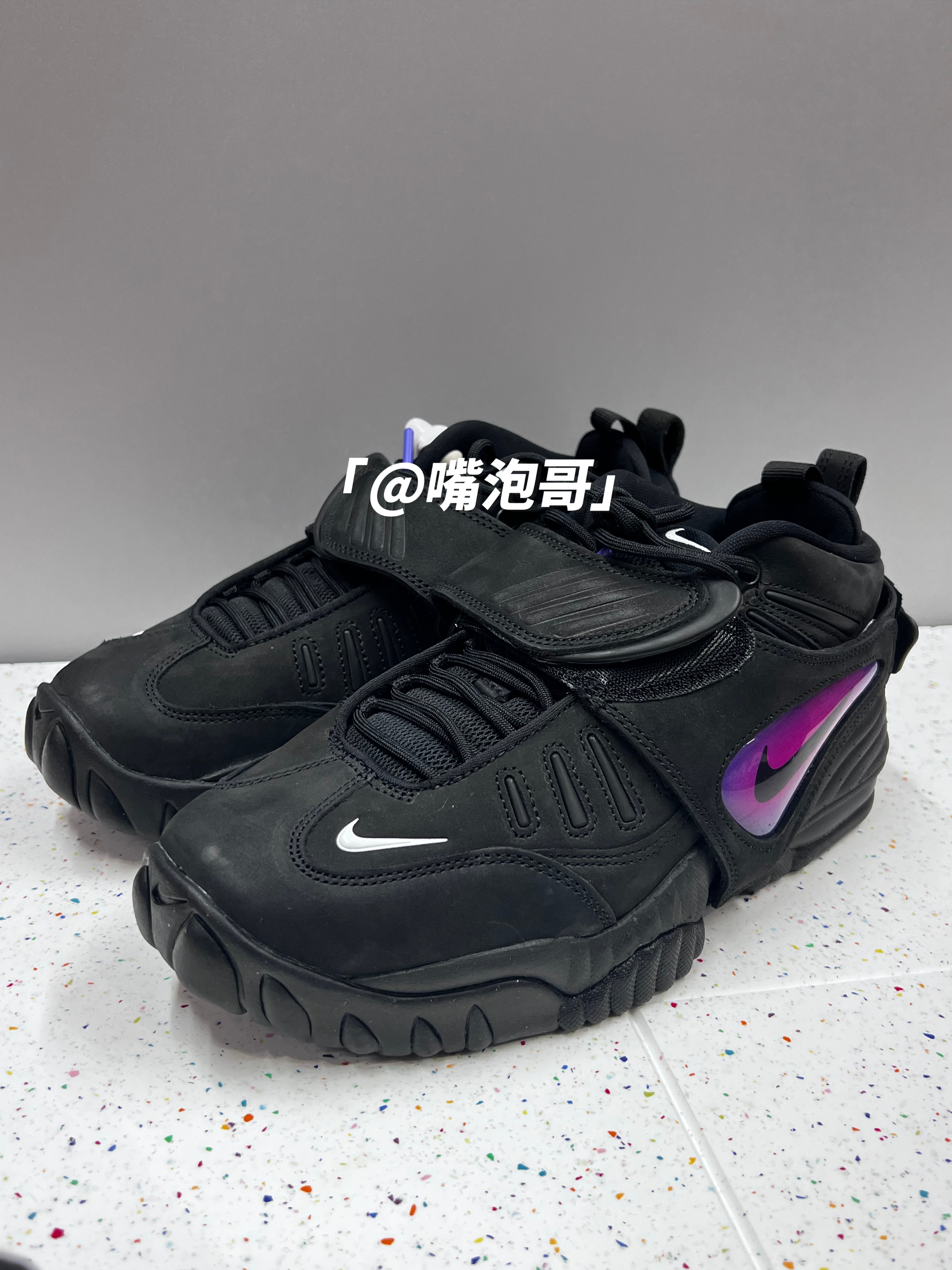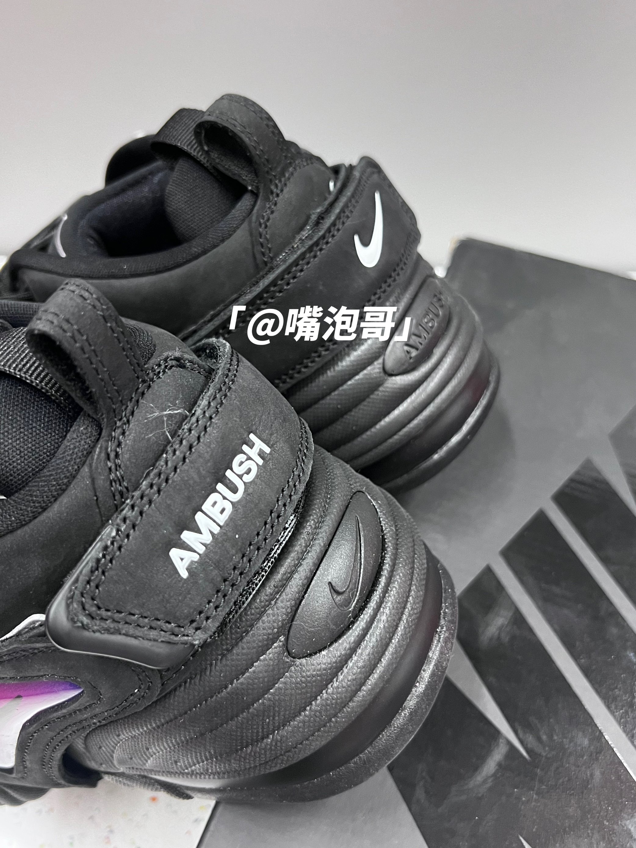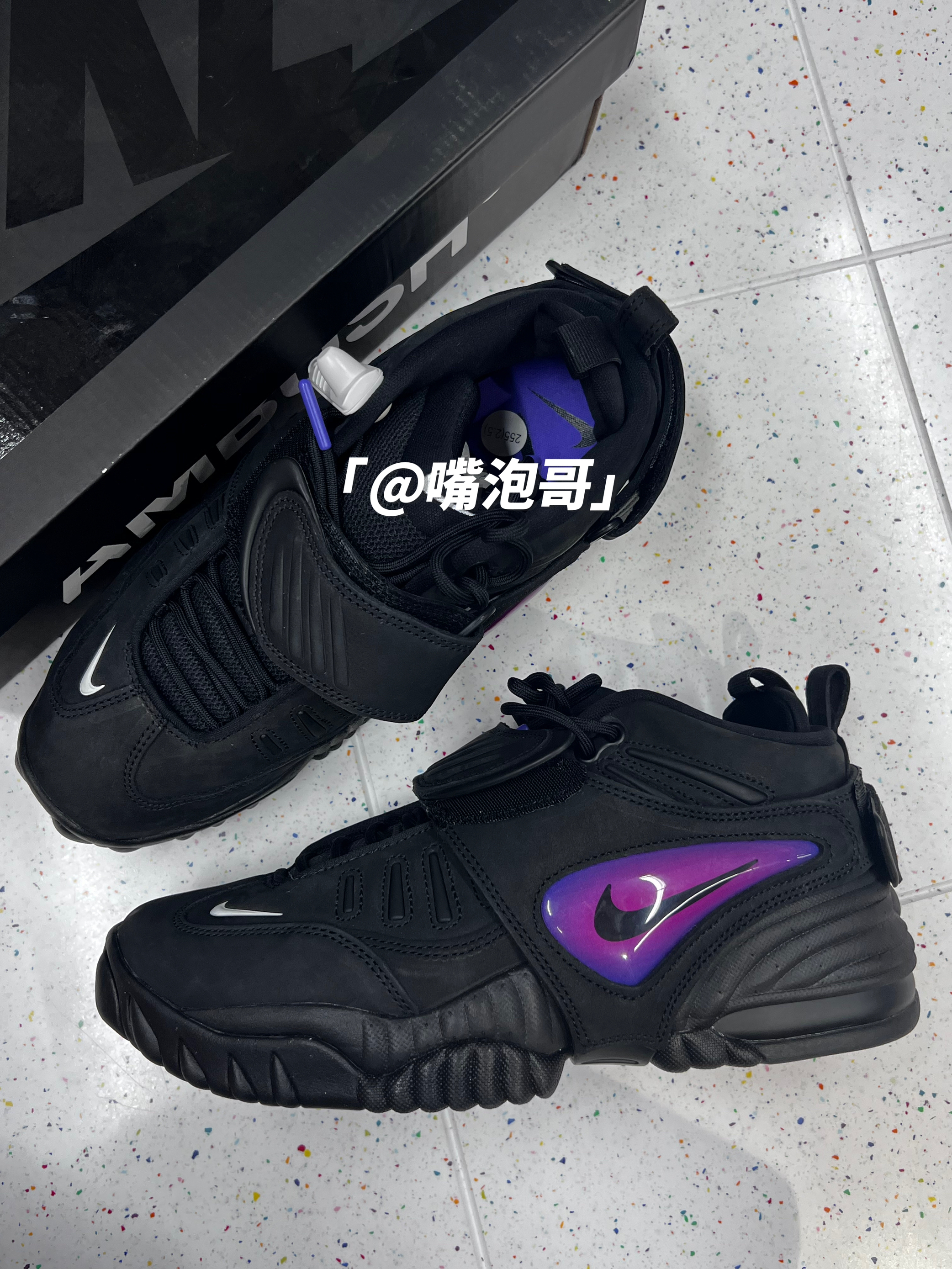 👟:AMBUSH x Air Adjust Force "Black" 黑紫色 简介: 鞋款是由AMBUSH与耐克联名推出,整双鞋子选用了黑色作为主色调,同时又运用了紫色、白色进行装饰,鞋款选用了多种复合材料制作而成,上脚后有着良好的舒适度。 细节: 鞋面选用了具有刷色感的复合绒面皮革打造,提升了整体的质感,鞋头位置装饰了白色的swoosh标志,鞋带固定选用了织带设计,使固定效果更佳,...