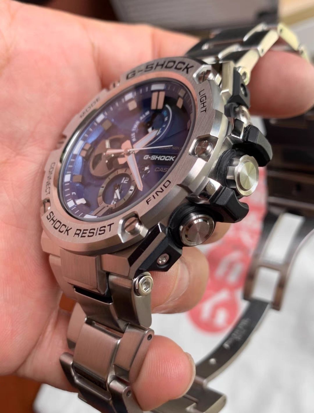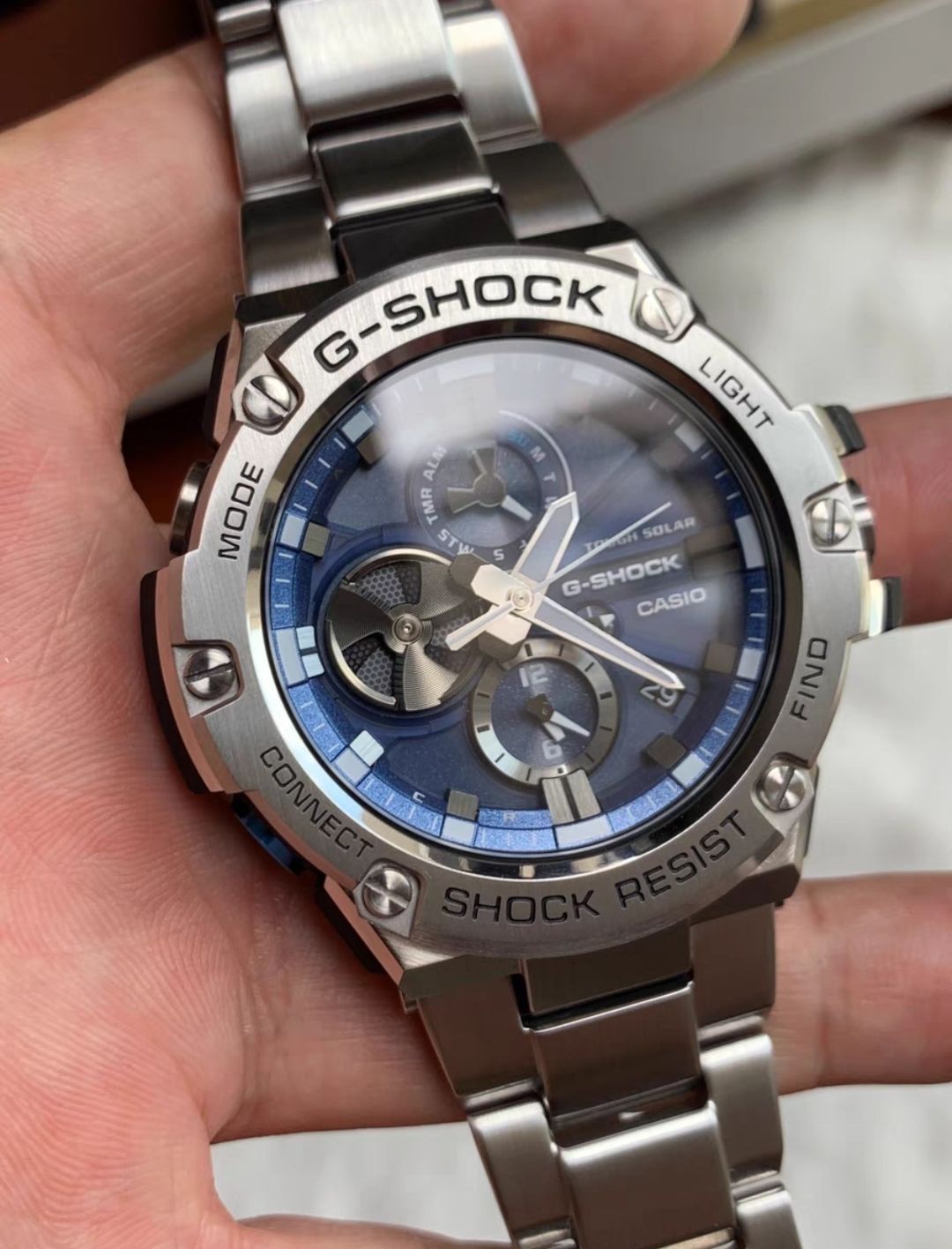 本篇笔记关联了Casio/卡西欧 G-SHOCK系列 精钢表带钢铁之心独角兽多功能防水防震耐摔蓝牙连接光能电子太阳能男士手表 银蓝 GST-B100D-2APRT等商品,为用户提供真实的使用体验和购买参考。