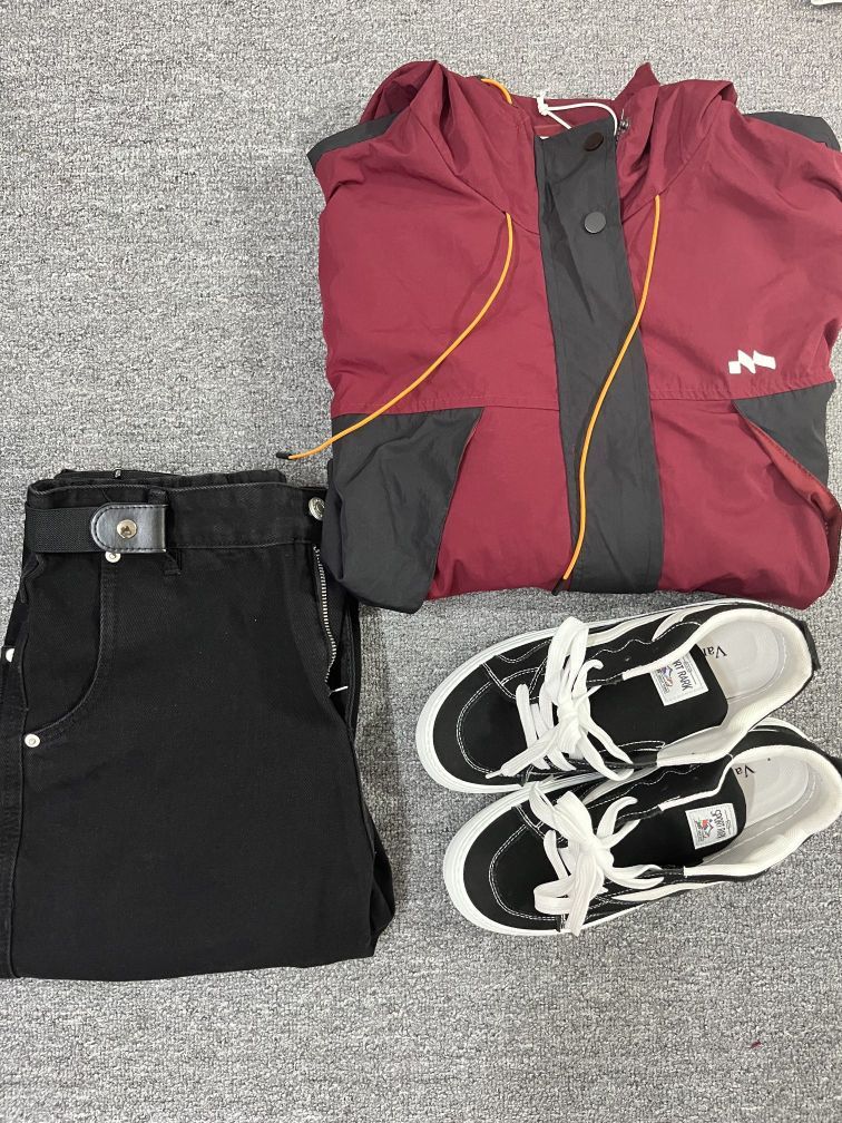 哈喽这里是pupu同鞋🏄🏻♂️ ——————————— · 👔:GTRG冲锋衣🍓 酒红色冲锋衣真的有被帅到 质感和结构设计真的很好看 防风防水 上身太有日系男友的感觉啦,真的好喜欢吸睛效果绝了 · 👖:GTRG美式黑色牛仔裤✔️ 版型真的很友好!直筒版型遮肉显瘦 垂感特别自然,恰到好处的堆叠感 长度刚好可以盖到鞋子 显腿长! · 👟:黑白板鞋🖤 冲锋衣真的是男生最好的医美 既有功能性颜值还在线...