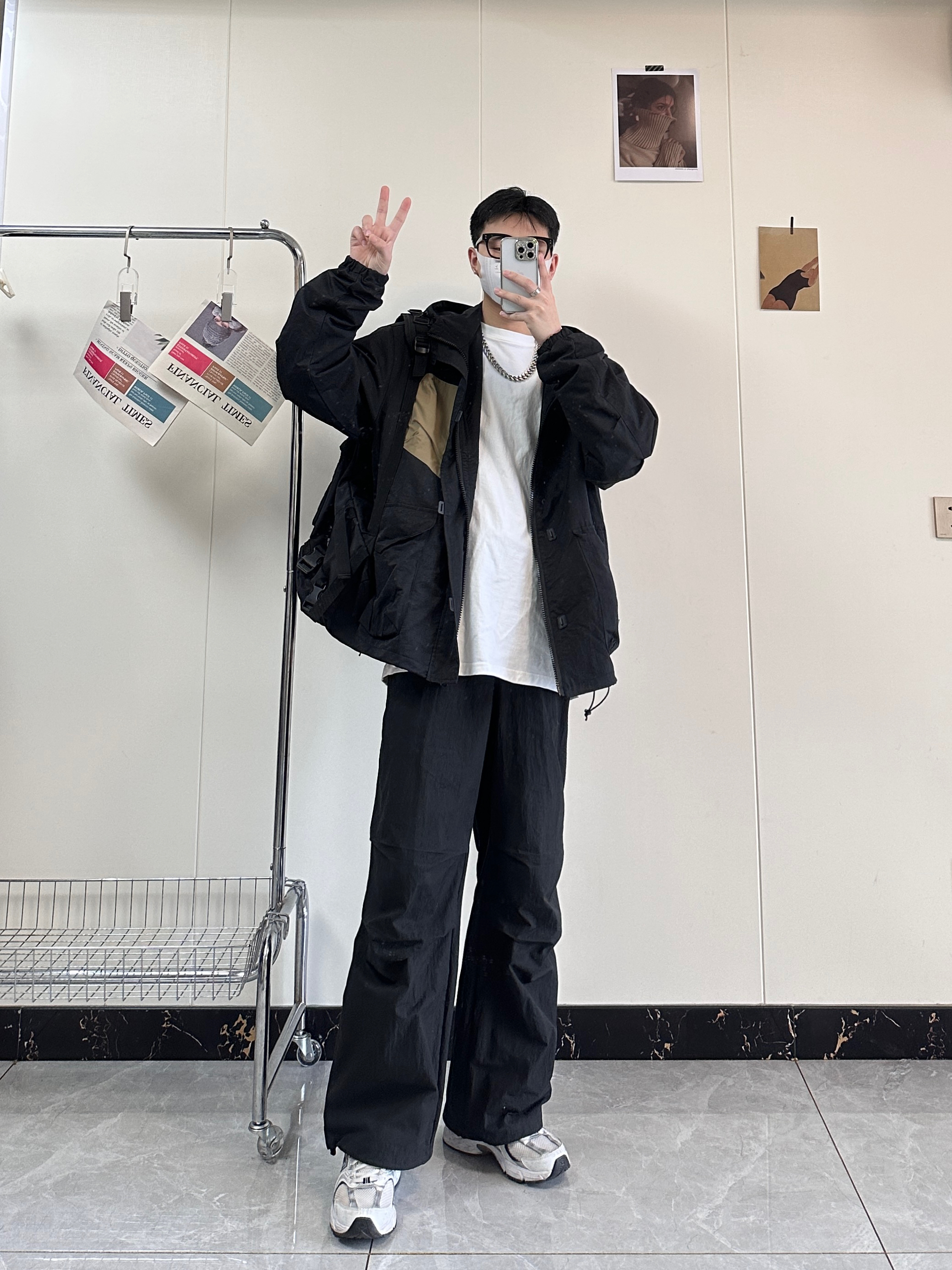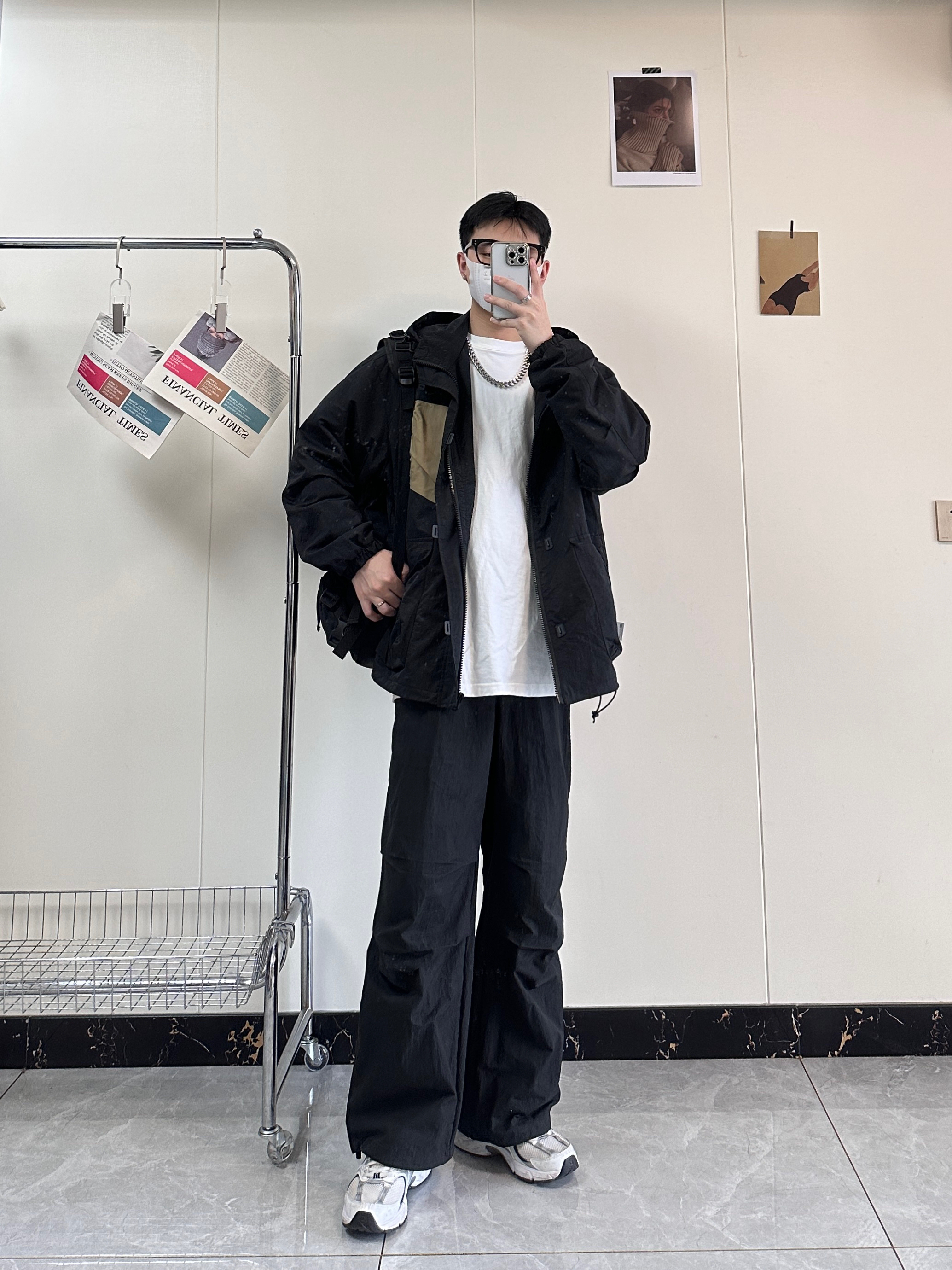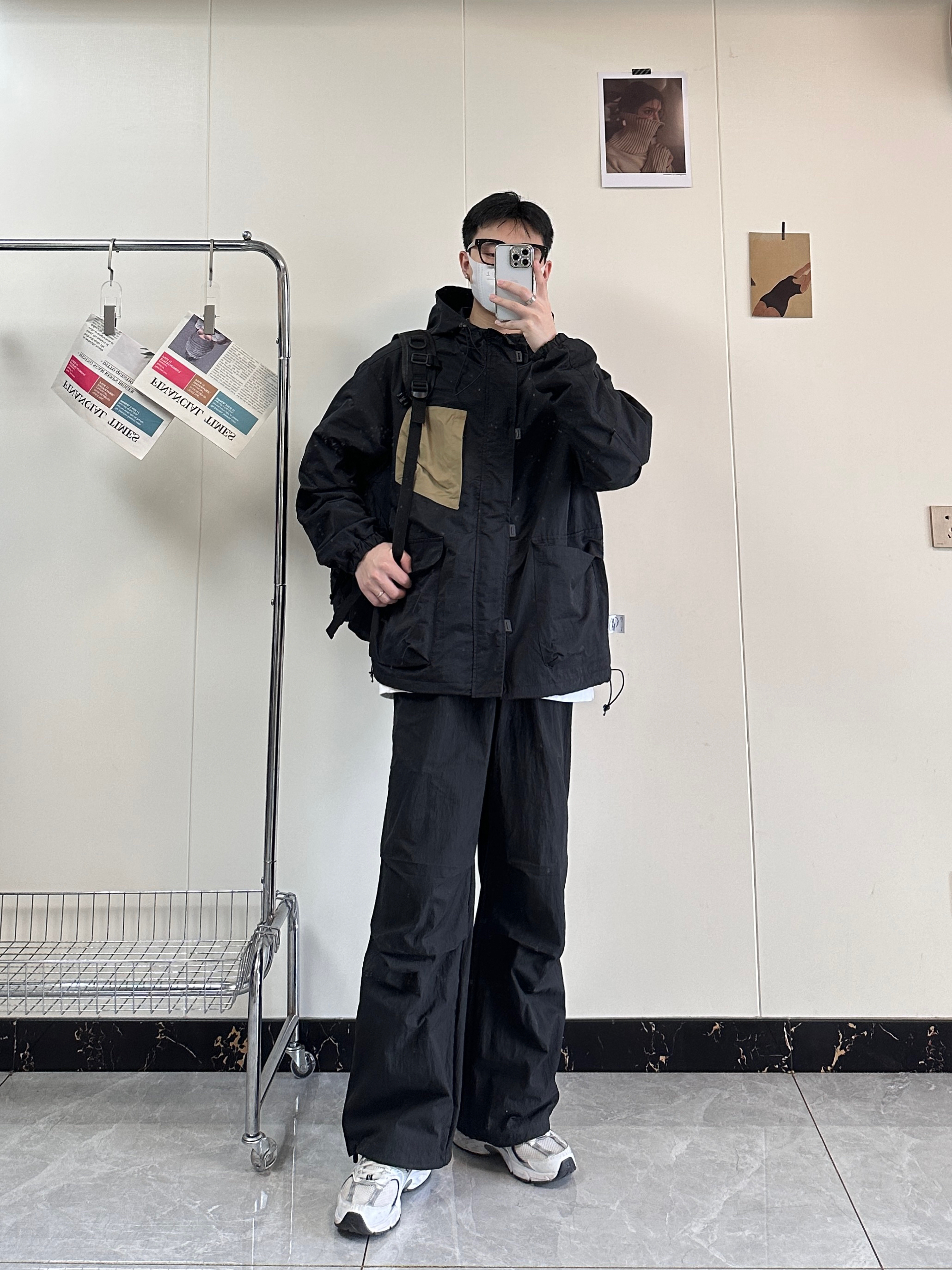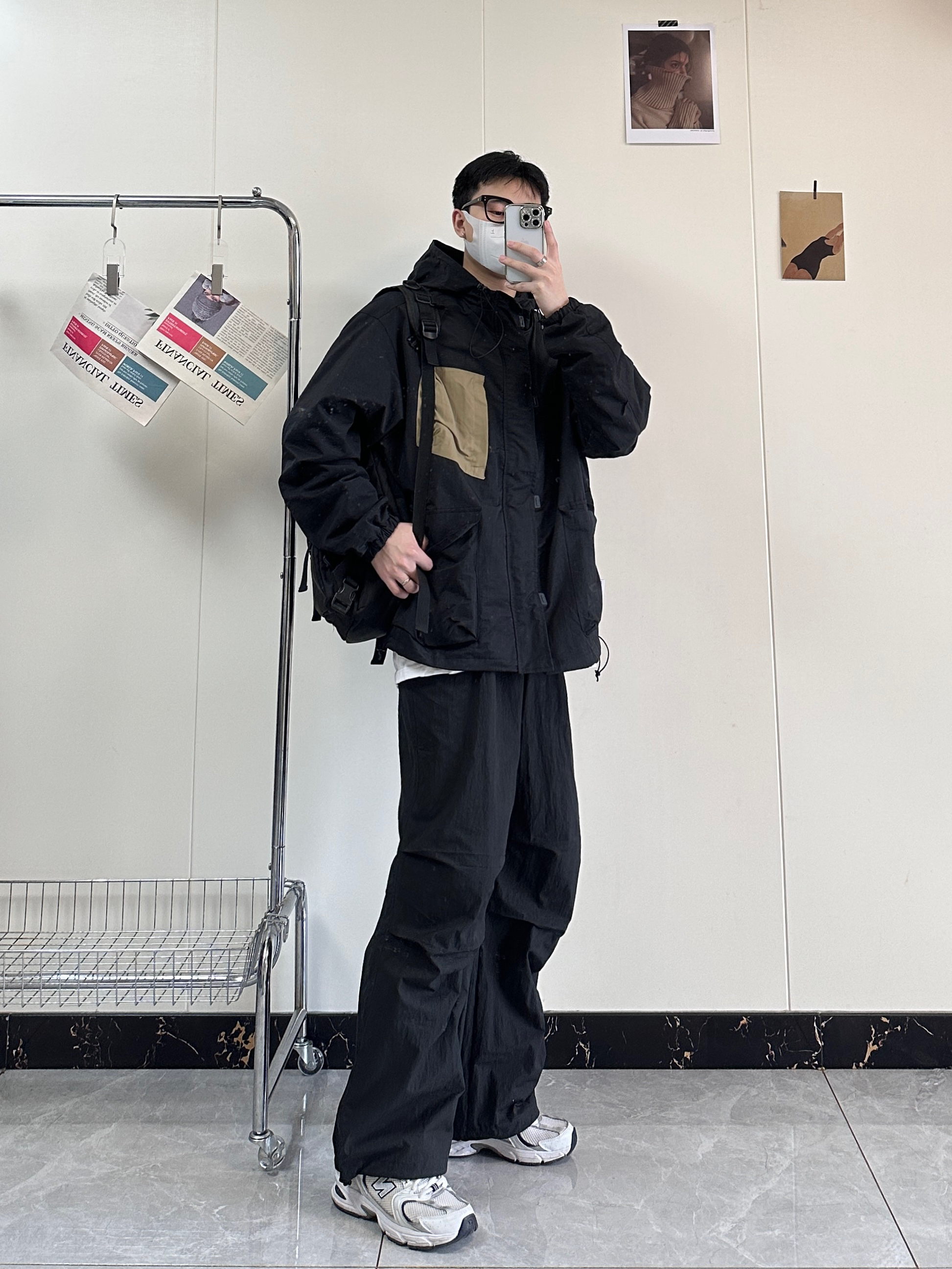 今日分享入秋穿搭 百元平价冲锋衣真的嘎嘎香 简约而且又高级非常的百搭 纯黑的颜色胸口做了卡其色拼接 搭配宽松版型的微喇伞兵裤也是绝绝子 宽松的版型对身材不好的兄弟非常友好 鞋子👟:NB530脚感舒适透气而且非常百搭