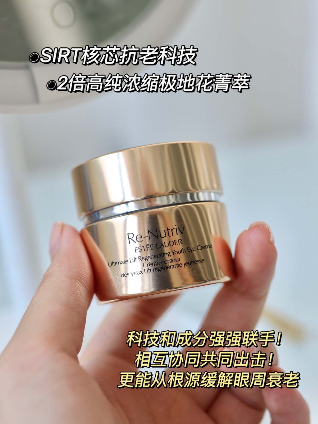 我是25岁之前一点都不在意涂眼霜 偶尔想起来也就抹一点基础的保湿类眼霜 到现在是真的后悔啊 干纹啊、黑眼圈啊都爬起来了 而且眼尾会有下垂 整个人看起来都老了好几岁 因此我现在在挑选眼霜的时候 保湿只是一个基础 同时还要把抗老做到位了!! 最近一直再用的就是雅诗兰黛的冻龄白金眼霜 真的太让我惊喜了! 实实在在地把淡化细纹、提拉眼周都做到优秀了 第一款一用空就马上又囤上的眼霜 . 比起单一成分类的眼霜...