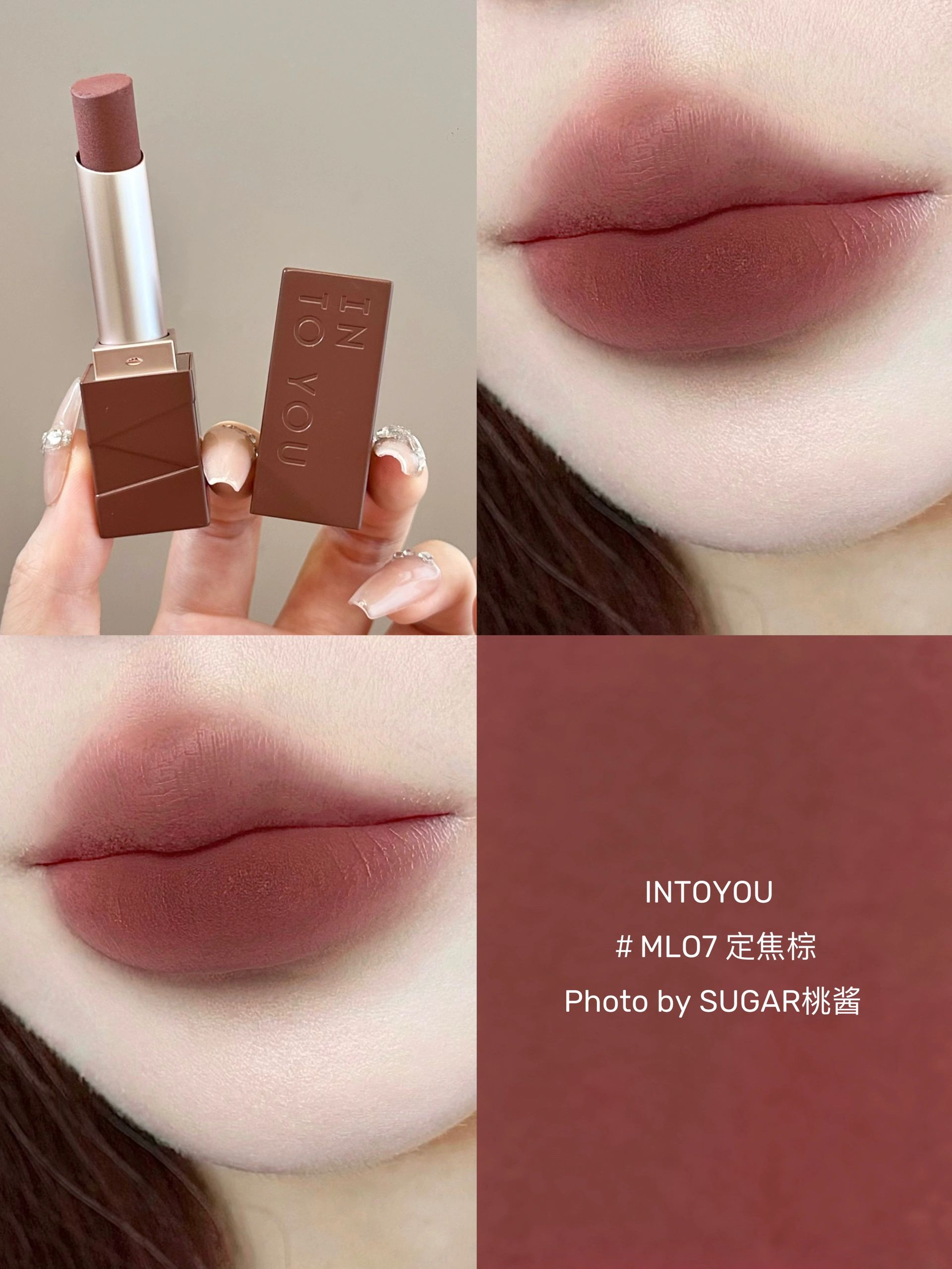本篇笔记关联了INTO YOU 心慕与你哑光口红 顺滑丝绒雾面 2.7g ML03聚光褐、INTO YOU 心慕与你哑光口红 顺滑丝绒雾面 2.7g ML07定点棕、INTO YOU 心慕与你哑光口红 顺滑丝绒雾面 2.7g ML04候场紫等商品,为用户提供真实的使用体验和购买参考。