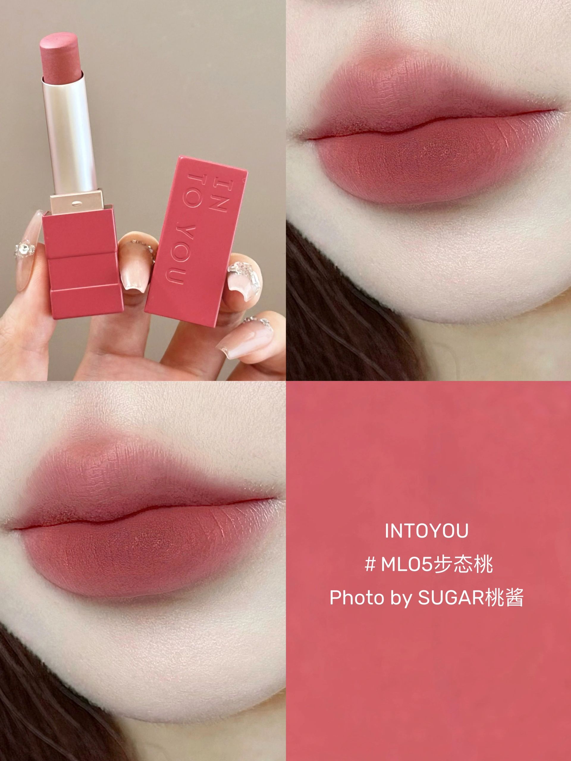 🌈这调色美鼠谁?!新品吼吼看!!INTO YOU 心慕与你哑光口红 真真是氛围感拉满了!好轻薄的绒雾感口红!玩的高段位啊!! 🌈涂起来非常顺滑显色,多来几层也没啥子厚重感,作为哑光口红,一点都不拔干!!每支颜色也都一如既往的妙 ❤️醉爱ML05了! ✨轻薄甜美的奶油甜桃色,活泼俏皮啊好可爱!!!减龄嫩妹感get,清纯校花本人~日常通勤一绝! ❤️ML06广角棕 ✨低饱和乌龙奶棕色,上班约会逛街都能...